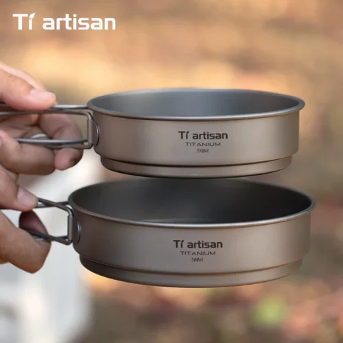 Tiartisan 350ml/500ml 티타늄 접이식 손잡이 요리 프라이팬 야외 캠핑 Picninc 초경량 휴대용 식기 조리기구