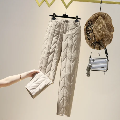 아울렛 스토어 여성용 겨울 캐주얼 스트레이트 레그 코튼 다운 바지 하이 웨이스트 두꺼운 롱 팬츠 편안하고 패셔너블한