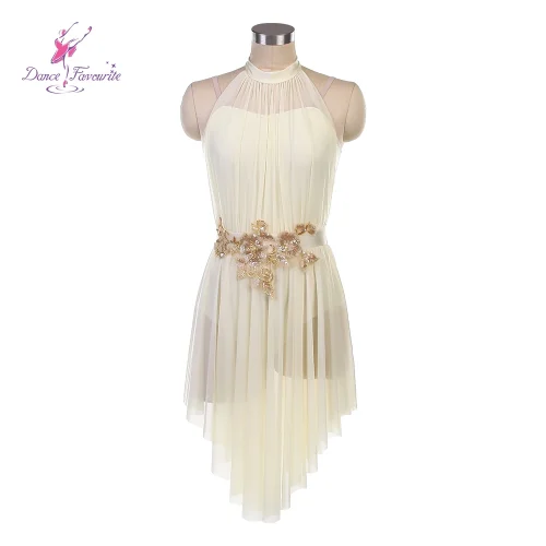 2026 새로운 아이보리 스판덱스 메쉬 롱 드레스 서정적 발레 드레스 댄스 의상 DF25136B