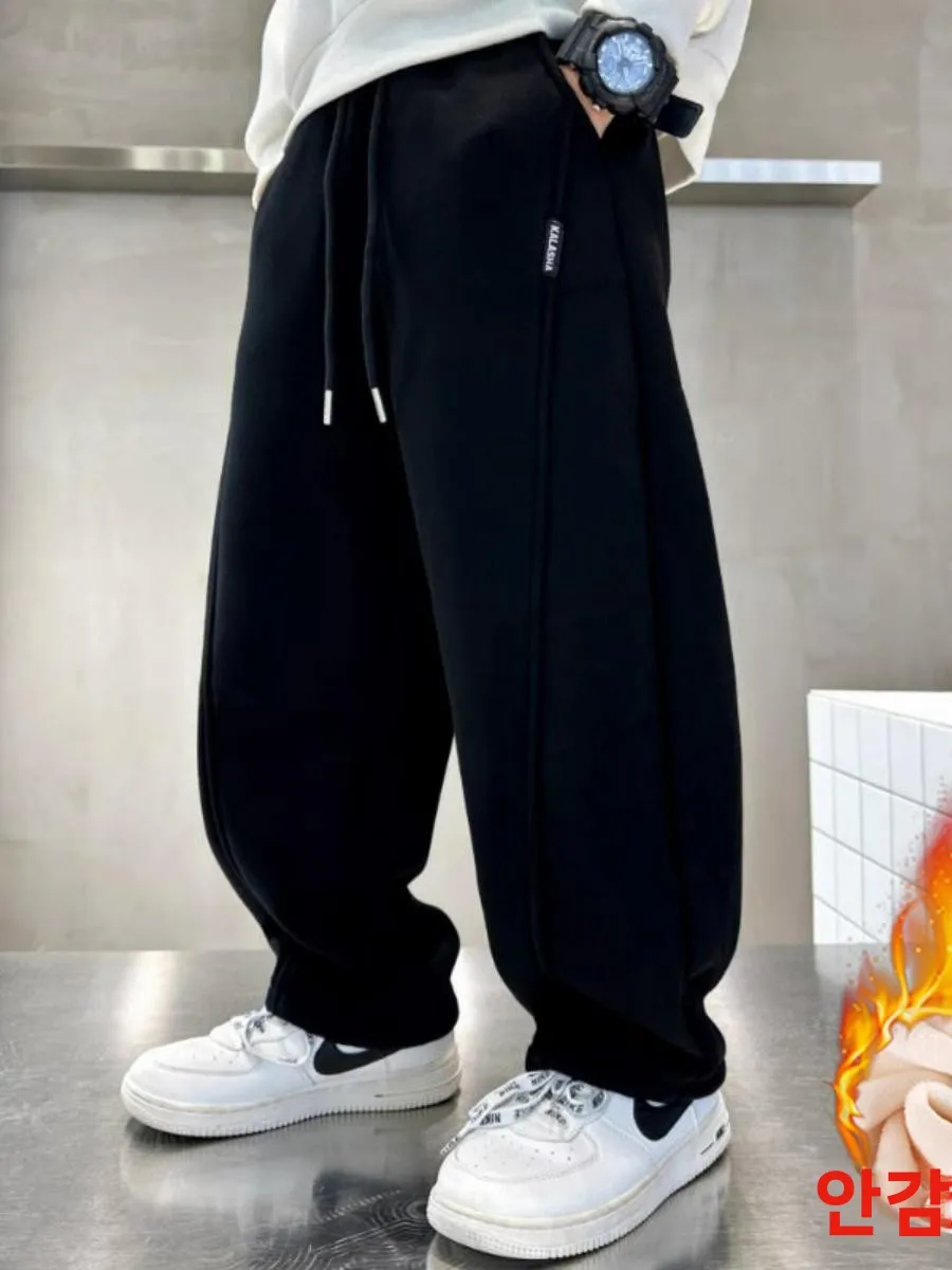 두꺼운 플리스 아동용 스웨트팬츠 가을 겨울 신상 남성용 따뜻한 캐주얼 바지 패셔너블한 올매치 롱 팬츠