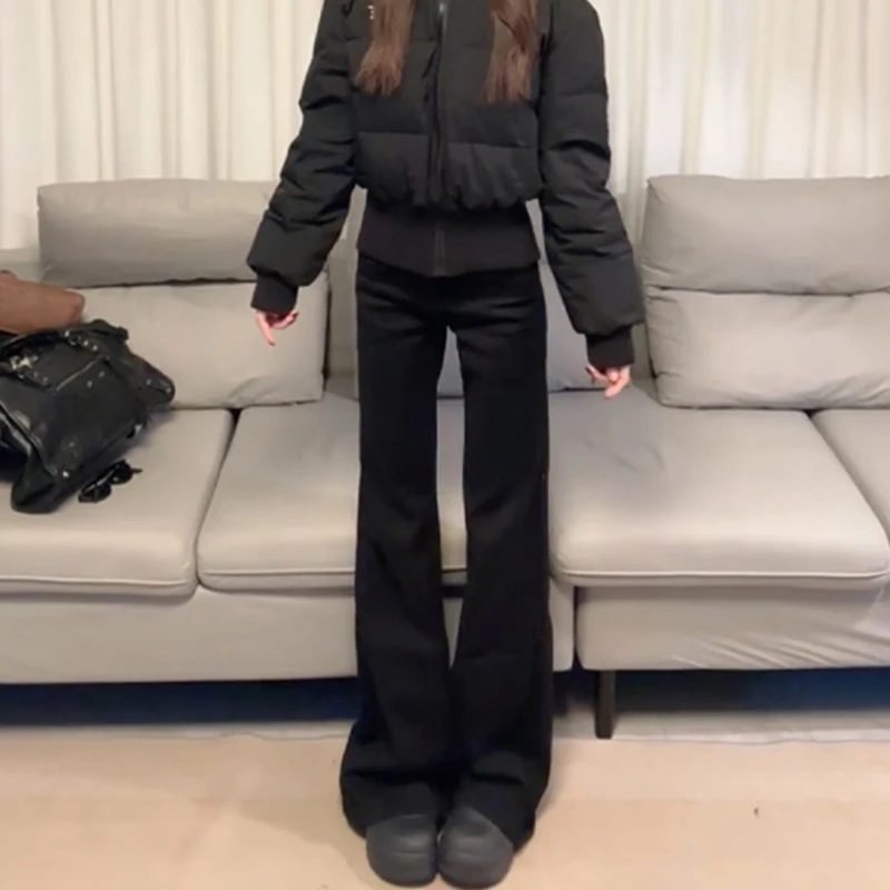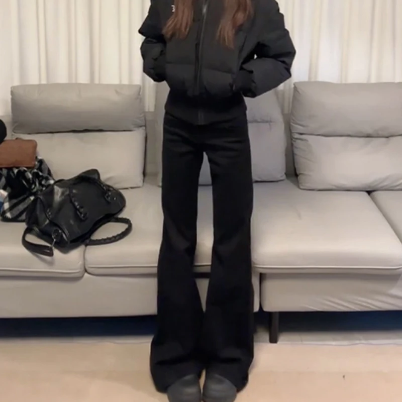두꺼운 플리스 하이웨이스트 벨보텀 청바지 여성 겨울 패션 슬림핏 스몰 사이즈 드레이프 따뜻한 플로어 길이 부츠컷 청바지