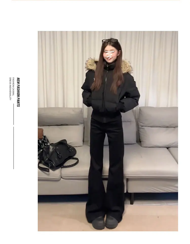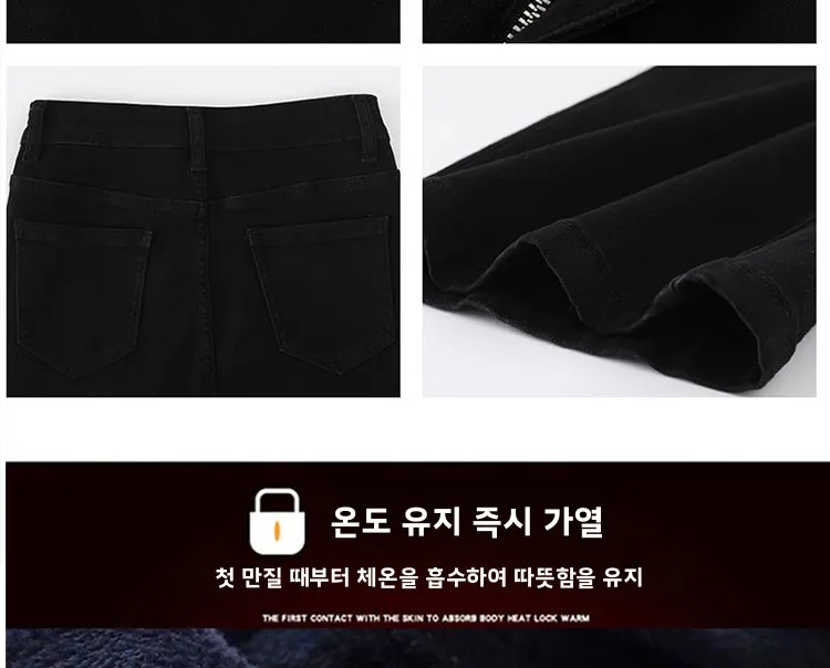 이 여성용 블랙 데님 팬츠는 고급스러운 디자인과 편안한 착용감을 제공하며, 겨울철을 위한 완벽한 선택입니다.
