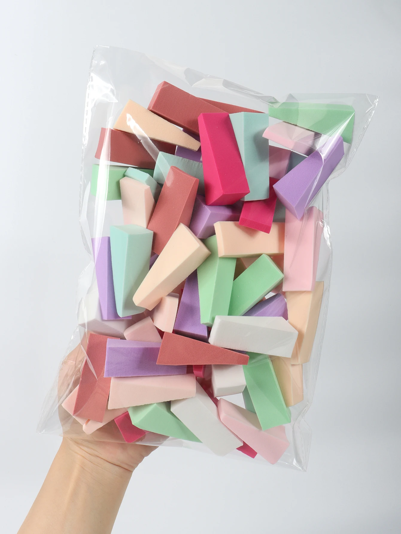 랜덤 컬러 페이셜 커브 믹스 메이크업 스펀지 50개, 라텍스 프리, 작은 웨지 모양의 부드러운 적용 뷰티 스펀지 어플리케이터