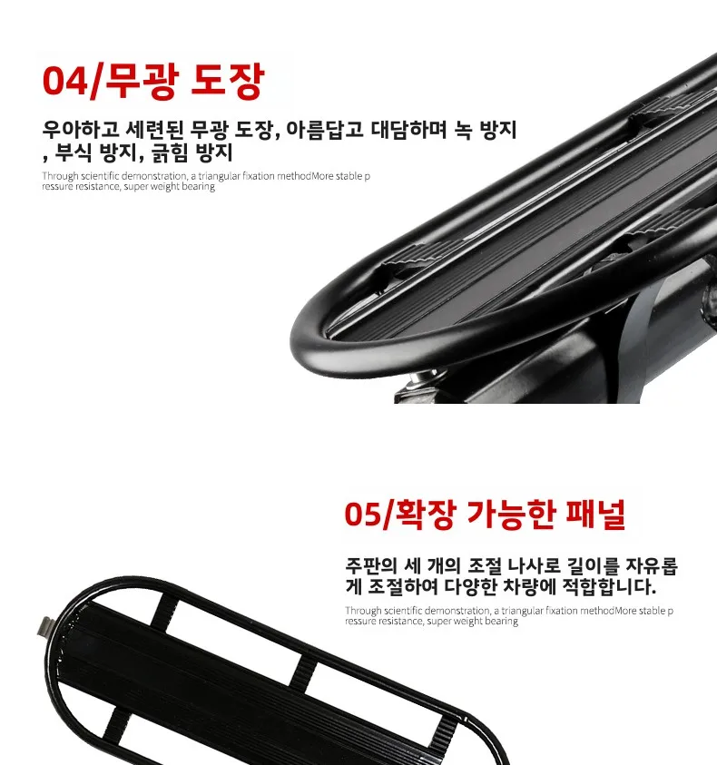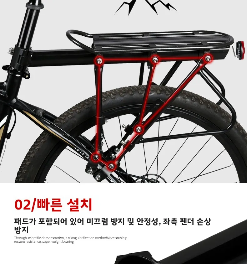 유니버설 디자인으로 다양한 타입의 자전거에 설치 가능하며, 짐을 쉽게 싣고 내리게 해줍니다.