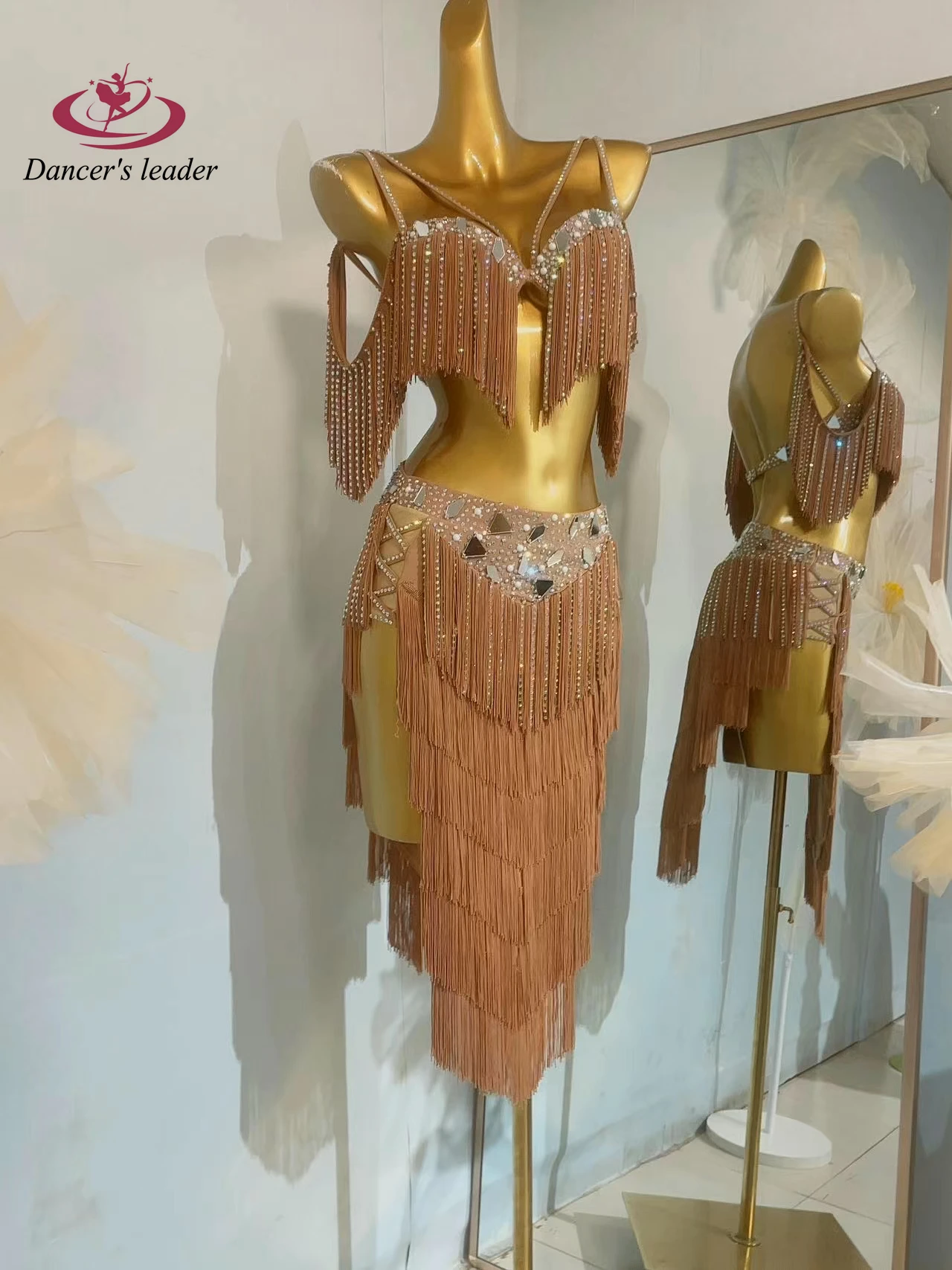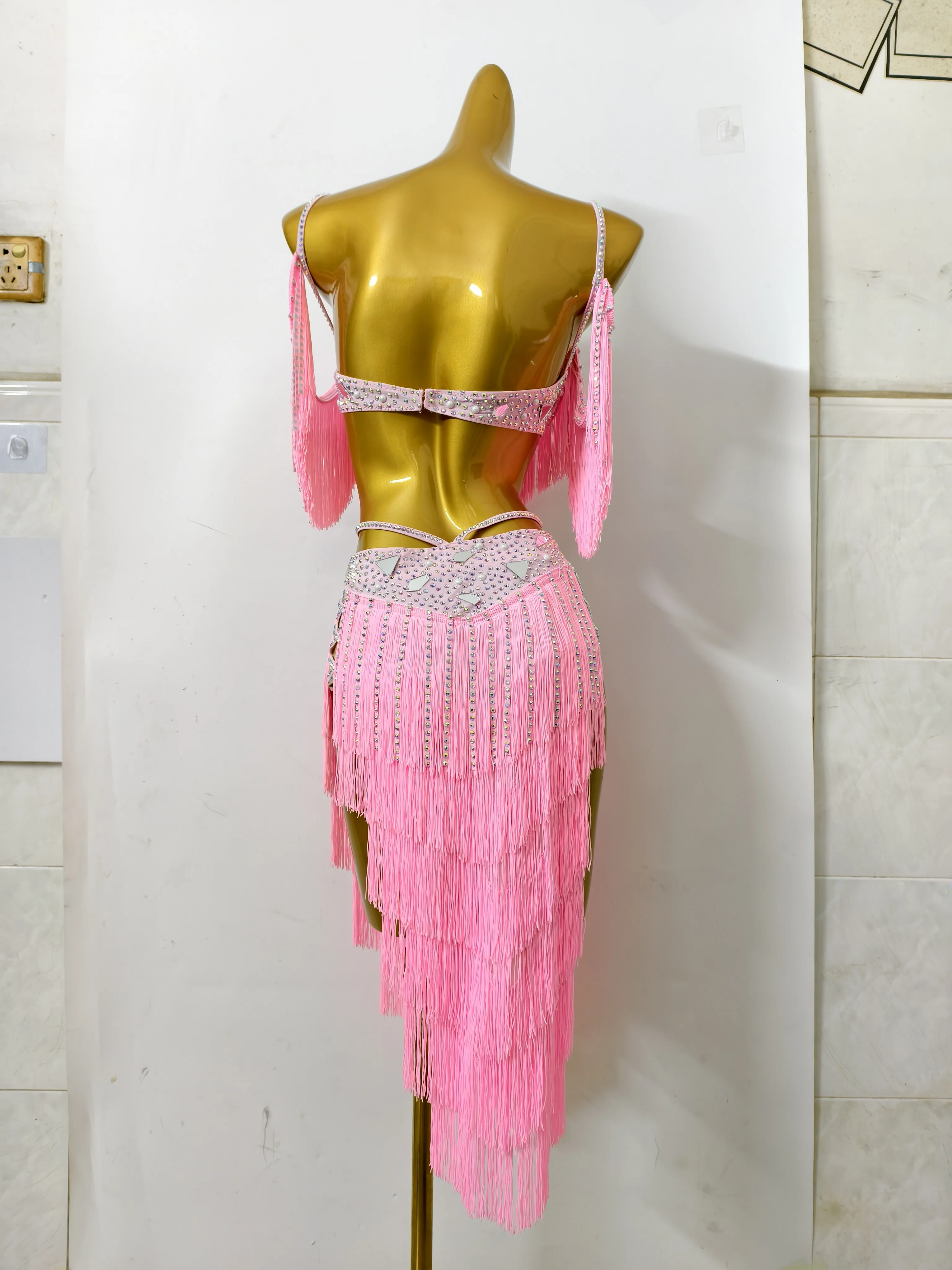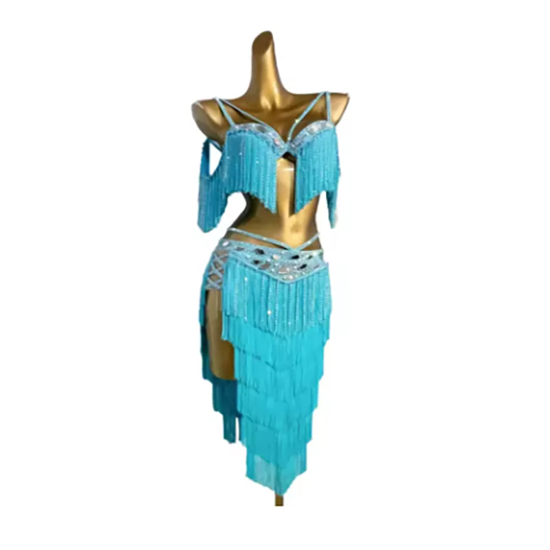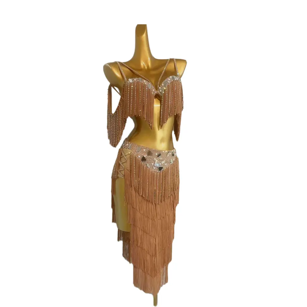 밸리 댄스 대회 여성용 하이 엔드 맞춤형 렌즈 다층 술 차 삼바 퍼포먼스 라인 석 드레스