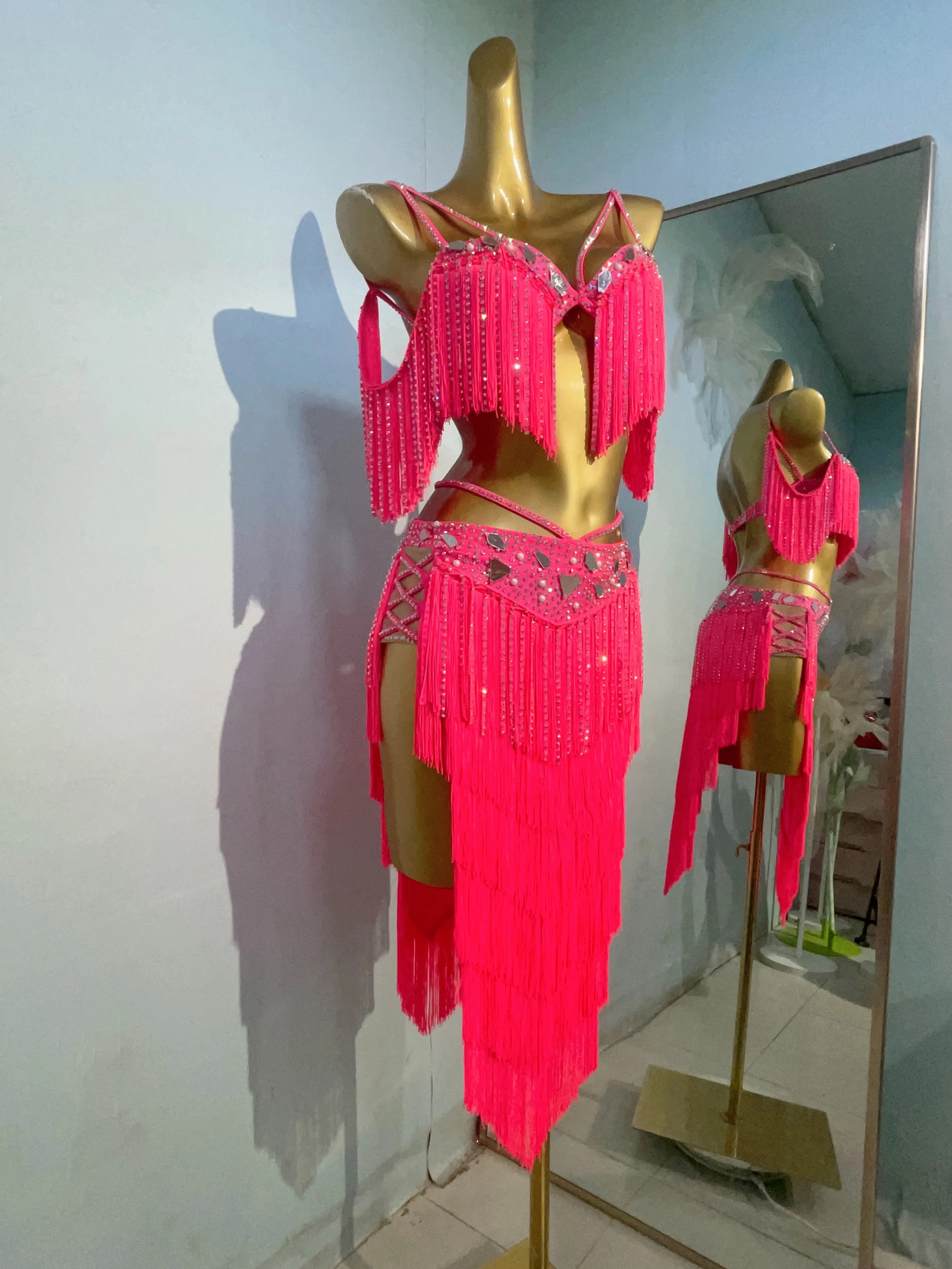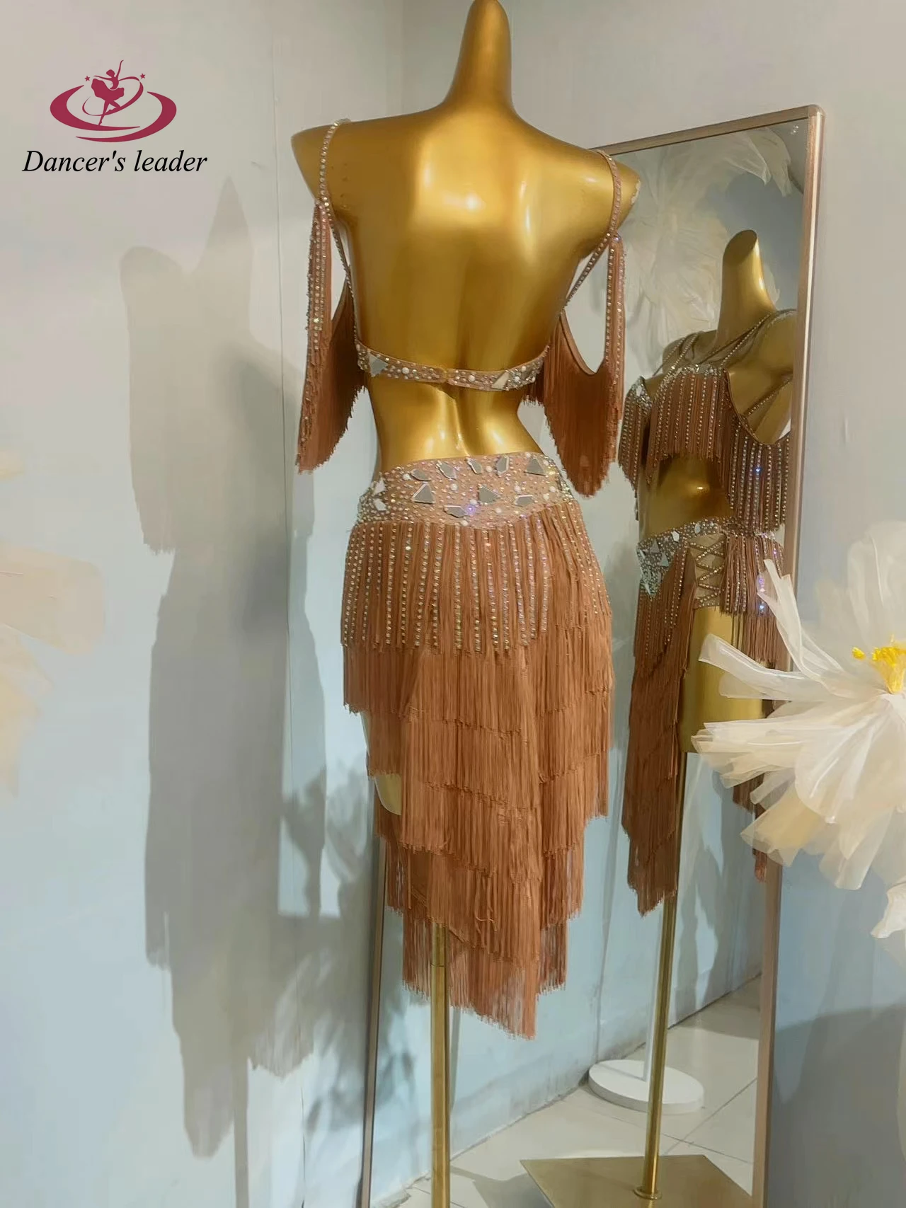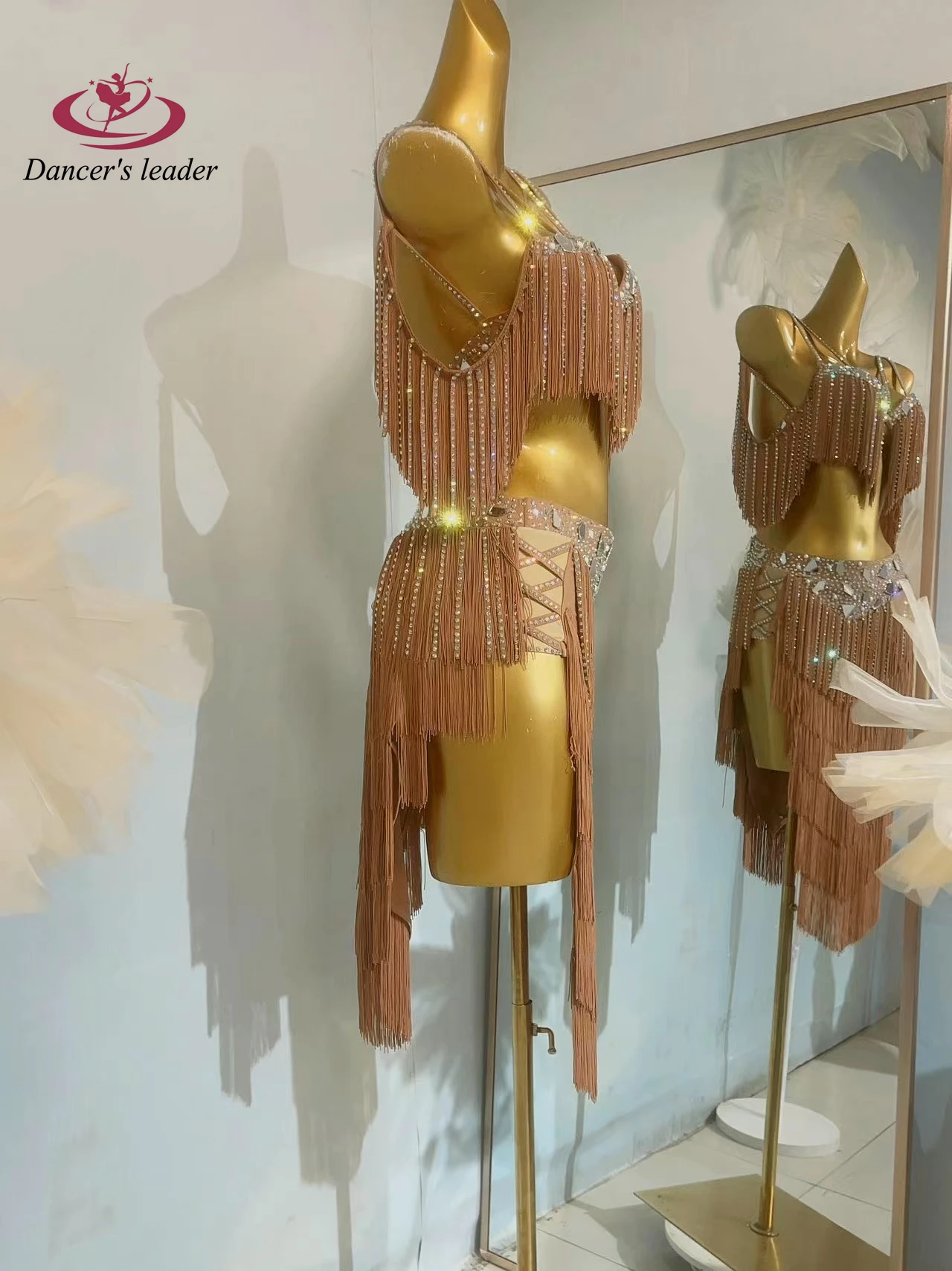 밸리 댄스 대회 여성용 하이 엔드 맞춤형 렌즈 다층 술 차 삼바 퍼포먼스 라인 석 드레스