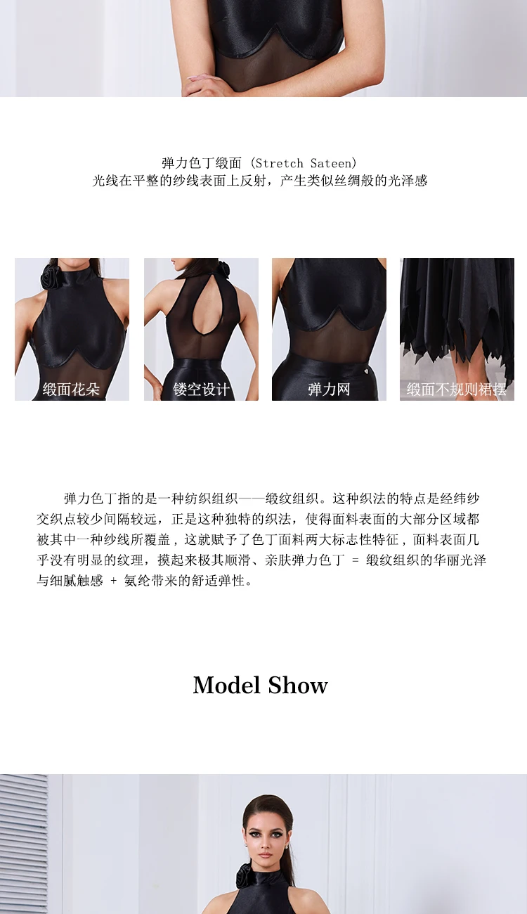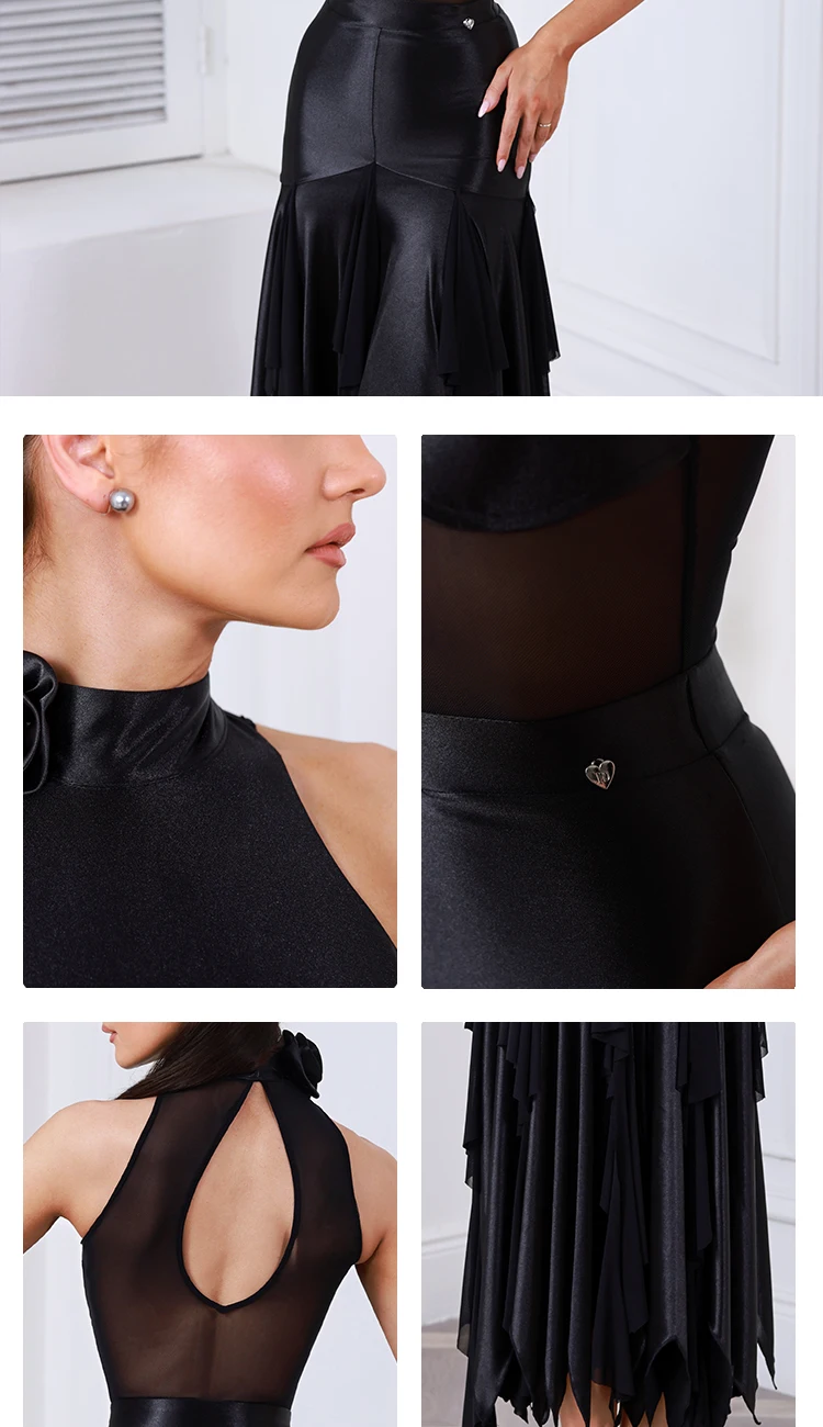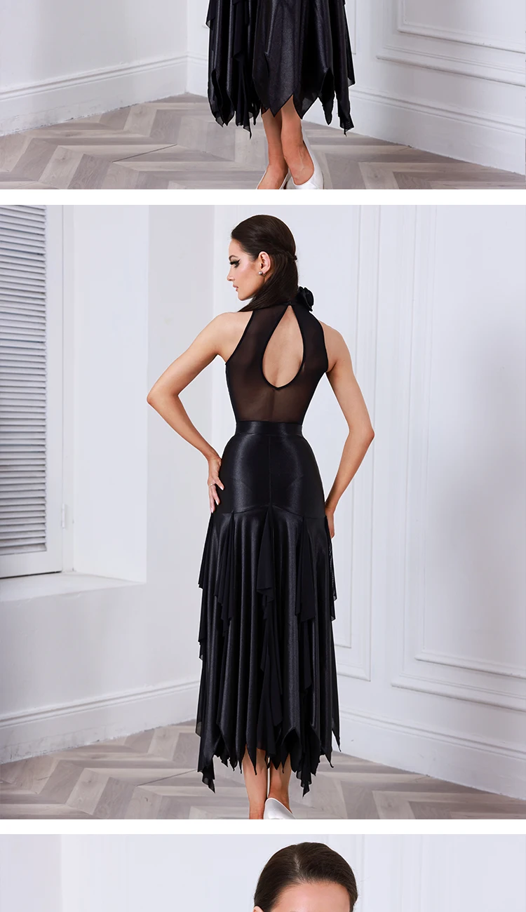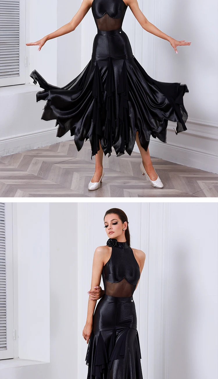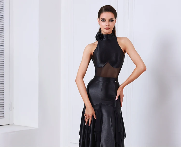 볼룸 댄스 드레스 2025 신상 왈츠 공연 의상 모던 스탠다드 댄싱 무대복 블랙 민소매 바디수트 스커트 2630