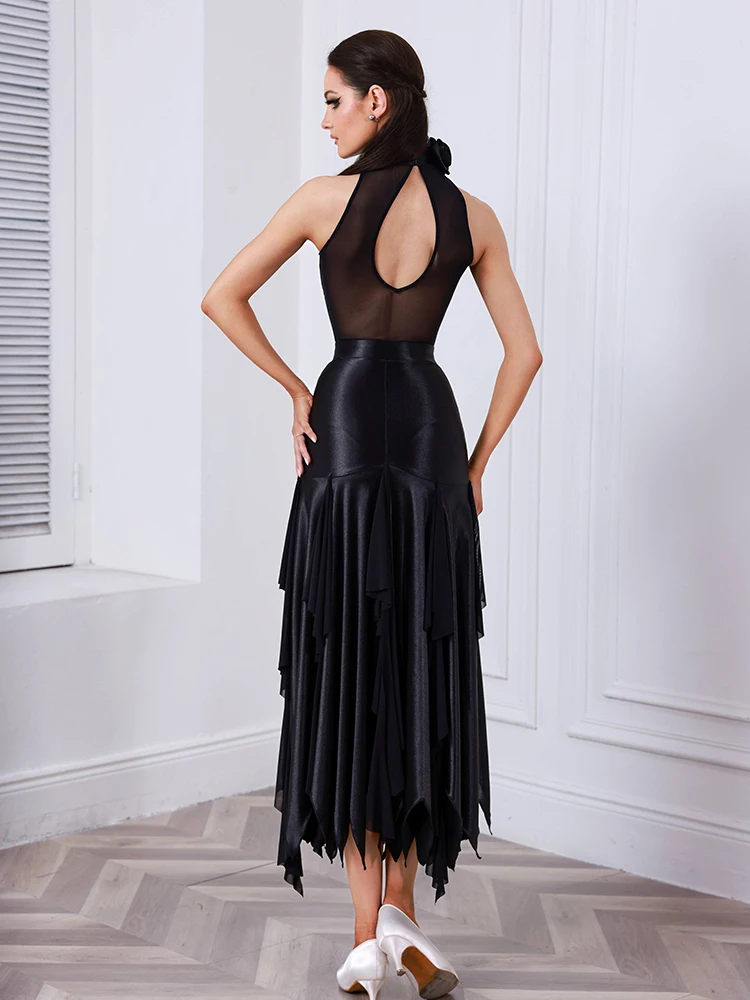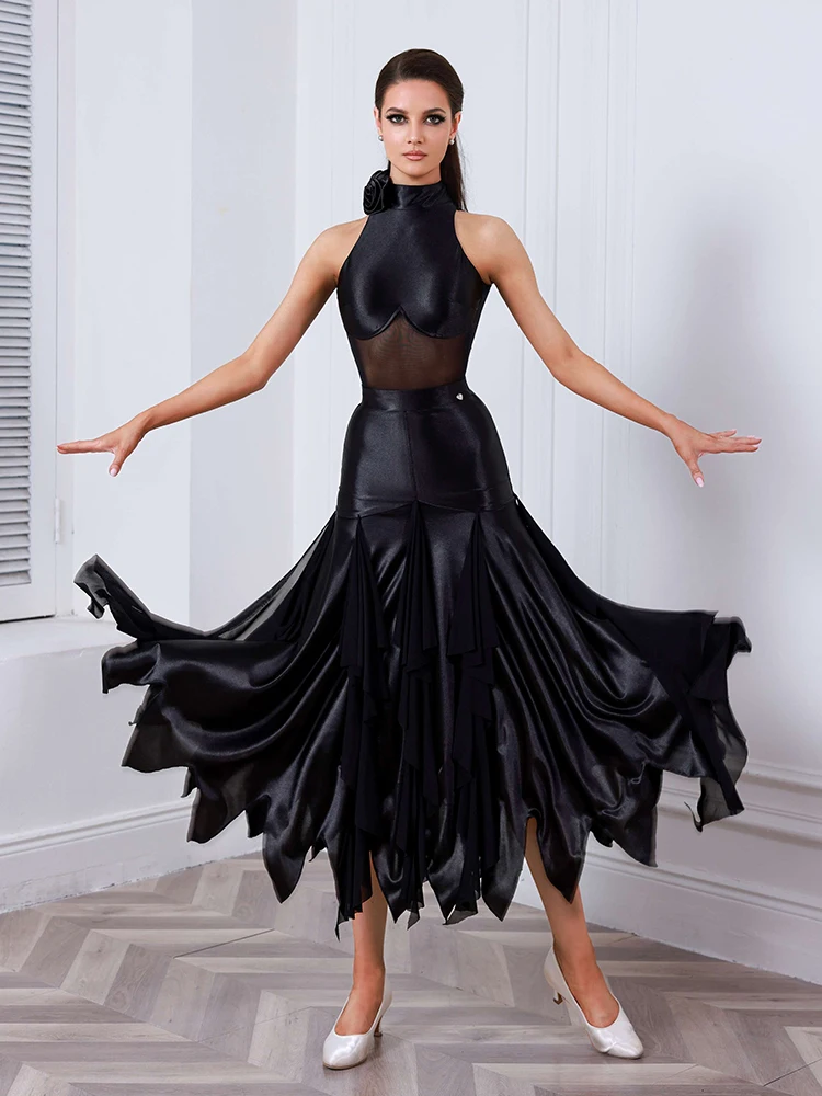 볼룸 댄스 드레스 2025 신상 왈츠 공연 의상 모던 스탠다드 댄싱 무대복 블랙 민소매 바디수트 스커트 2630