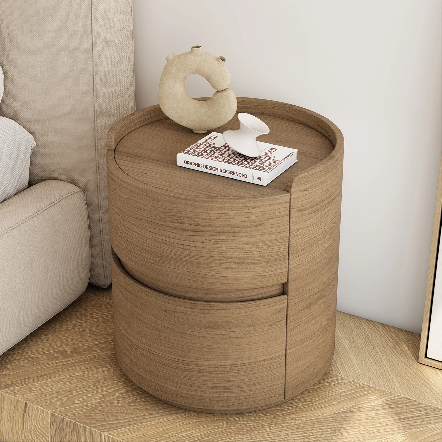 북유럽 호두 배럴 침대 옆 테이블 침실 크리 에이 티브 질감 서랍 보관 캐비닛 현대 가구