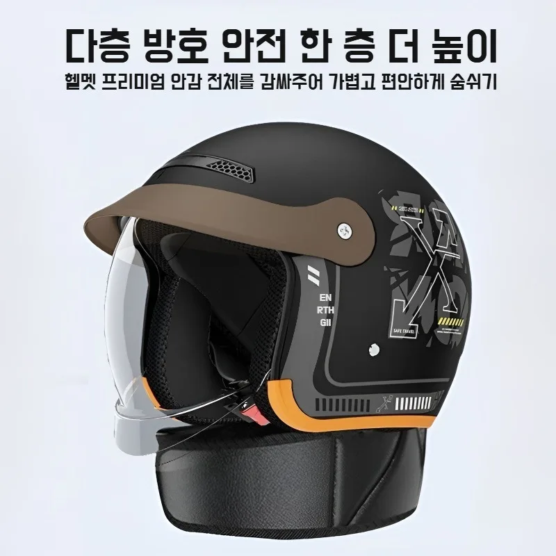빈티지 오토바이 하프 헬멧 사계절 범용 내부 렌즈 안전 헬멧 오토바이 하프 헬멧 보온 방풍 겨울용 라이딩