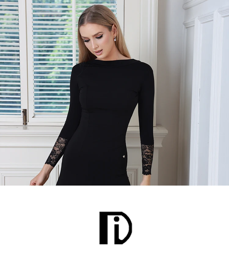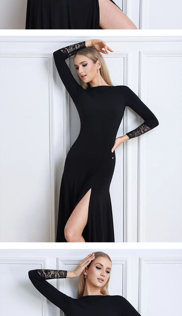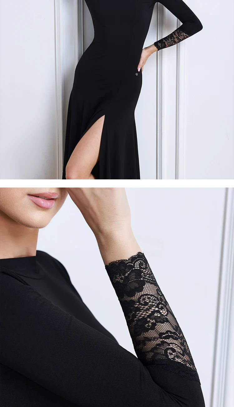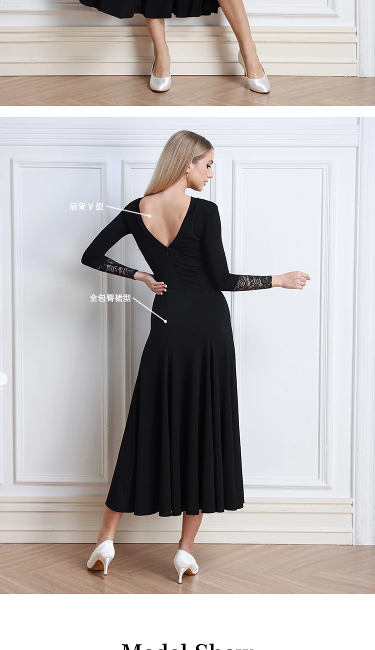 새로운 겨울 블랙 볼룸 댄스 드레스 여성 레이스 슬리브 왈츠 소셜 댄스 드레스 표준 현대 무용 공연 의상 3098