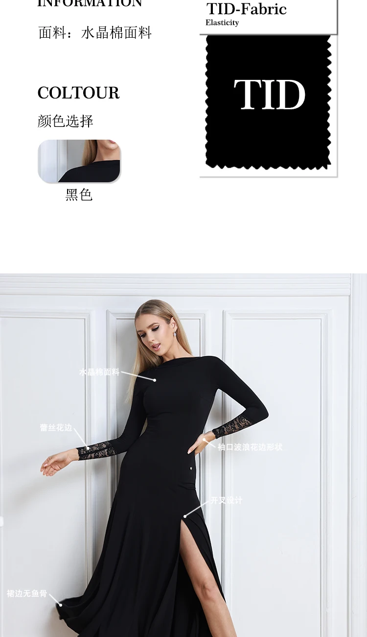 “새로운 겨울 블랙 볼룸 댄스 드레스 여성 레이스 슬리브 왈츠 소셜 댄스 드레스 표준 현대 무용 공연 의상 3098”의 첫 상품평을 남겨 주세요 응답 취소