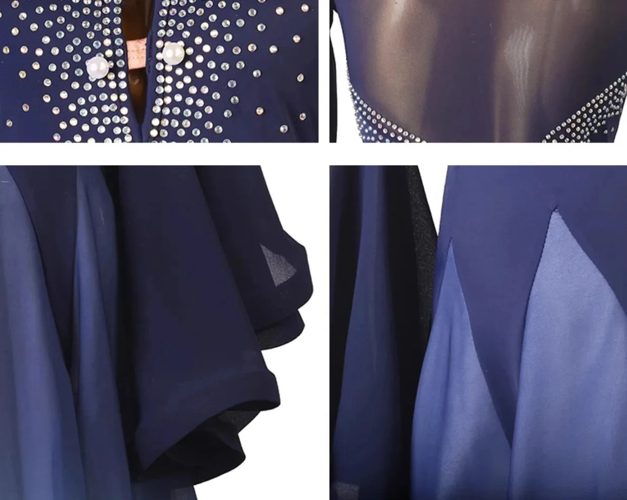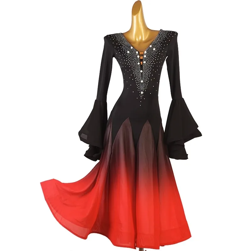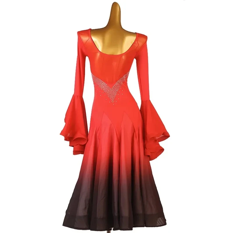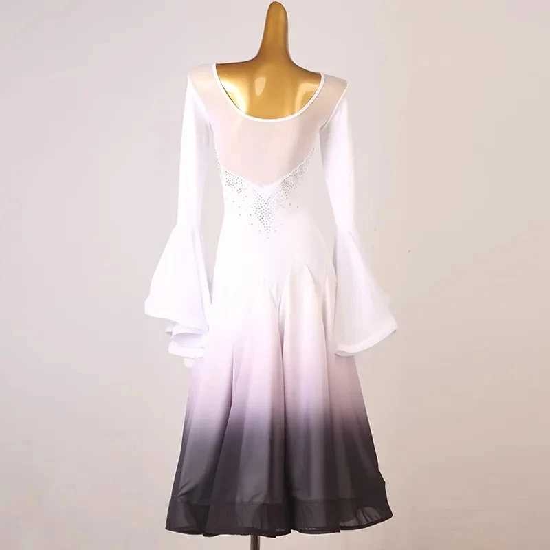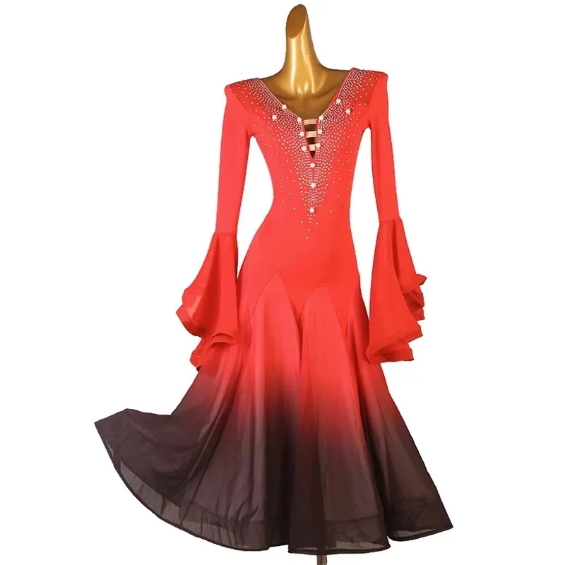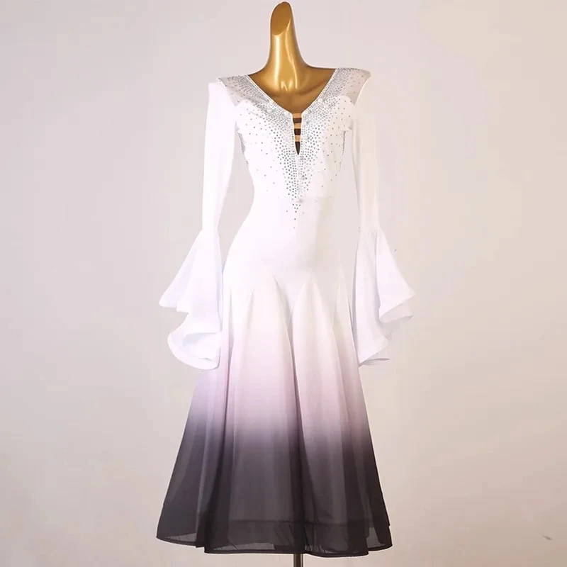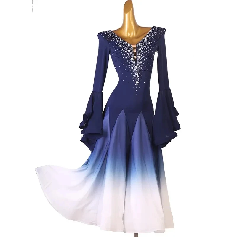 새로운 그라디언트 색상 전문 Moden 댄스 드레스 여성 표준 볼룸 사용자 정의 크기 옷 연습 착용 긴 치마 댄스 파티