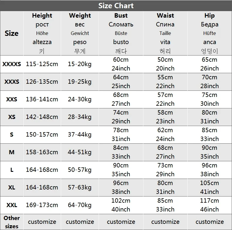 사이즈(키, 몸무게, 가슴, 허리, 엉덩이 포함)를 제공할 수 있습니다.