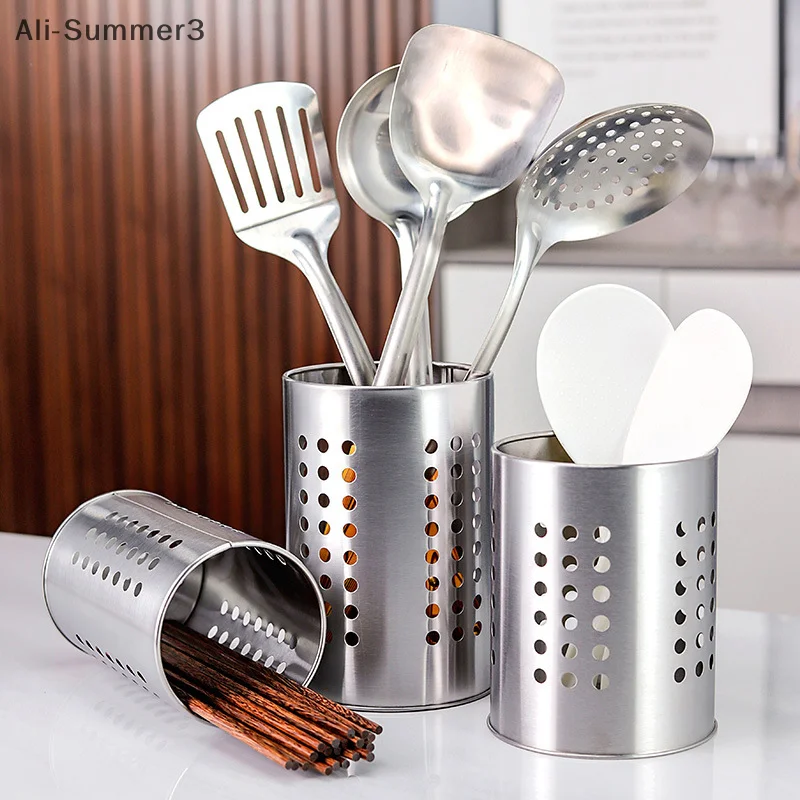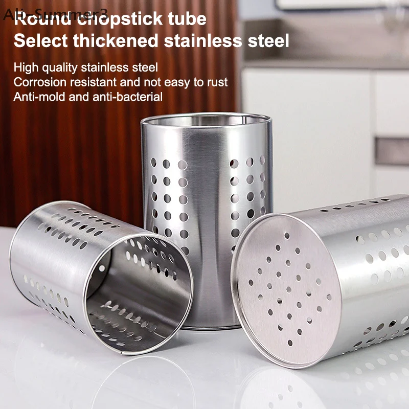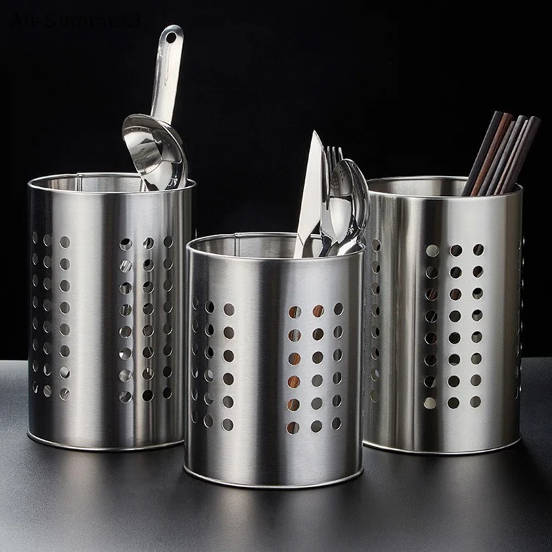 스테인리스 스틸 젓가락통 식기통 대용량 주방용품 보관 원형 구멍이 뚫린 배수 튜브