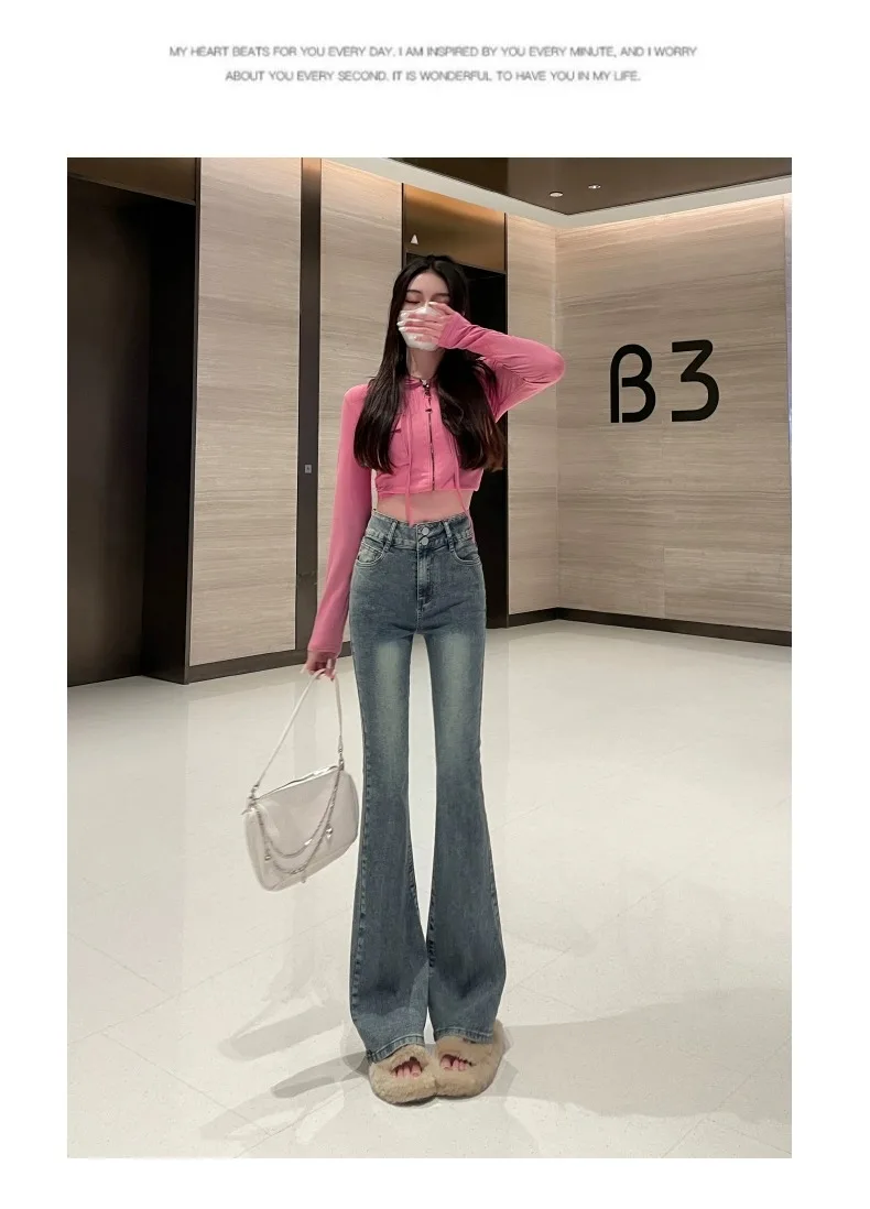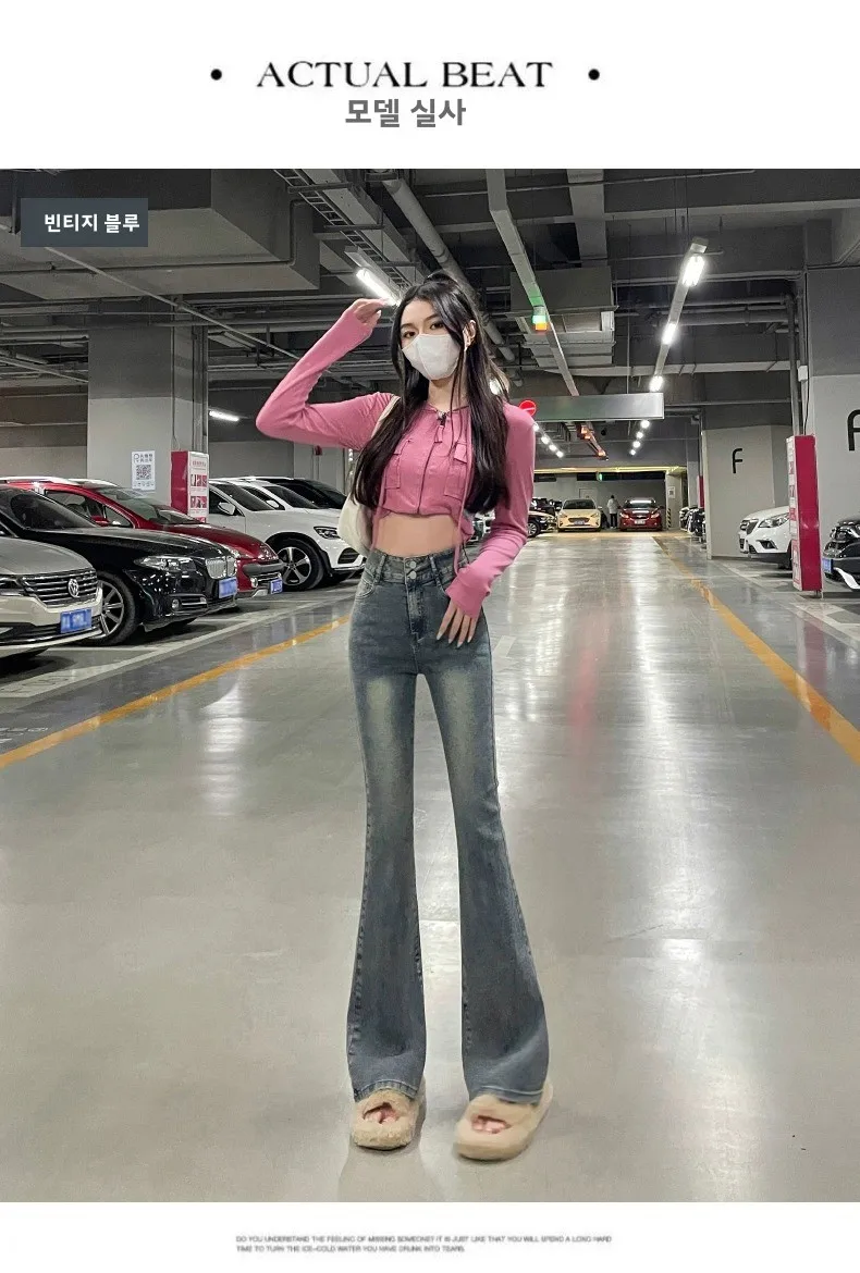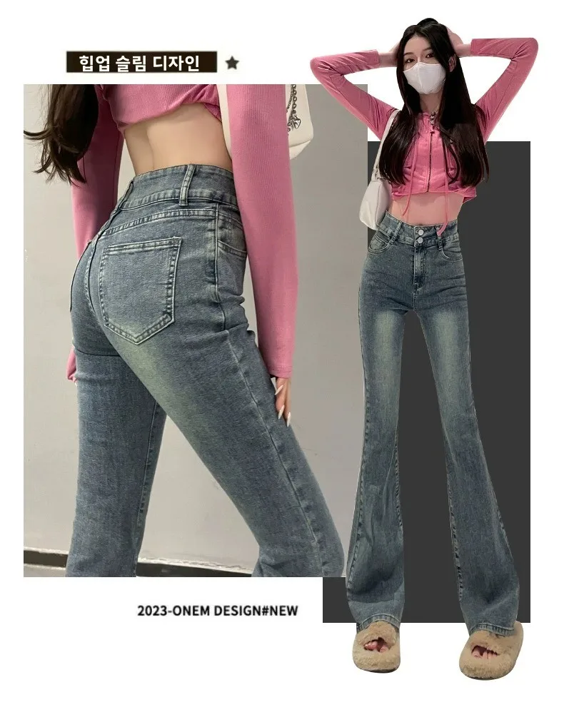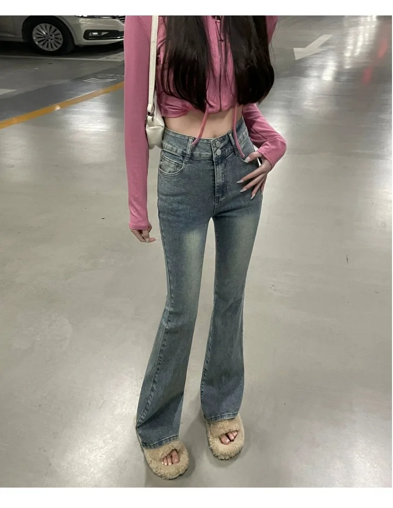 양털 안감 두꺼운 하이 웨이스트 슬림 피트 부츠컷 청바지 여성용 아메리칸 스타일 블랙 그레이 데님 바지 가을 겨울 패션