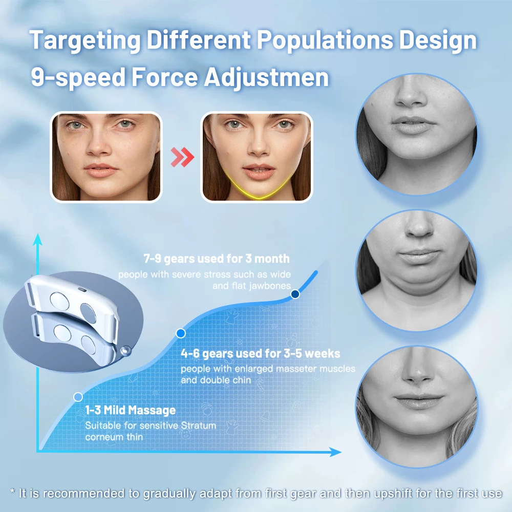 【이중턱 리프트】우리의 이중 턱 감속기는 진동을 통해 이중 턱을 들어 올리고 단단하게 만들고 세포를 활성화하며 얼굴 탄력을 증가시킬 수 있는 미세 전류 마사지 모드를 채택합니다.