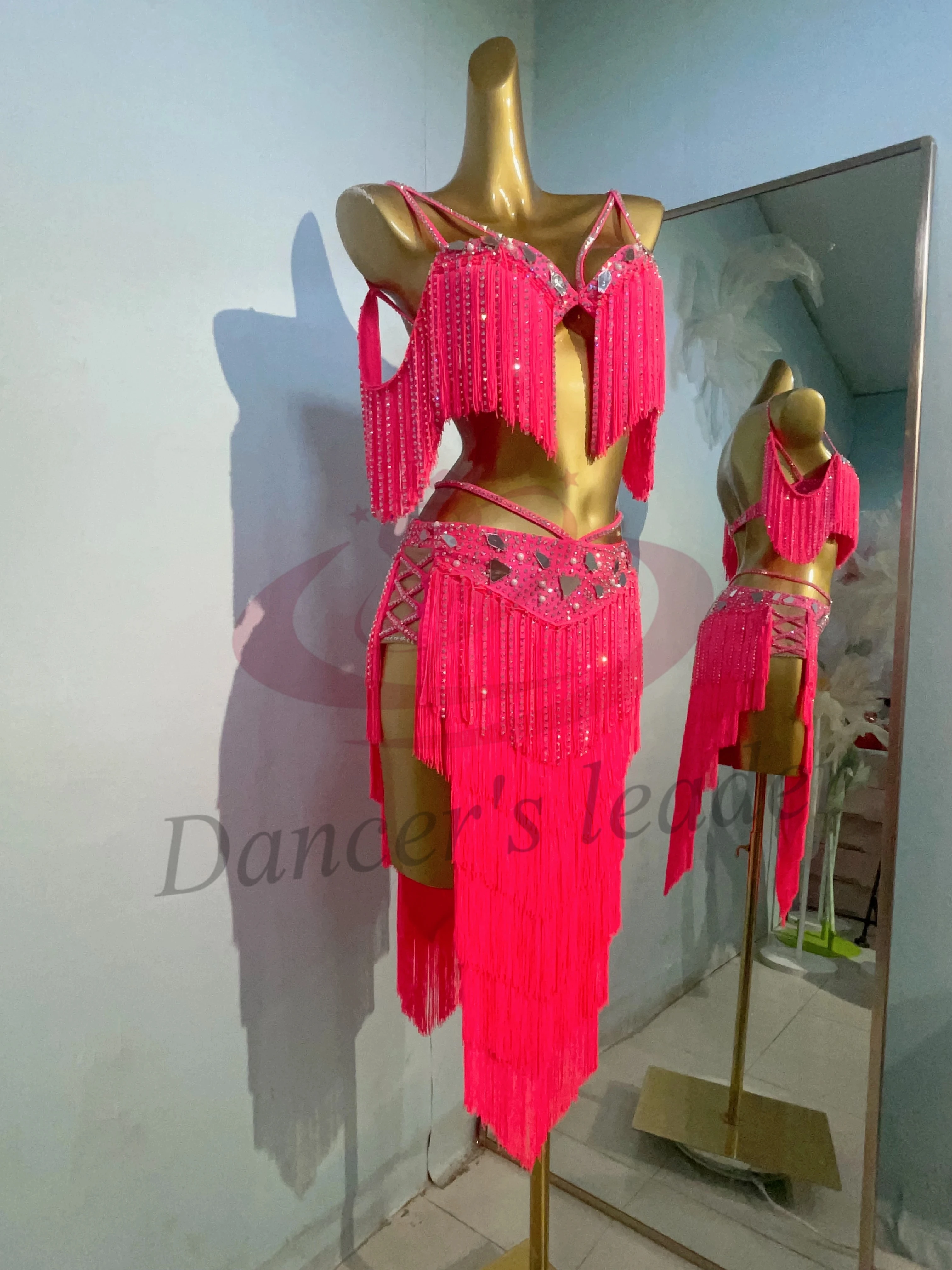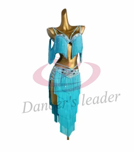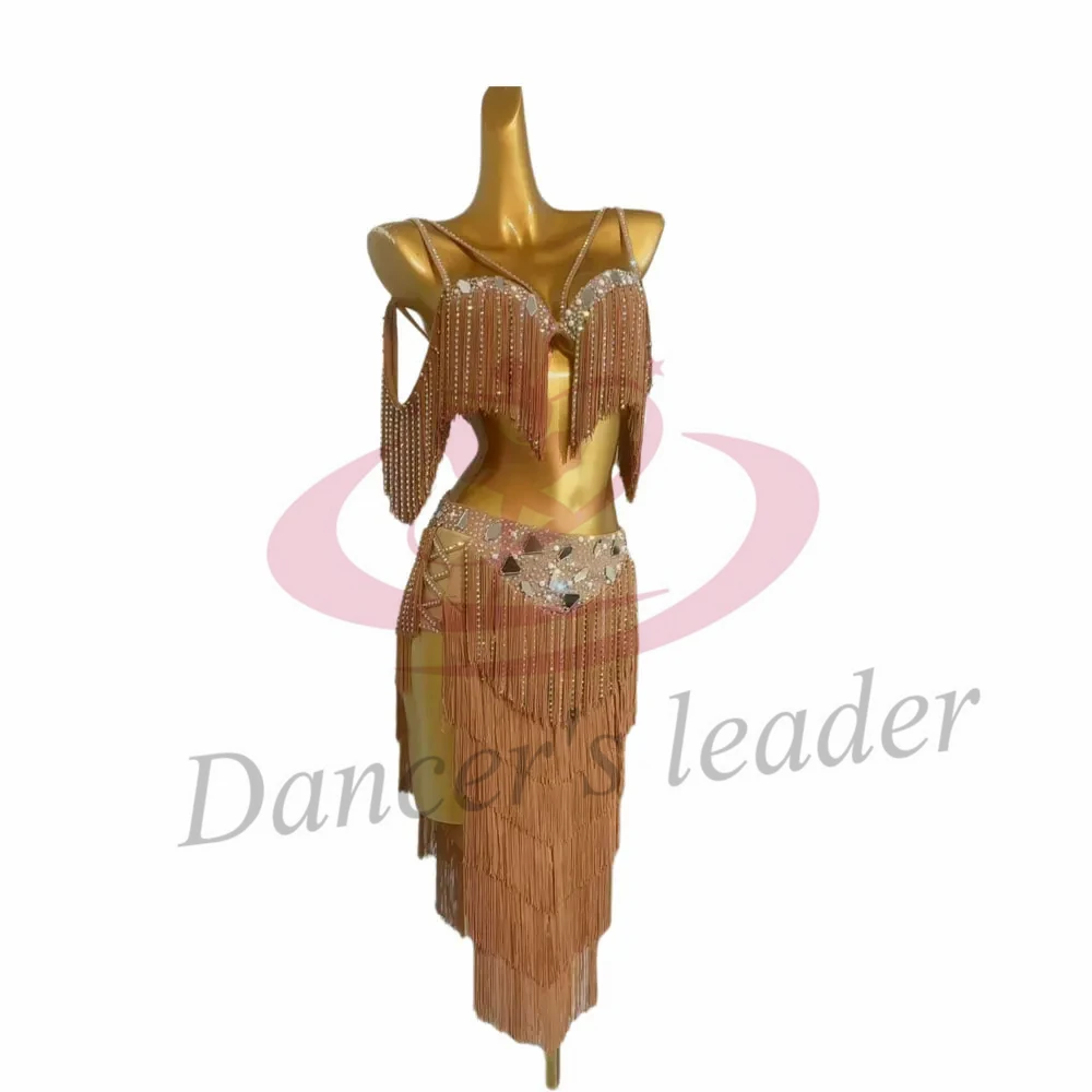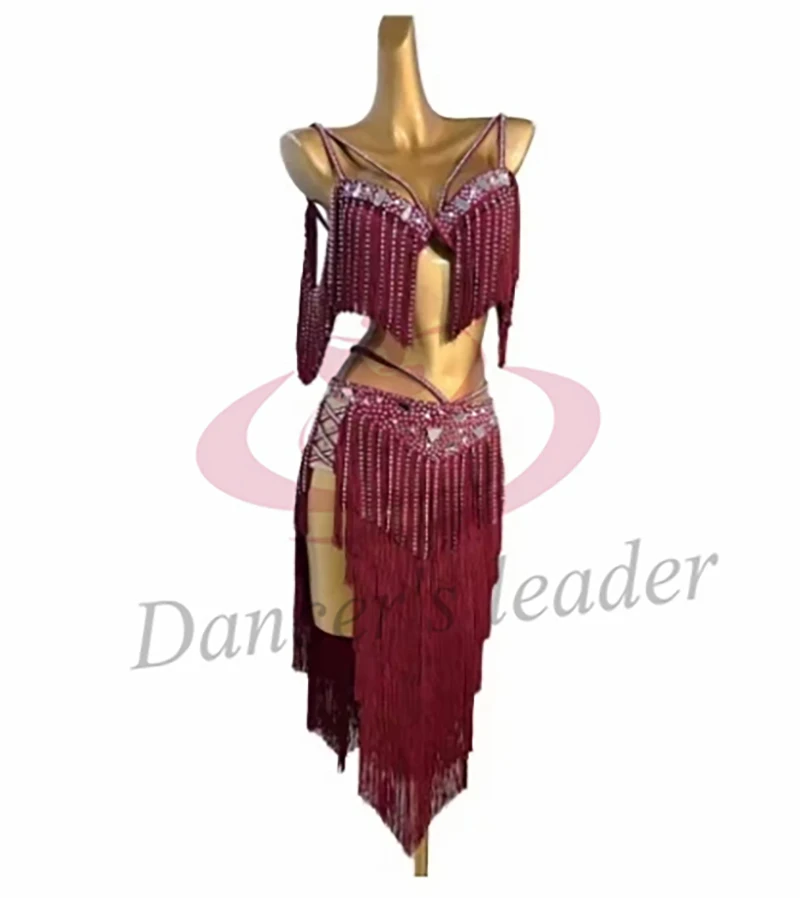 여성용 밸리 댄스 코스튬 라인석 대형 렌즈 서스펜더 탱고 삼바 공연 원피스, 하이 엔드 커스텀 레드 태슬