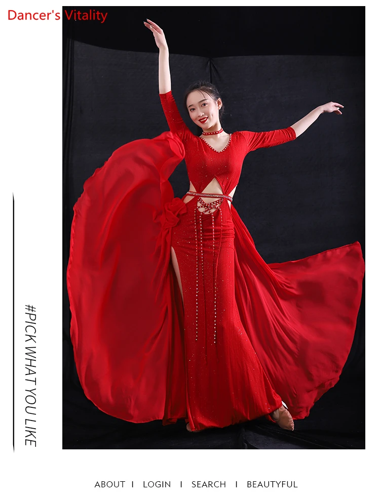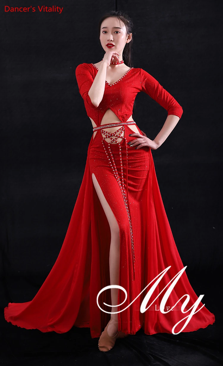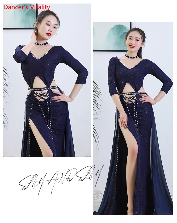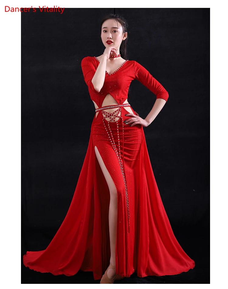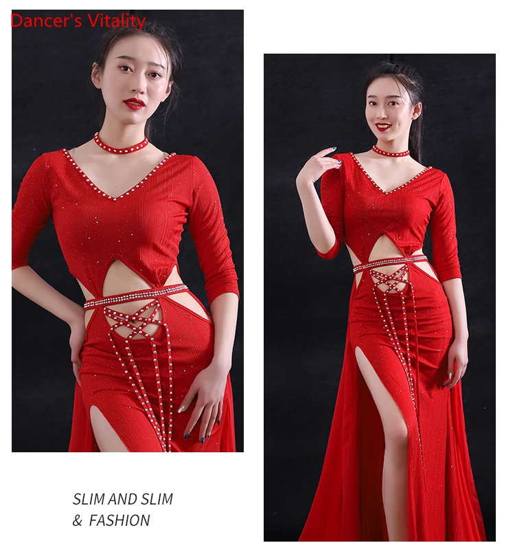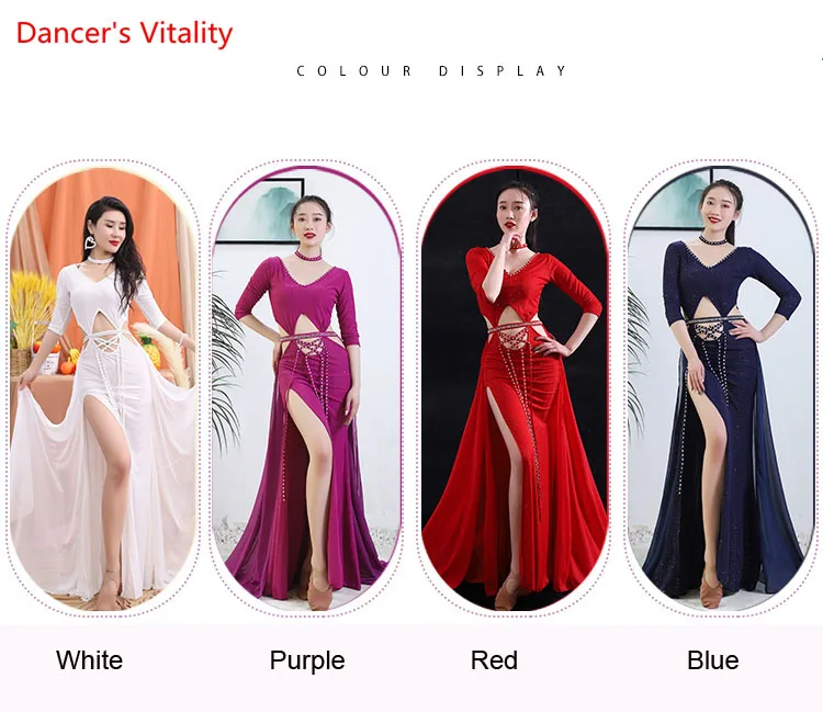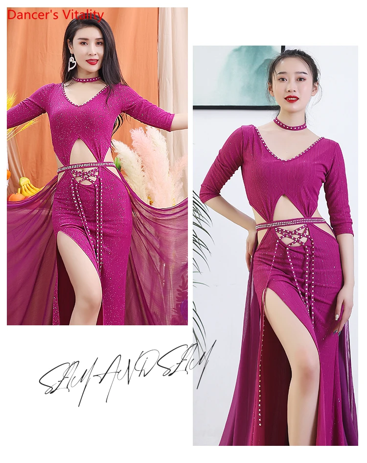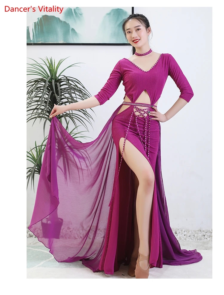 여성을위한 밸리 댄스 공연 드레스 Bellydancing 경쟁 의류 세트 여성 오리엔탈 댄스 연습 의류 드레스 M,L