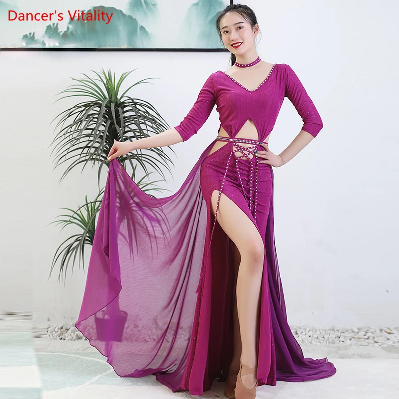 여성을위한 밸리 댄스 공연 드레스 Bellydancing 경쟁 의류 세트 여성 오리엔탈 댄스 연습 의류 드레스 M,L