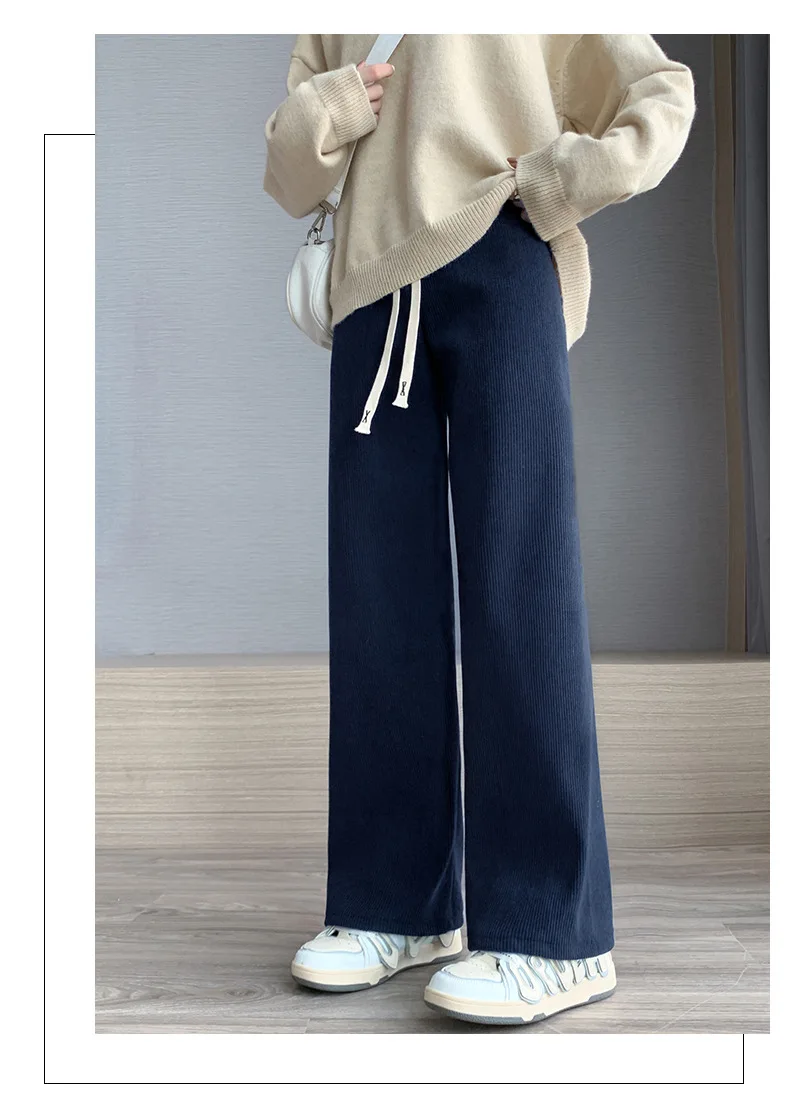 여성 긴 바지 봄 가을 여성 탄성 허리 Stright 긴 넓은 다리 바지 2024 캐주얼 여성 긴 바지 바지