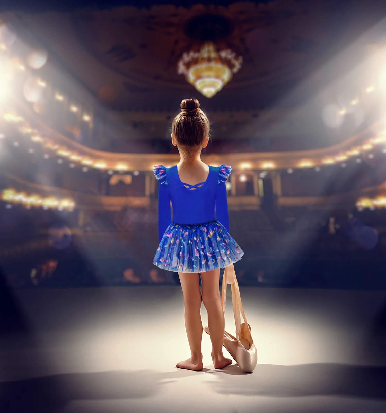 더블 레이어 러플 슬리브로 장식된 긴 소매는 우아하고 생동감 넘치며 무대에서 소녀를 더욱 인기 있게 만들어줍니다.