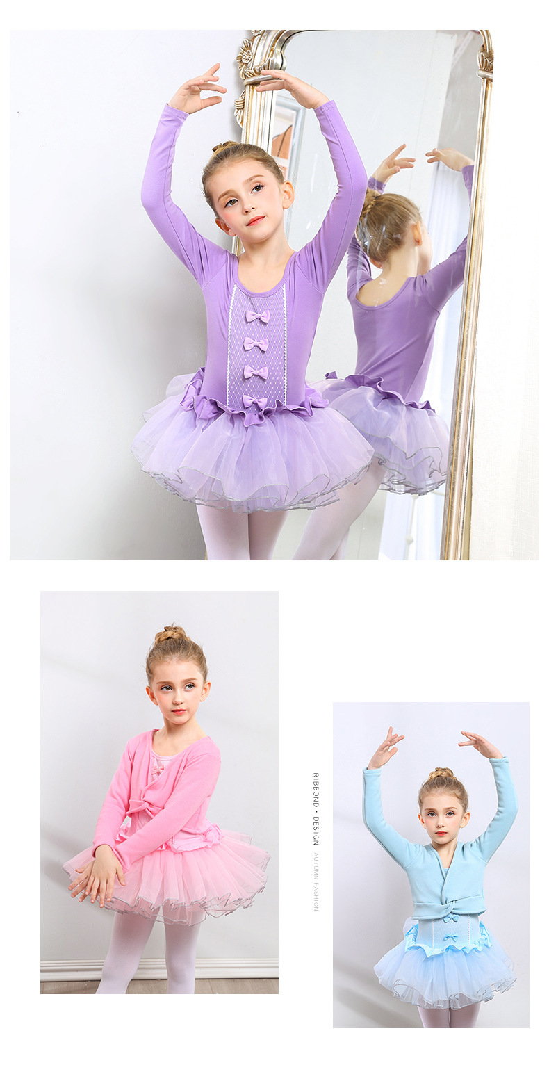 - girl long sleeve ballet leotard dress: kid Birthday Party Wear