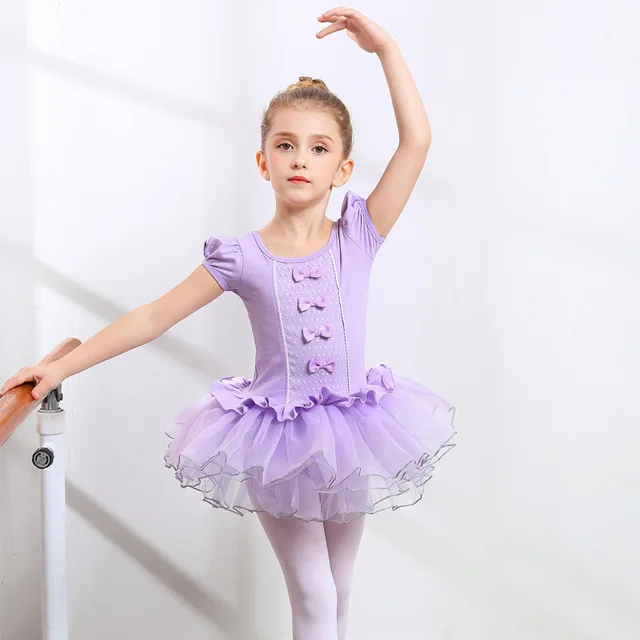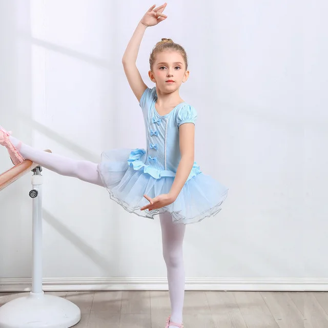 - Gymnastics Leotard dress: kid short sleeve dance dress