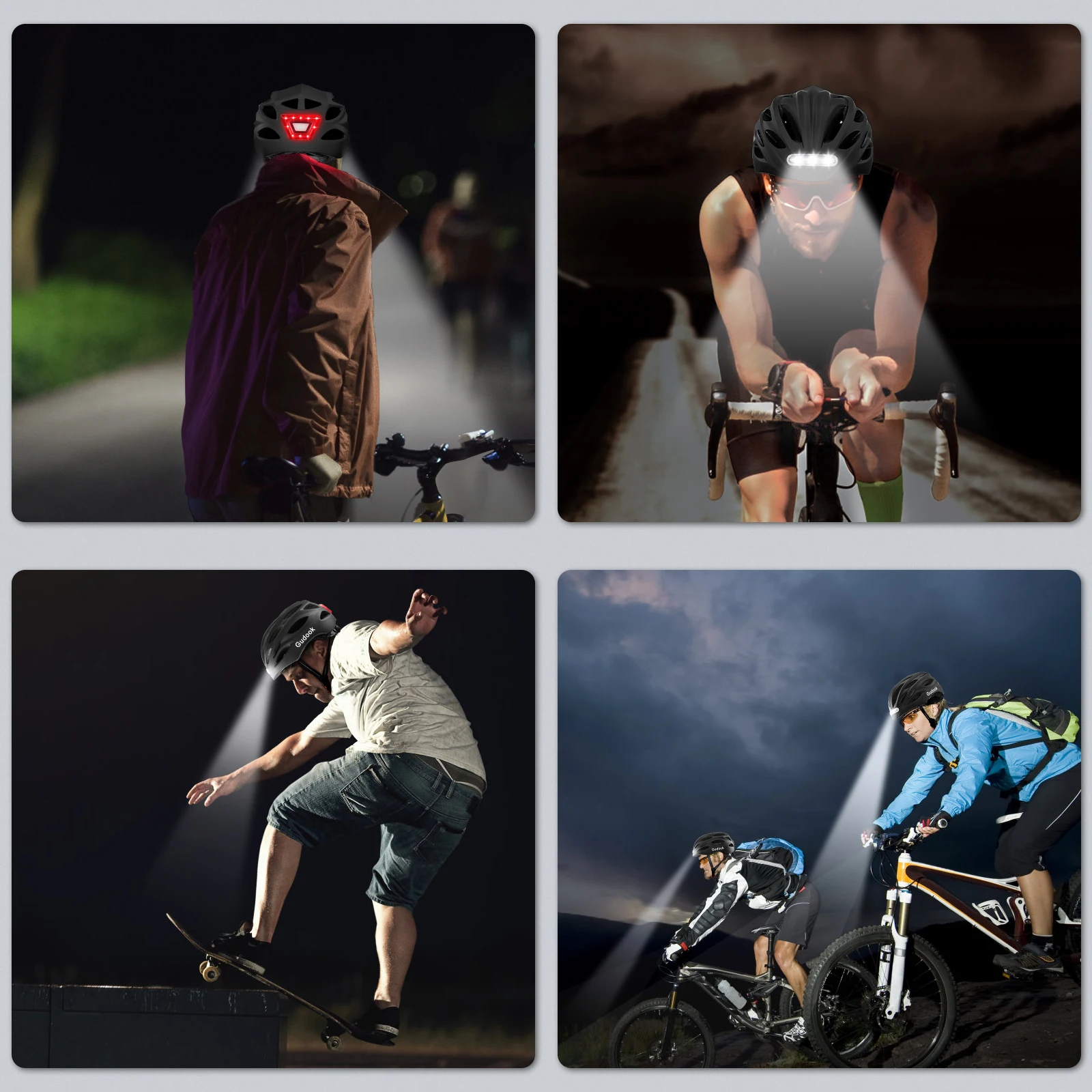 자전거 헬멧 남성용/여성용 성인용 자전거 헬멧: 사이클링 도시 통근 스케이트보드용 USB 충전식 LED 전면 및 후면 조명