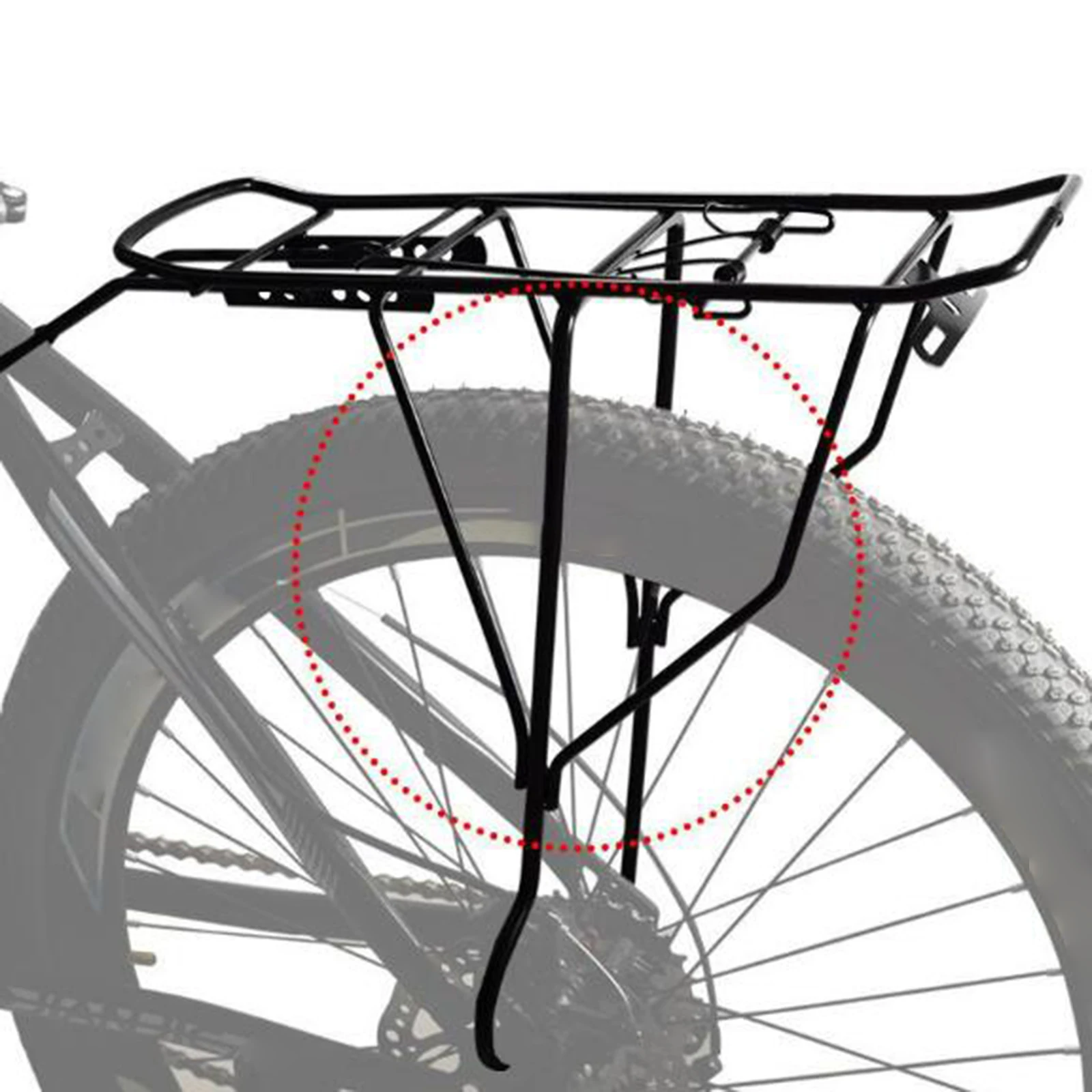 【보호 브래킷】자전거 후방 수하물 화물 랙은 라이딩 중에 바퀴가 바퀴에 걸리는 것을 방지하기 위해 양쪽에 보호 브래킷으로 설계되었습니다.