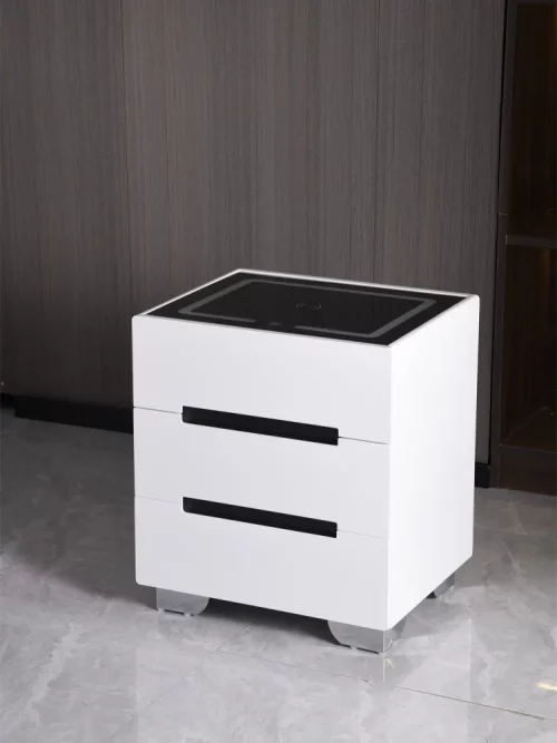 3개의 서랍 블루투스 스피커가 있는 스마트 침대 옆 테이블 무선 충전 엔드 테이블이 있는 나무 측면 캐비닛 침실 엔드 테이블