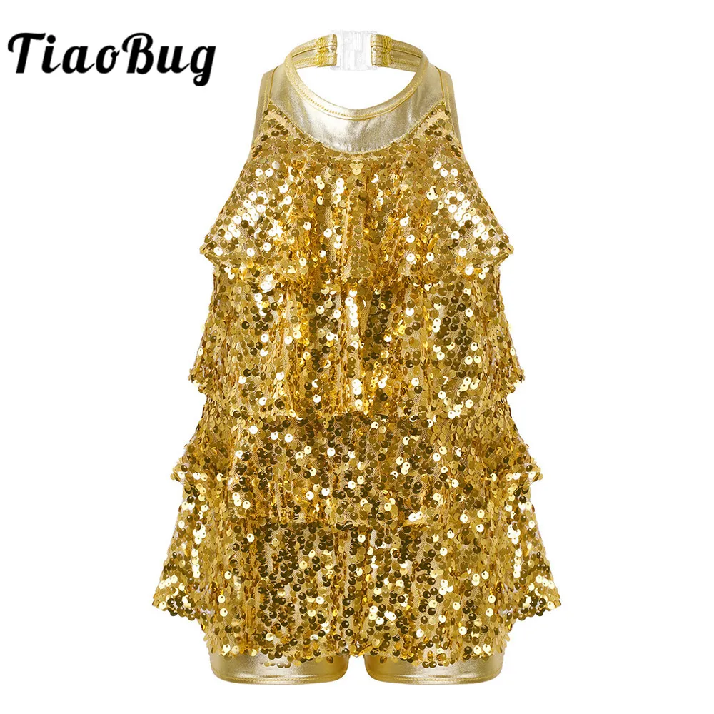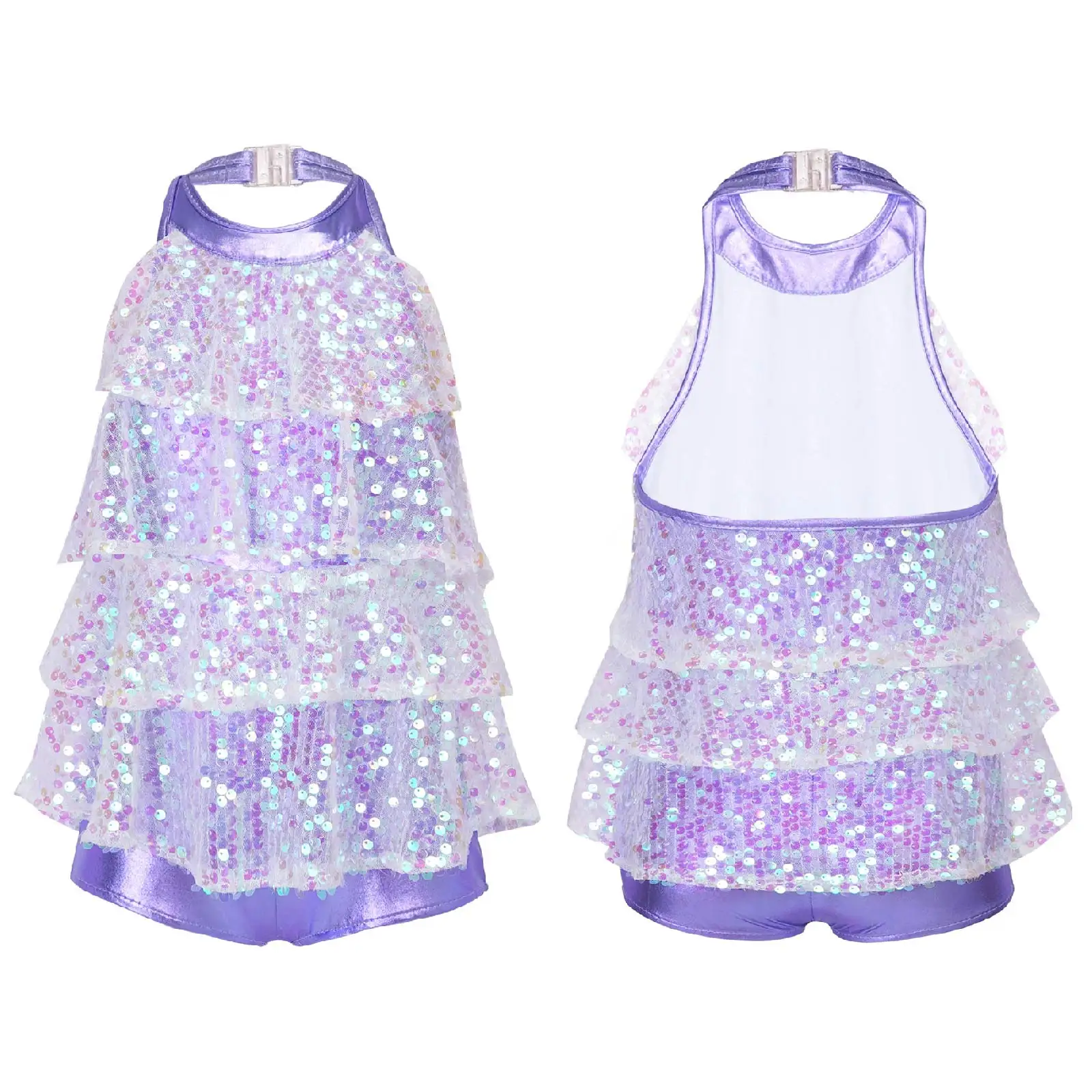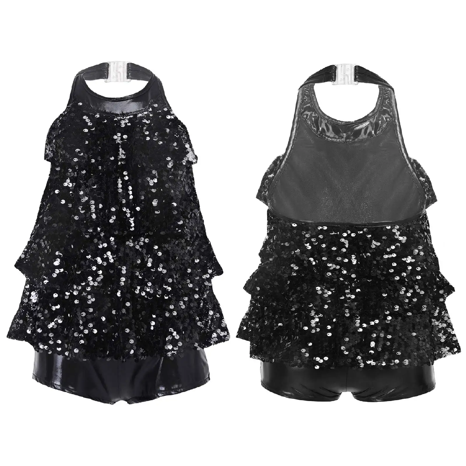키즈 홀터 반짝 이는 스팽글 체조 쇼티 유니타드 드레스 소녀 발레 레오타드 무대 공연 라틴 재즈 댄스 의상