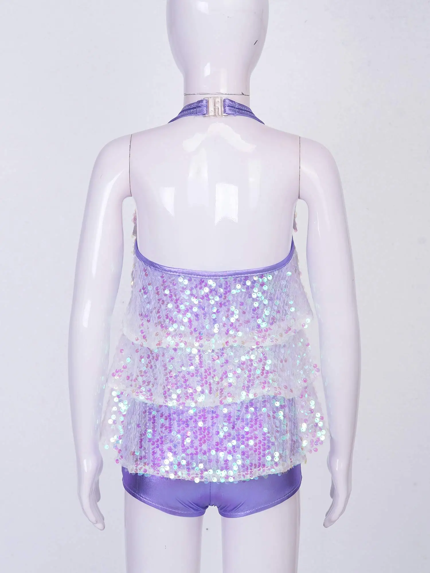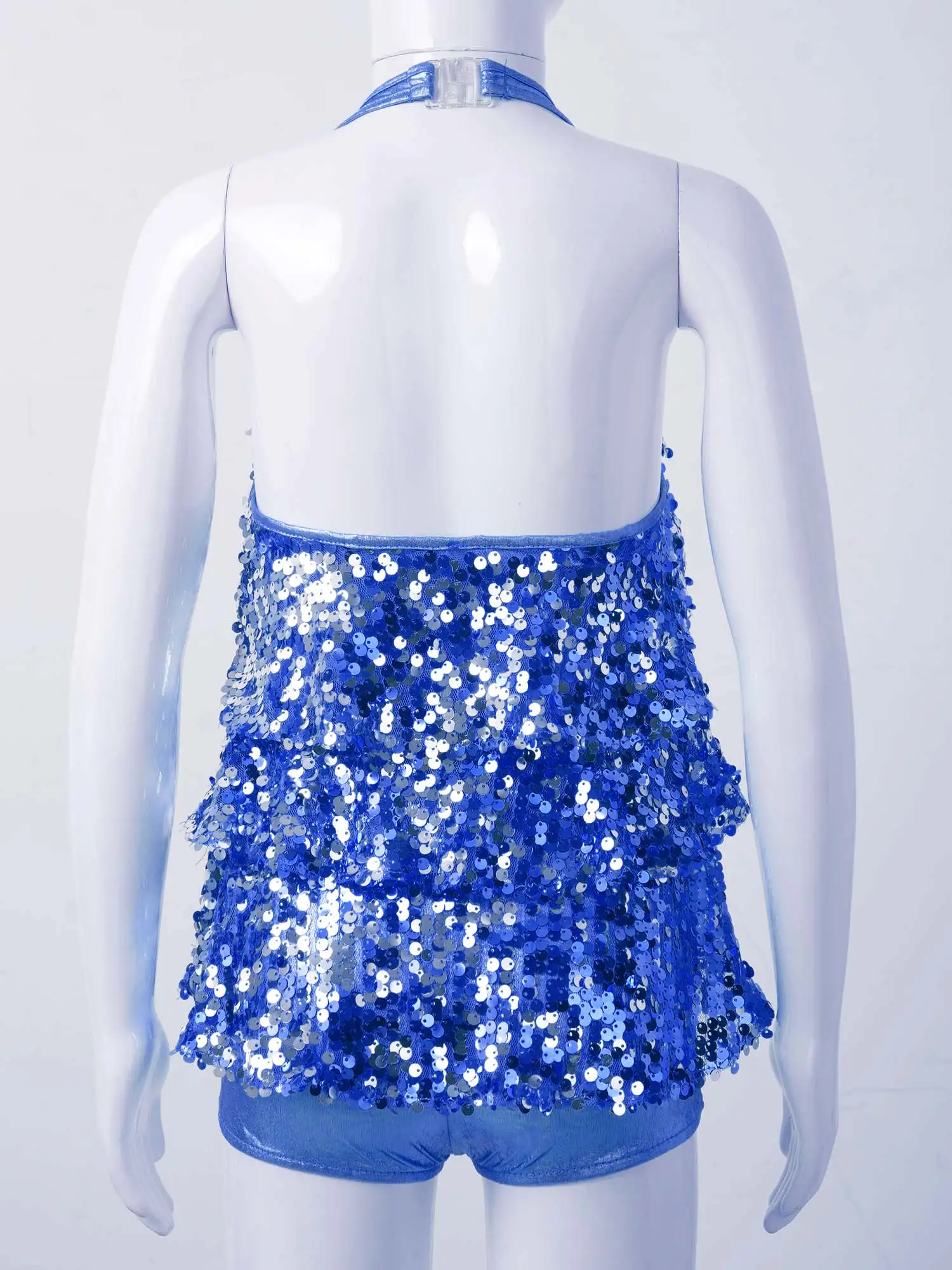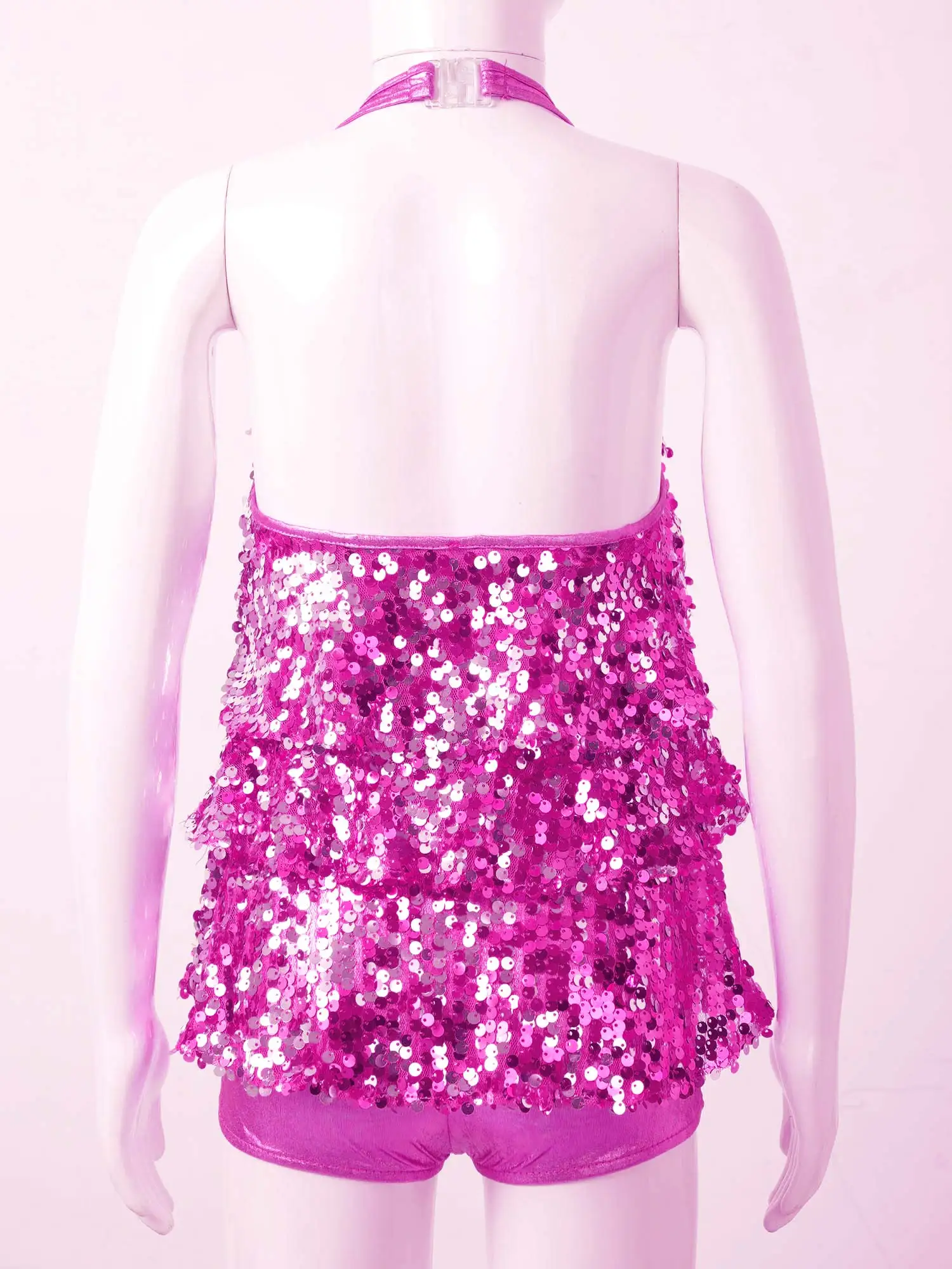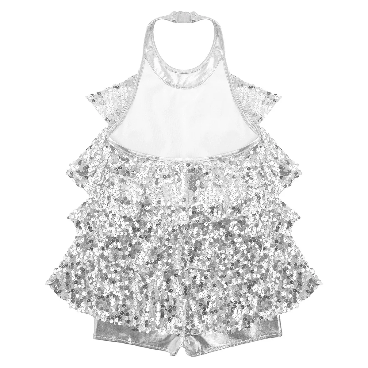 - 모델 번호: Kids Girls Halter Shiny Sequins Unitards Dance Costume