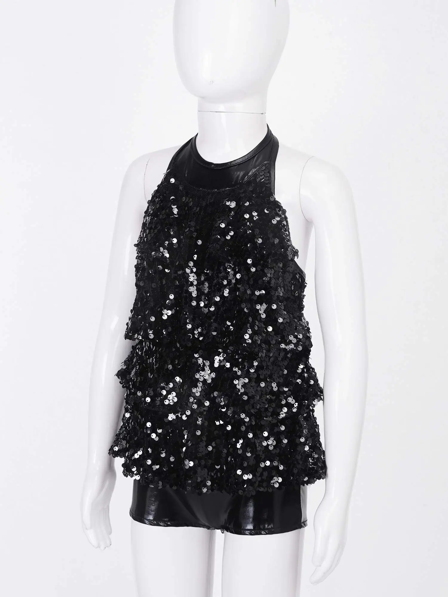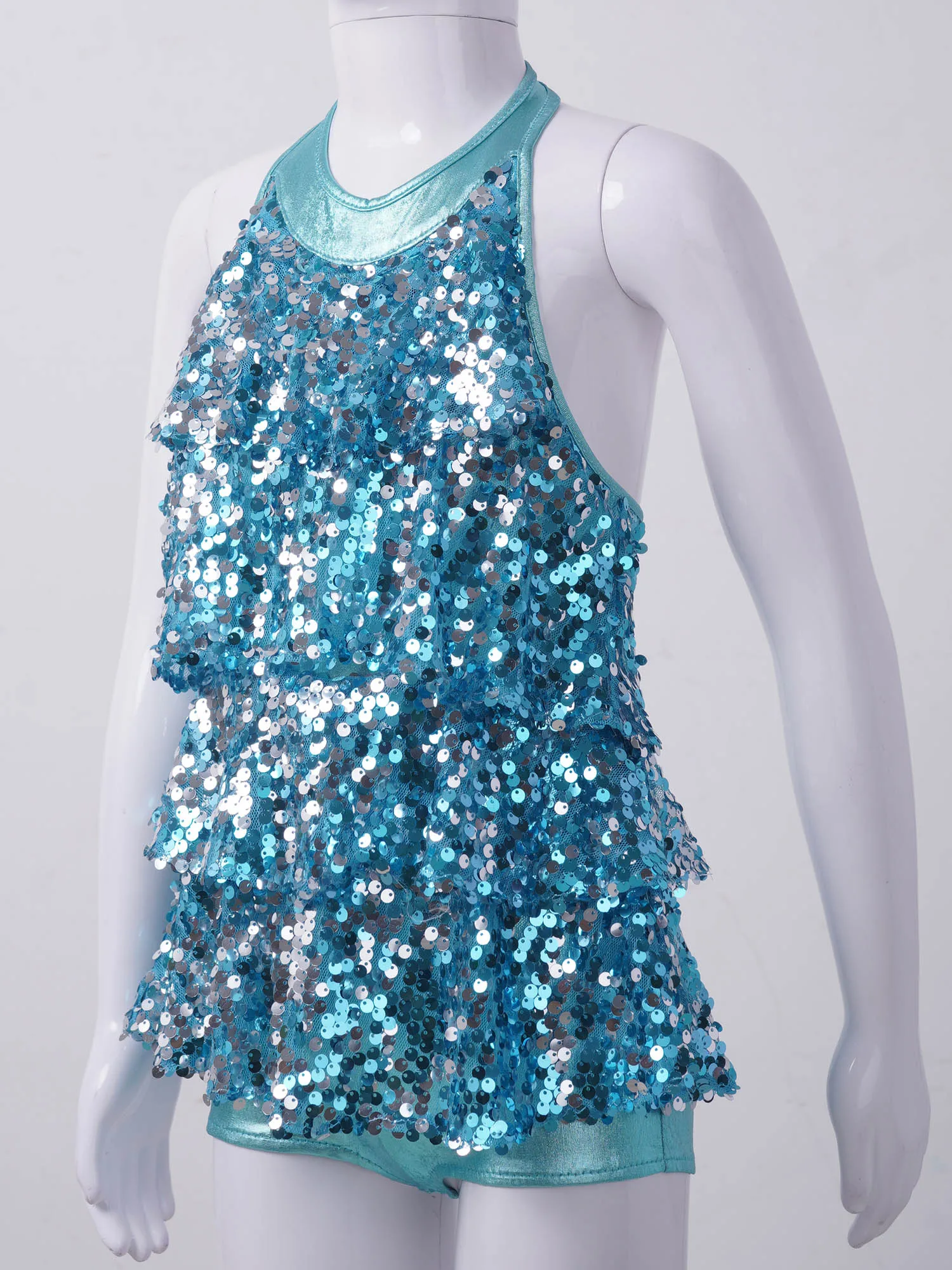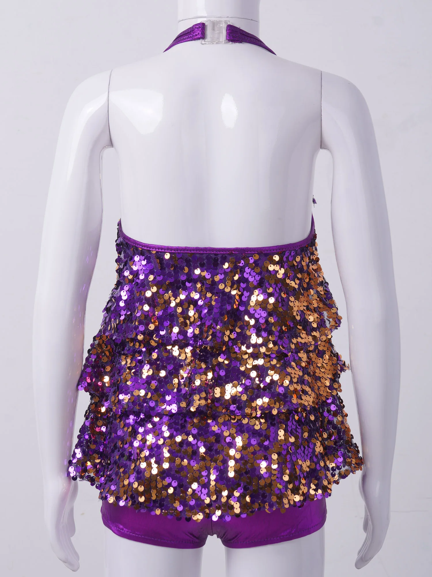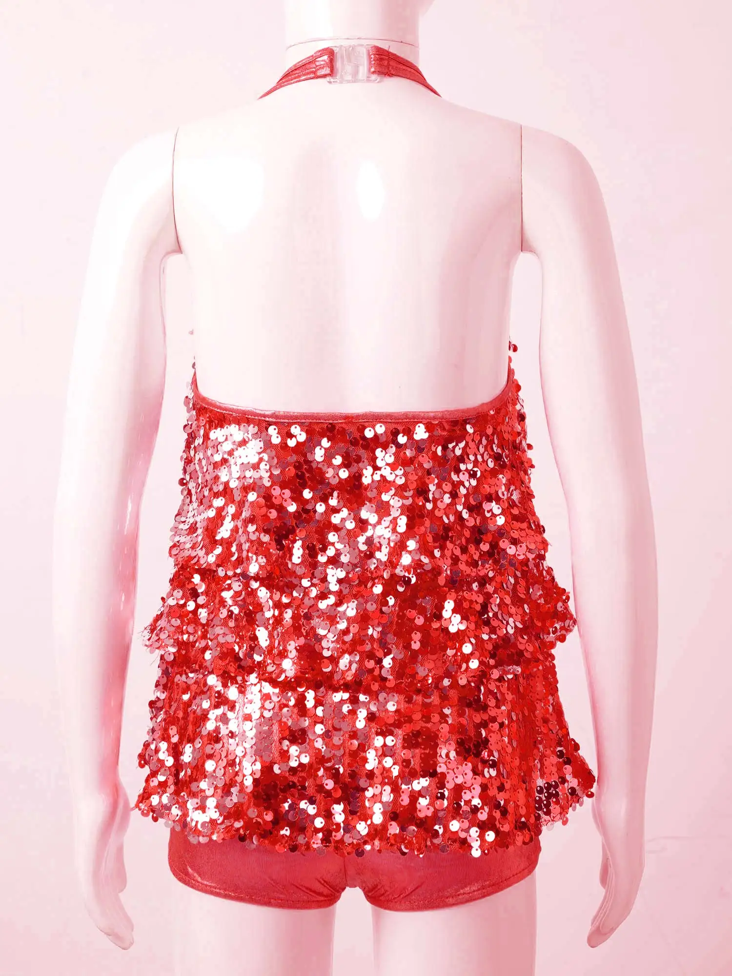 - 모델 번호: Kids Girls Halter Shiny Sequins Unitards Dance Costume