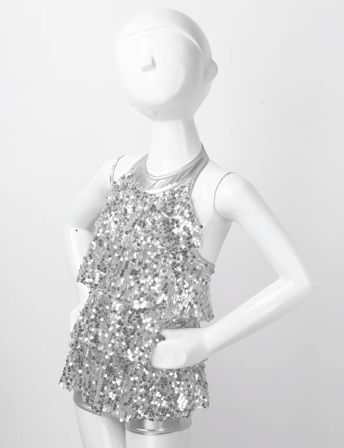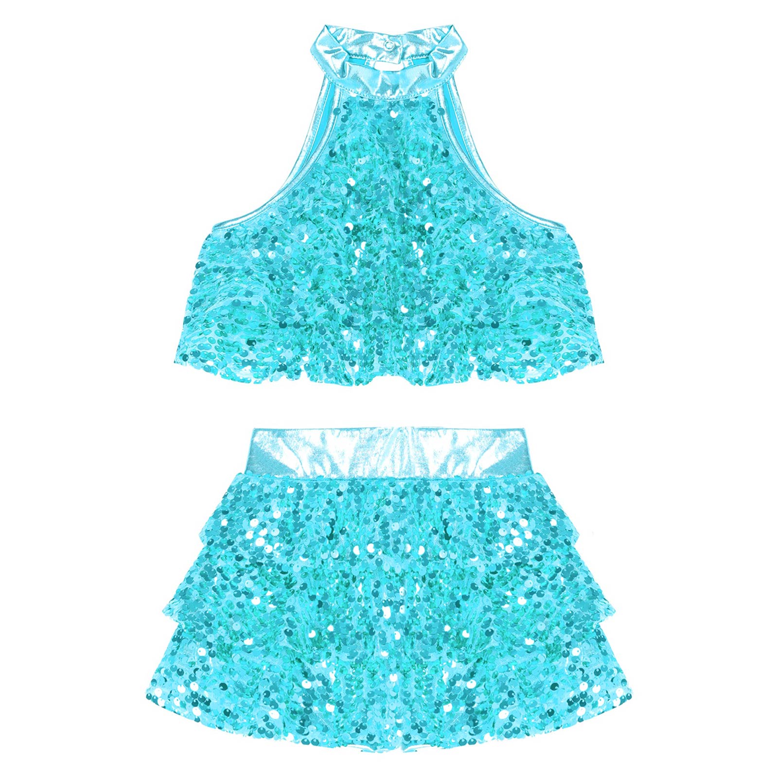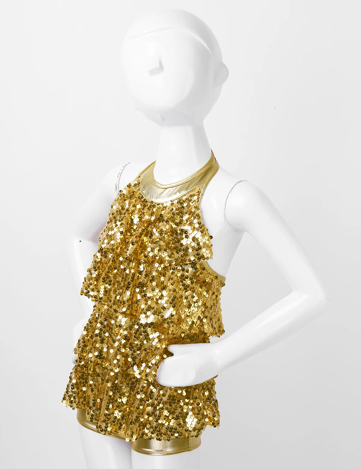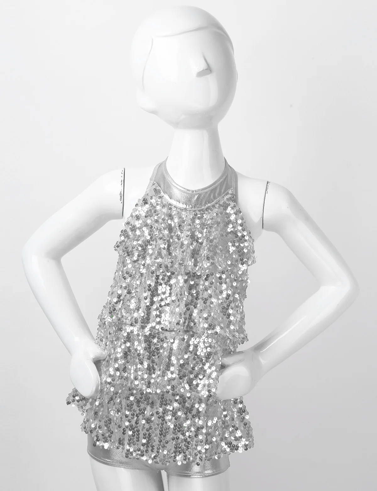 - 모델 번호: Kids Girls Halter Shiny Sequins Unitards Dance Costume
