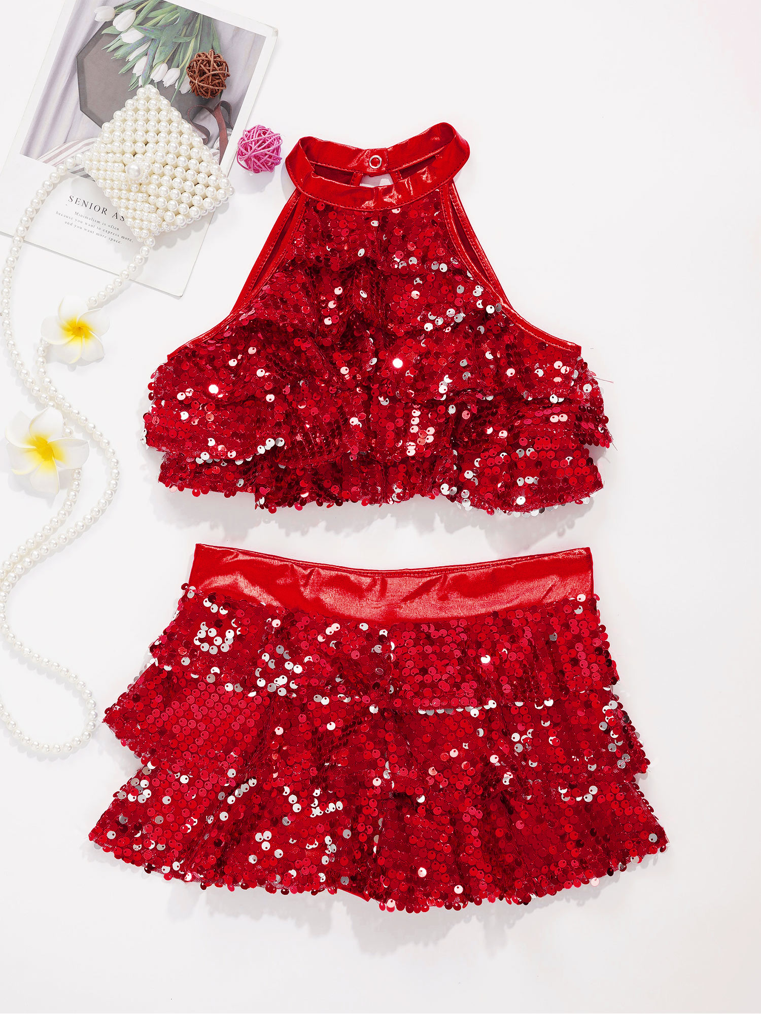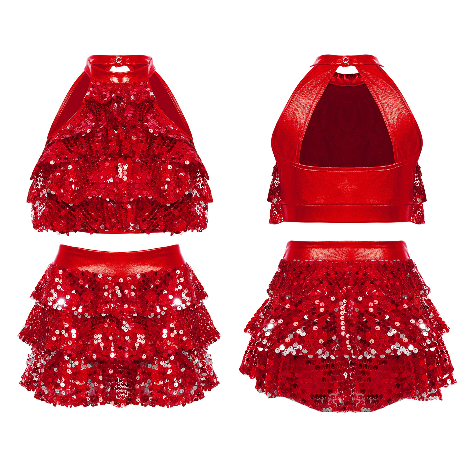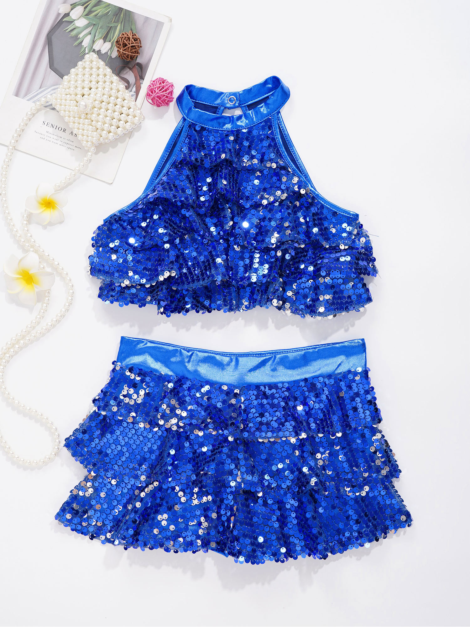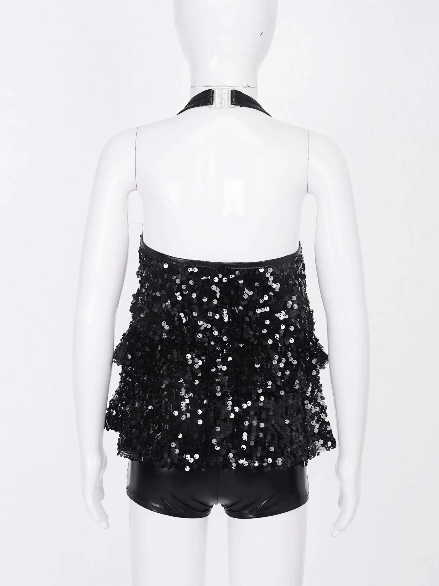 - 모델 번호: Kids Girls Halter Shiny Sequins Unitards Dance Costume