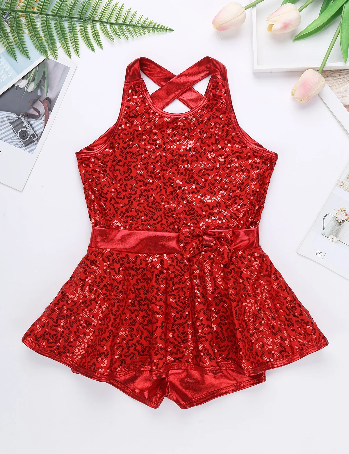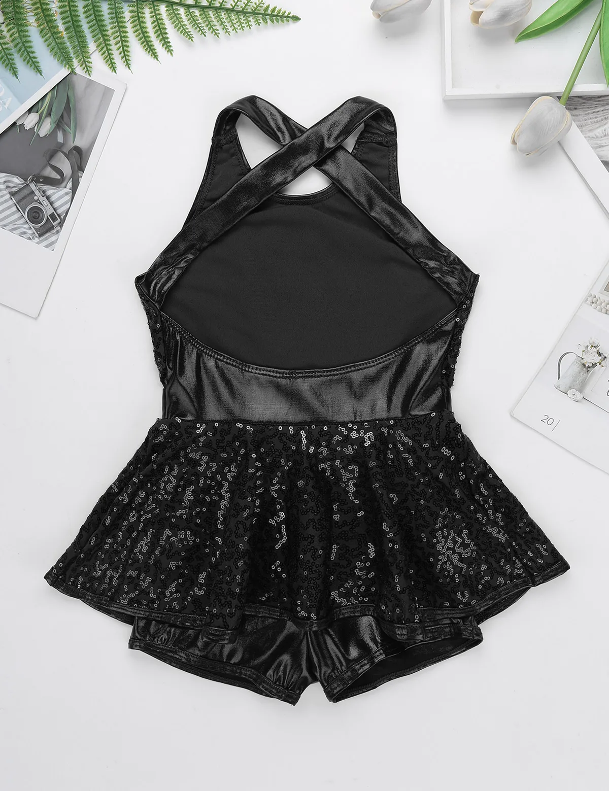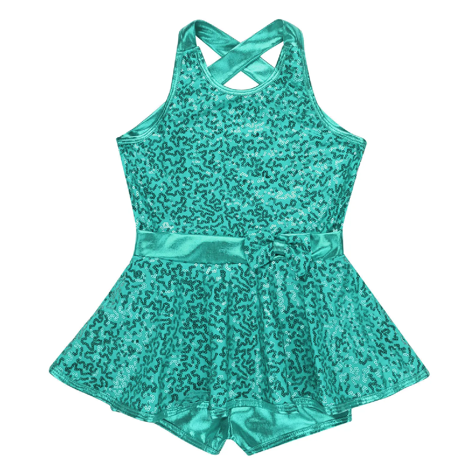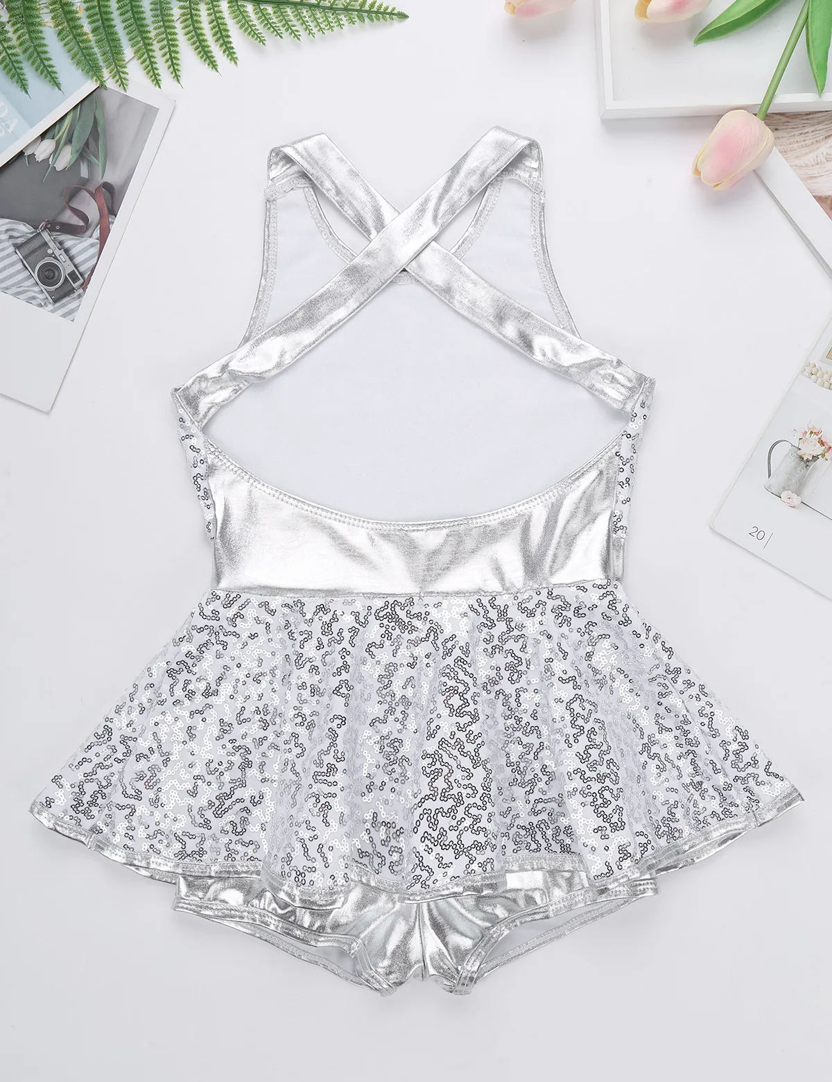 - Girls Kids Sequins Ballet Unitard Dress: Modern Jazz Latin Dance Outfit