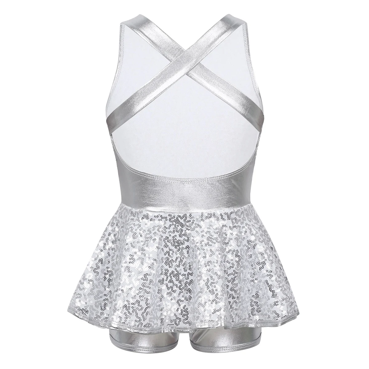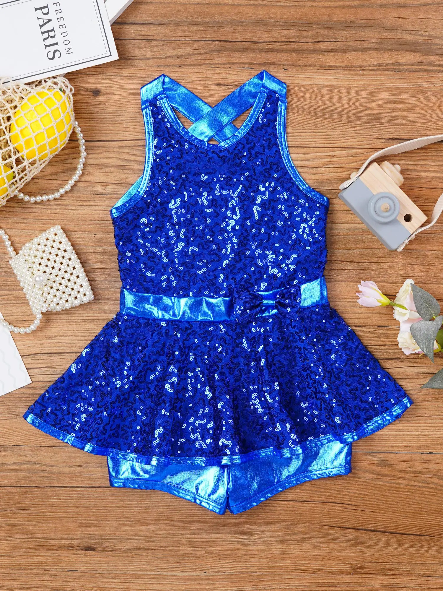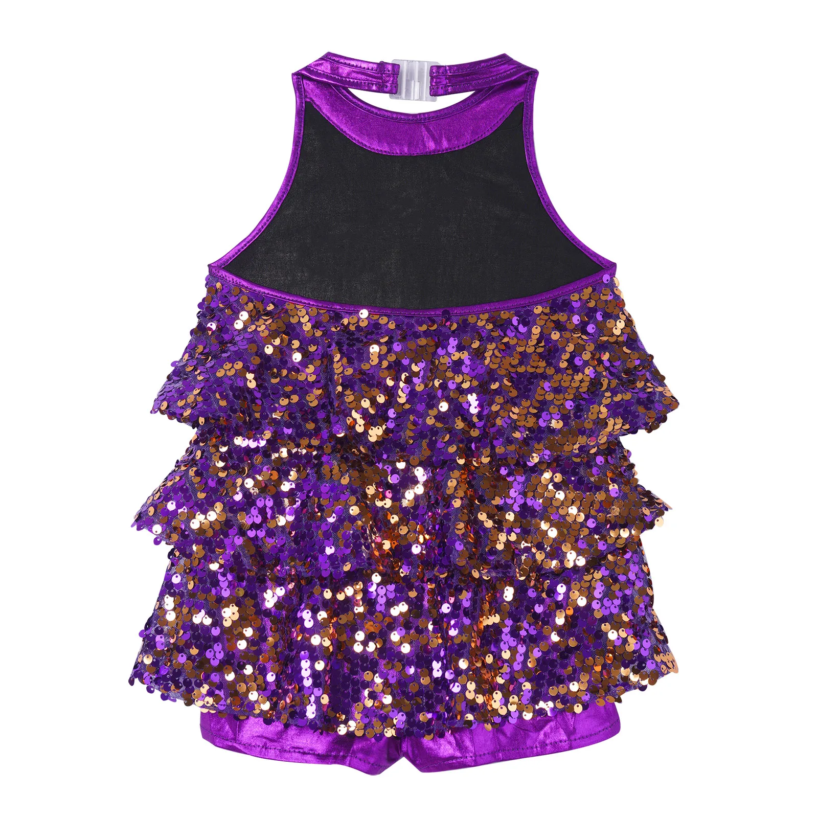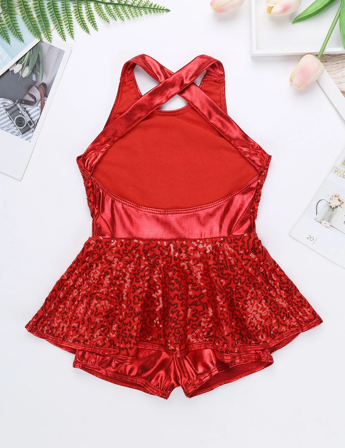 - Girls Kids Sequins Ballet Unitard Dress: Modern Jazz Latin Dance Outfit