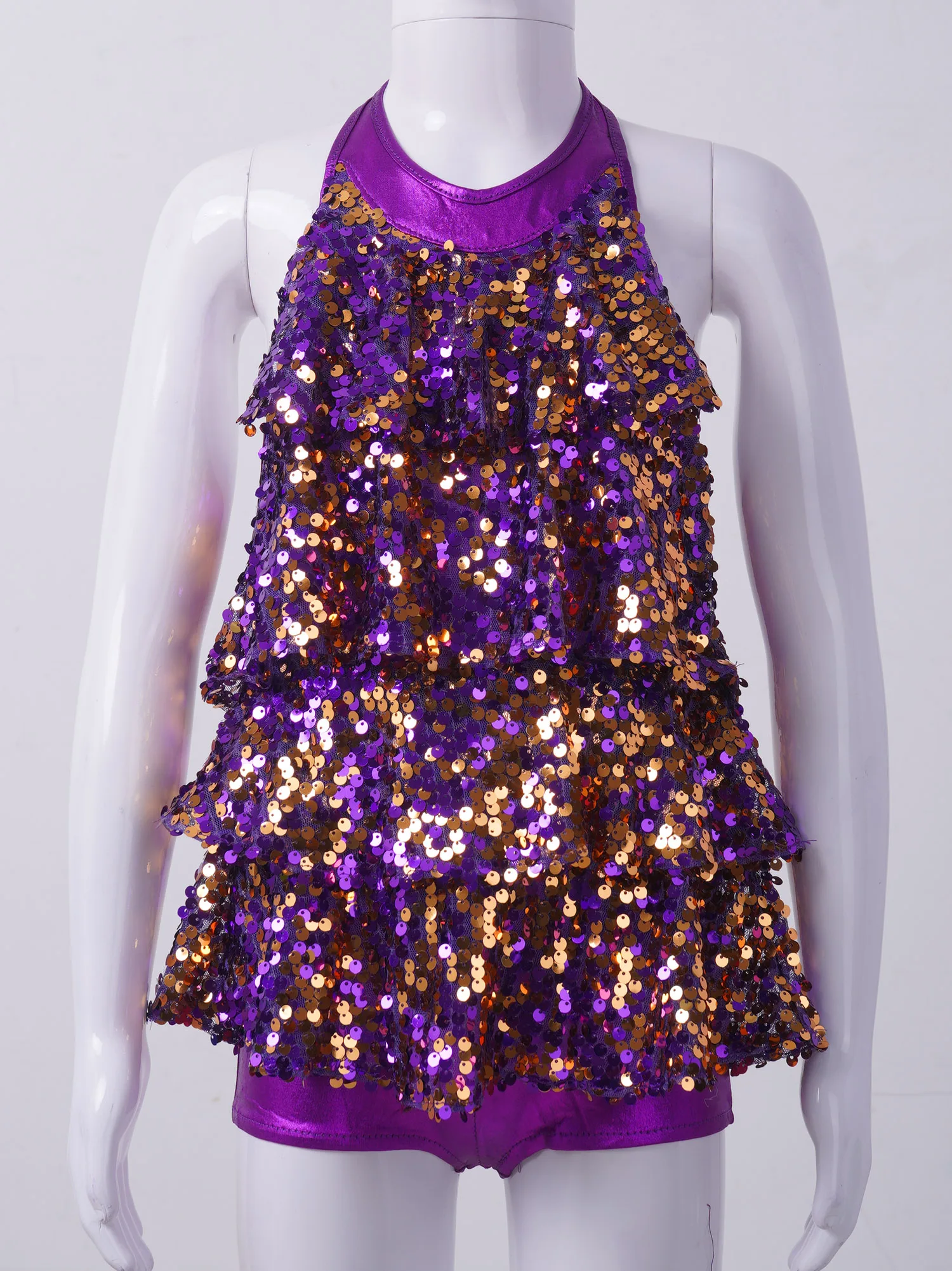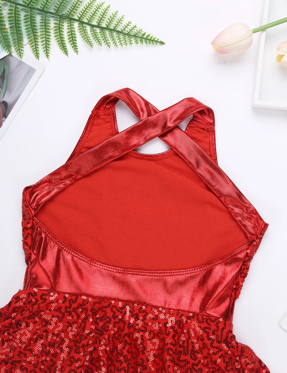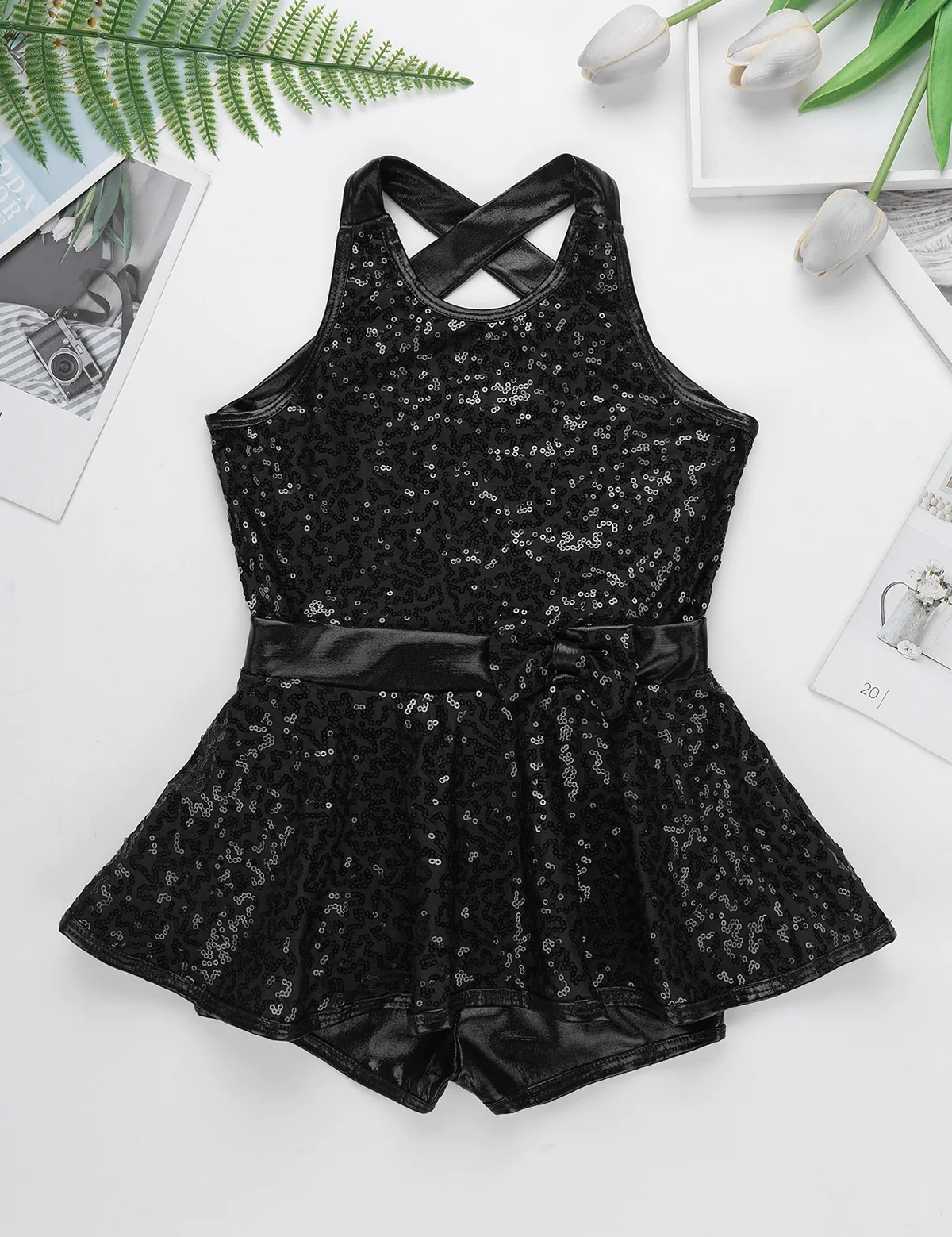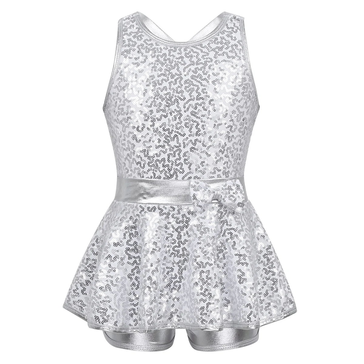 - Girls Kids Sequins Ballet Unitard Dress: Modern Jazz Latin Dance Outfit