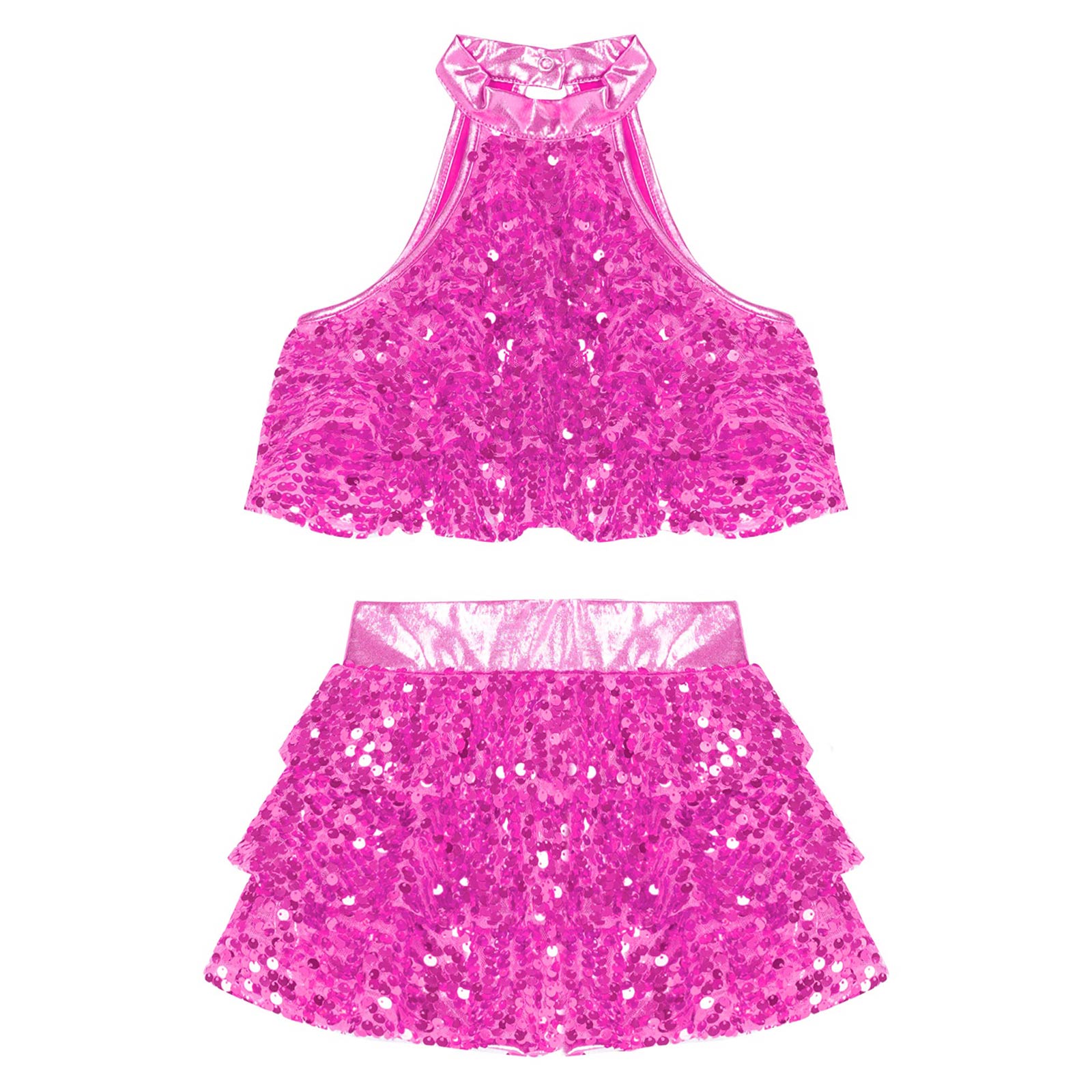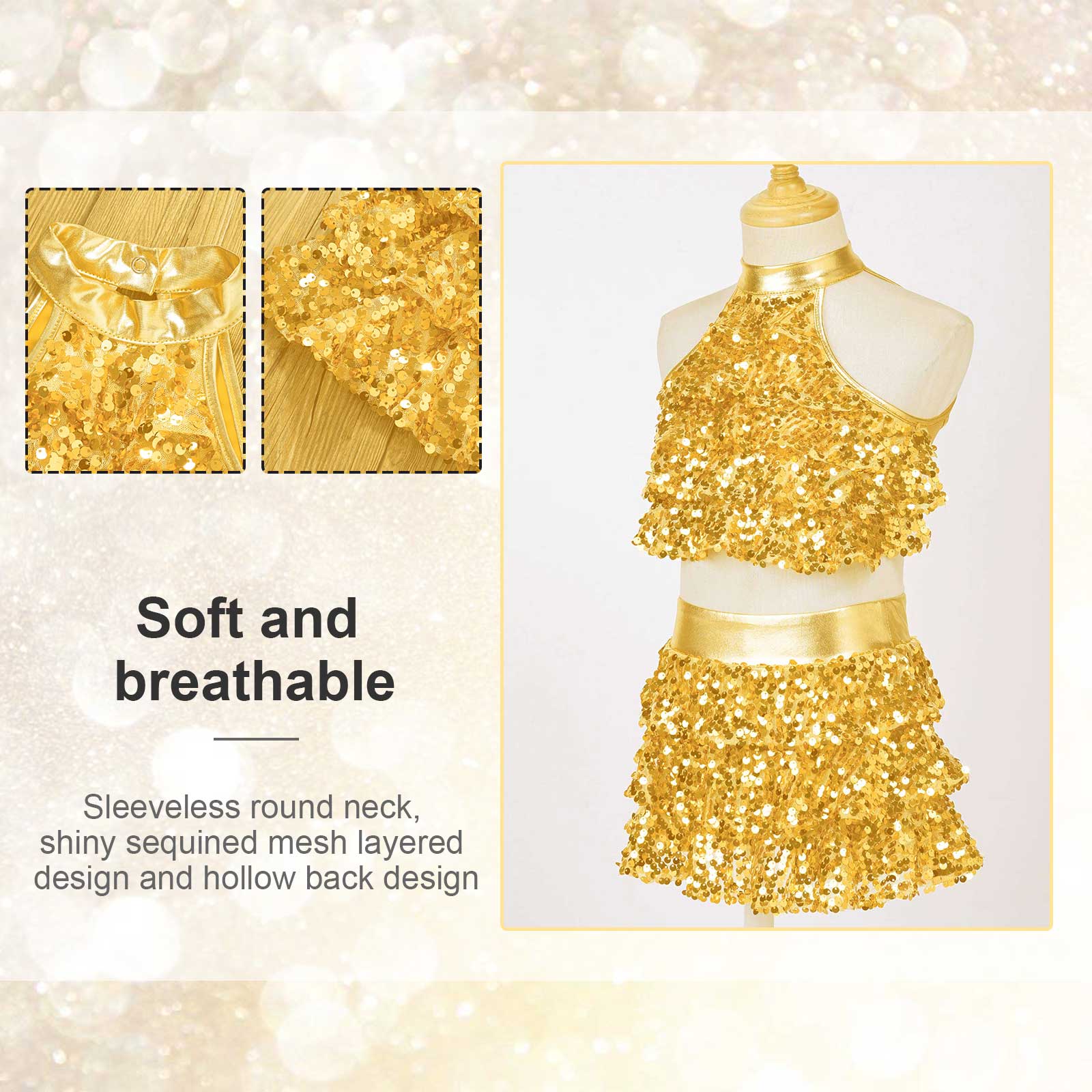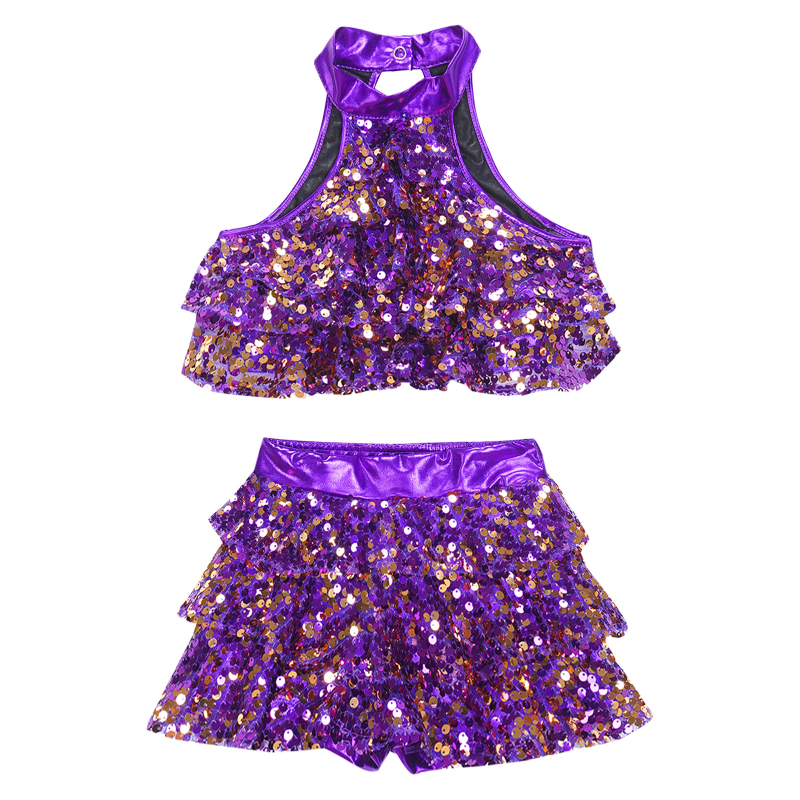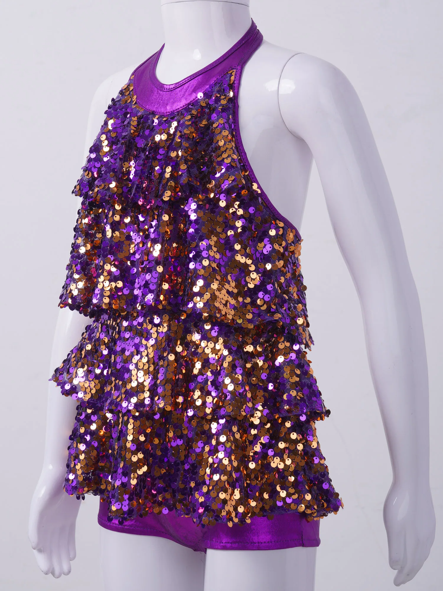 - Girls Kids Sequins Ballet Unitard Dress: Modern Jazz Latin Dance Outfit