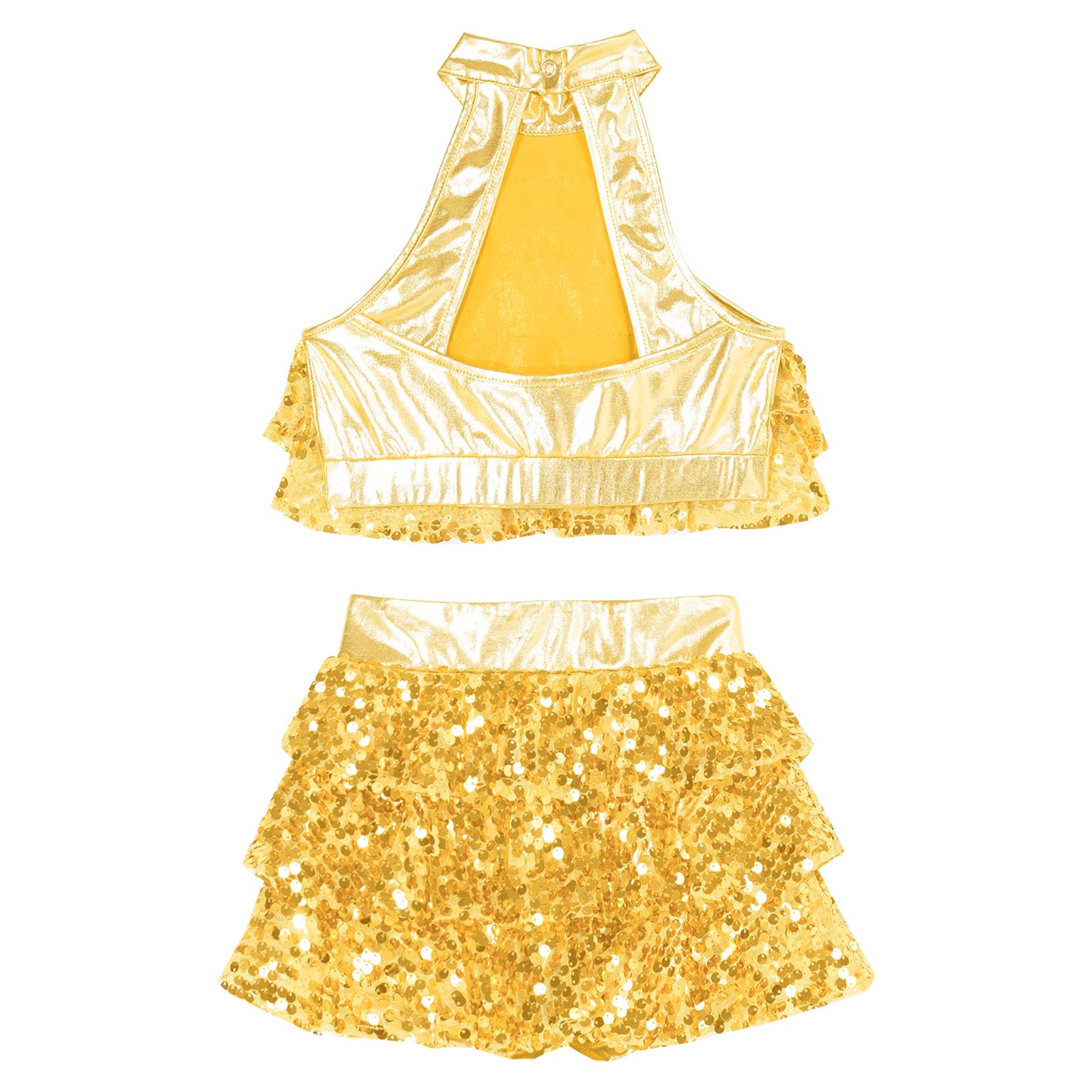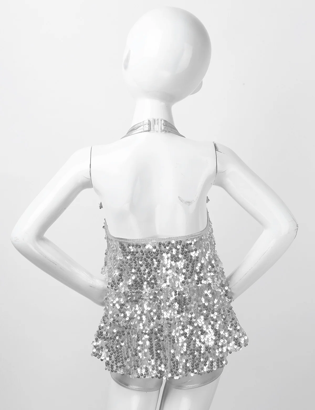 - Halter Shiny Sequins Ballet Dance Shorty Unitard Dress: Stage Performance Dancewear Costume
