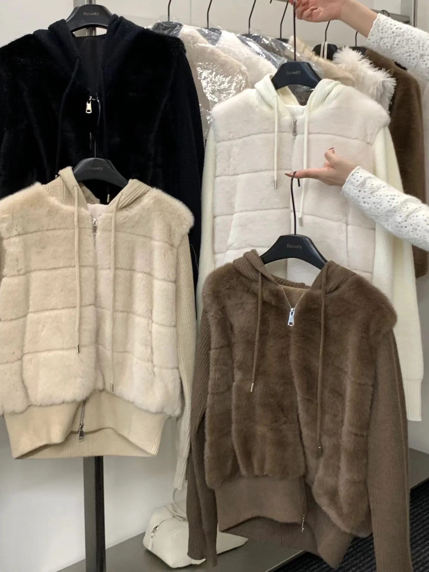 “한국 스타일 니트 숏 코트 여성 패션 페이크 투피스 디자인 후드 스웨이드 소매 따뜻한 탑 트렌디 긴 소매 지퍼 클로저”의 첫 상품평을 남겨 주세요 응답 취소