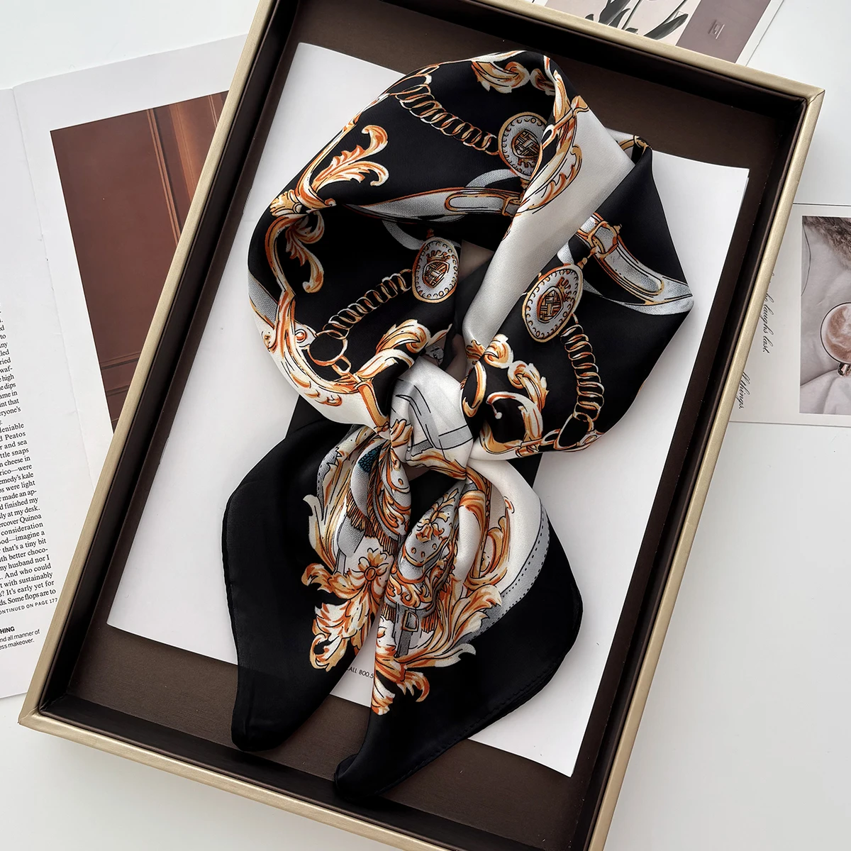 2024 럭셔리 디자인 인쇄 스키니 리본 실크 스카프 여성용 Neckerchief Hairband Foulard 여성 소프트 새틴 핸드 백 넥타이