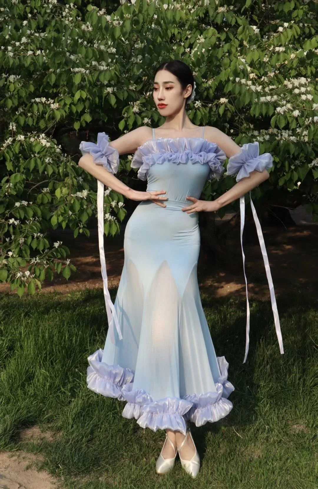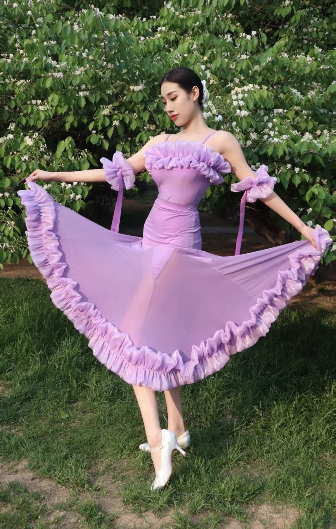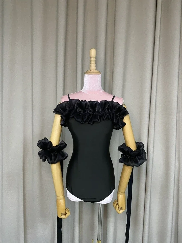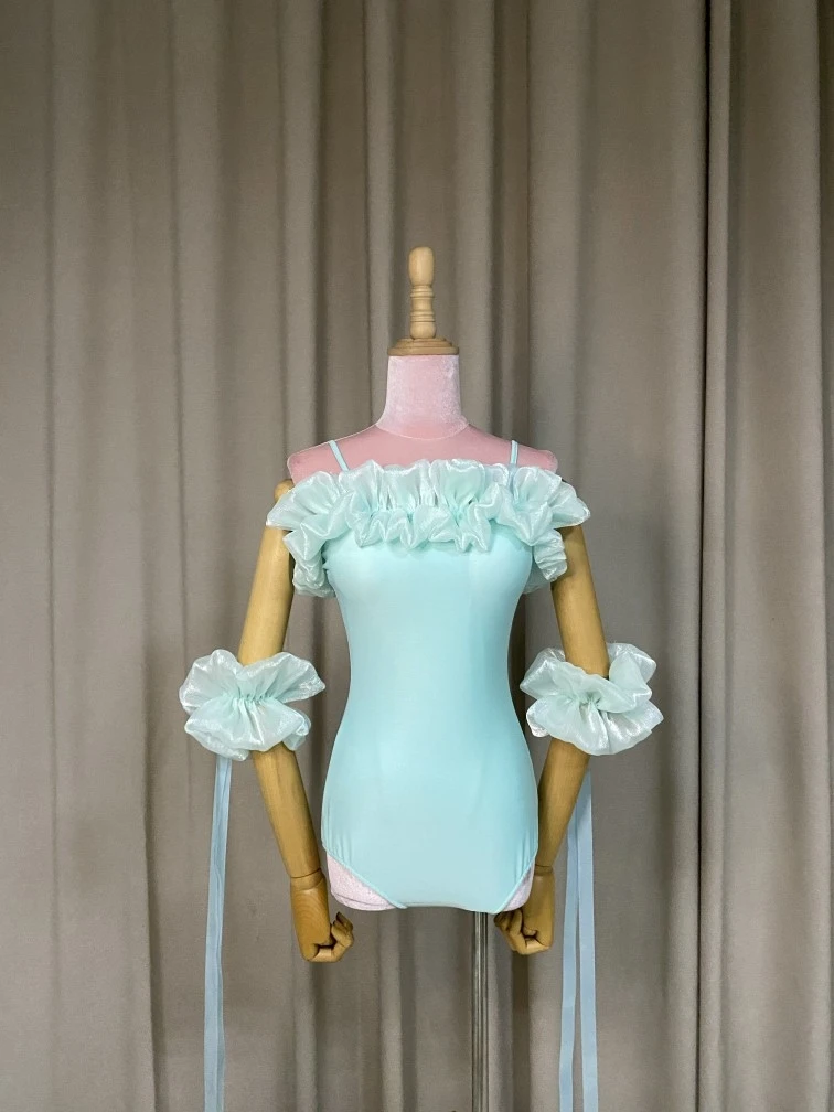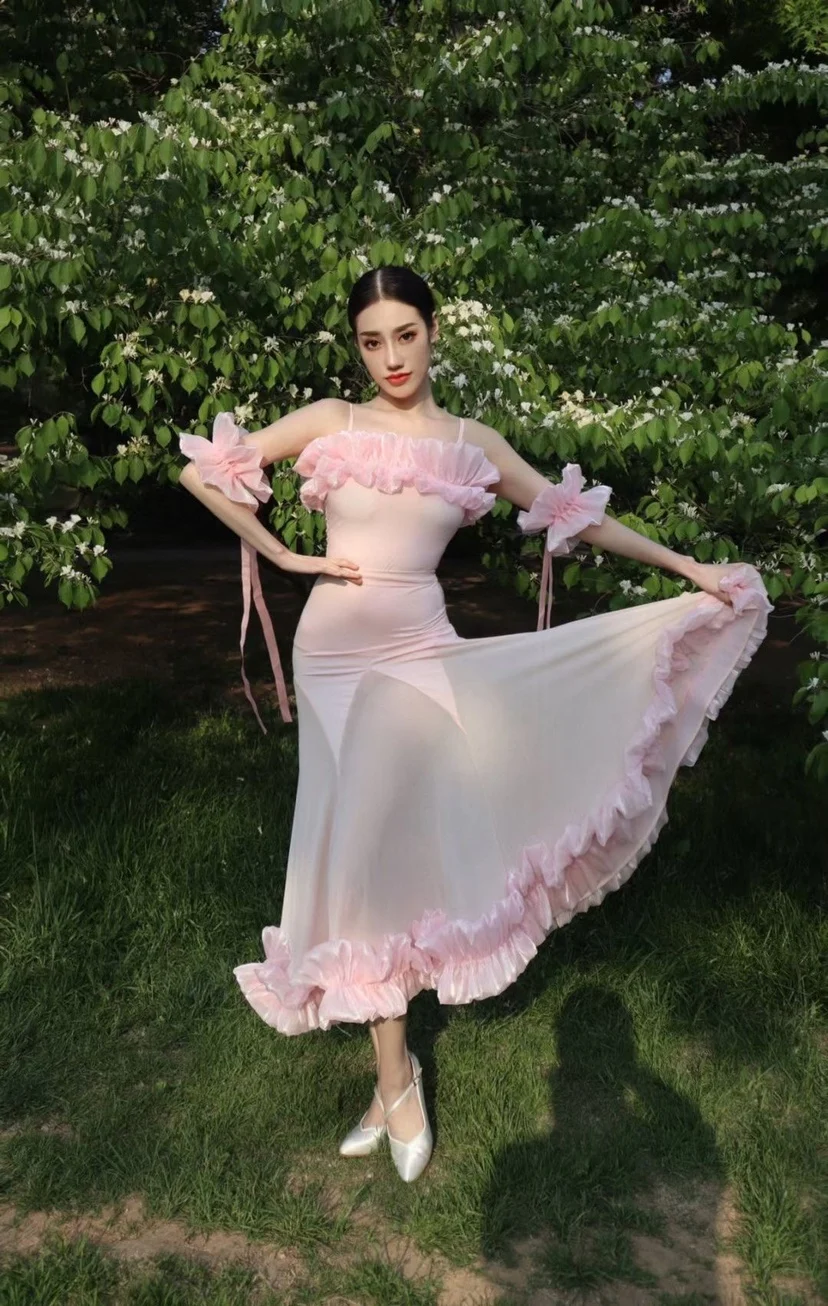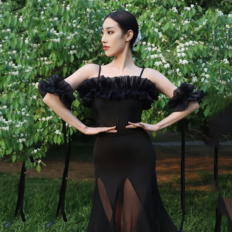 2022 볼룸 댄스 대회 드레스 여성 레이스 프릴 오프 숄더 탑 스커트 댄스 파티 드레스 왈츠 공연 의상 BL8621