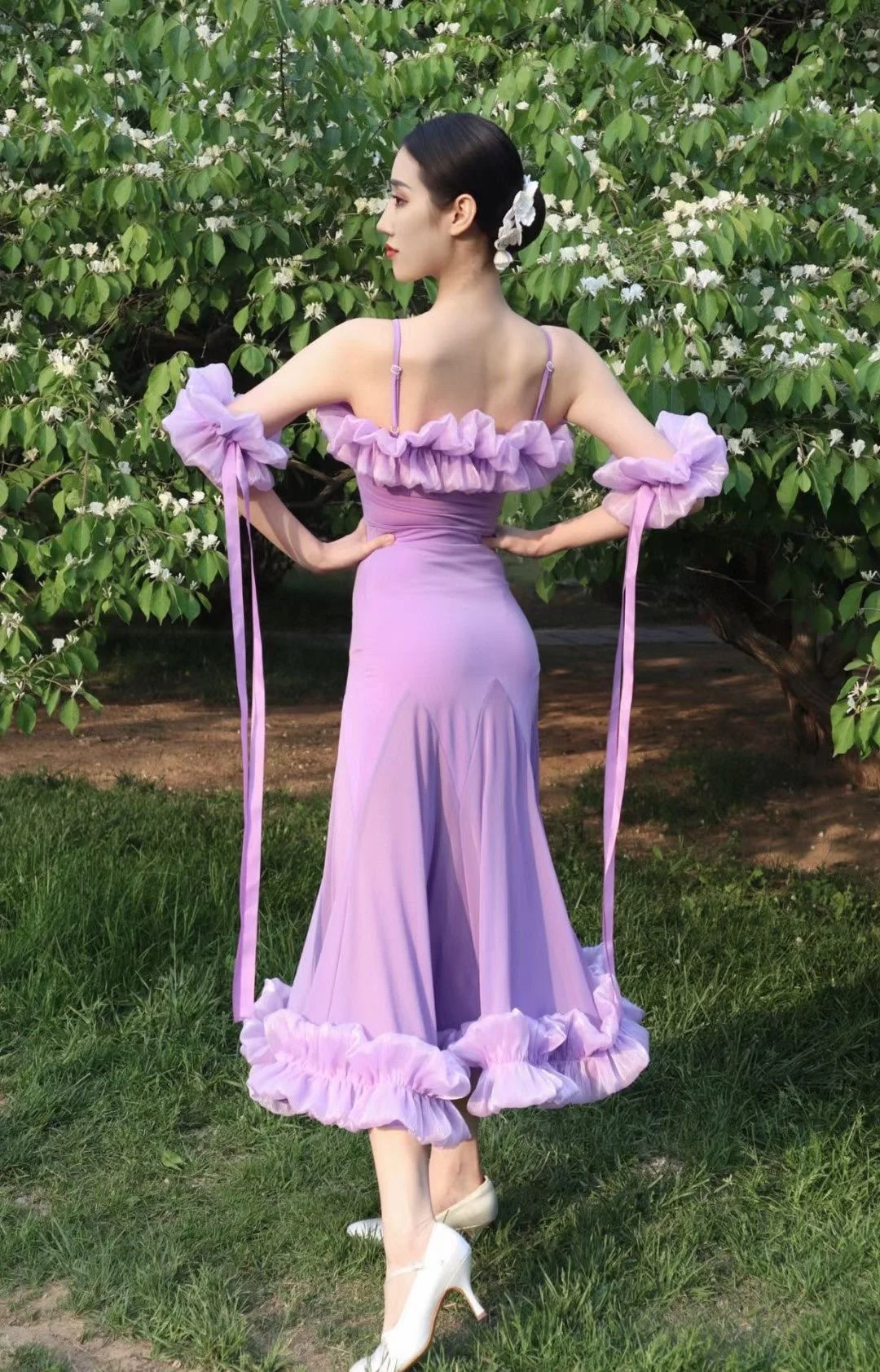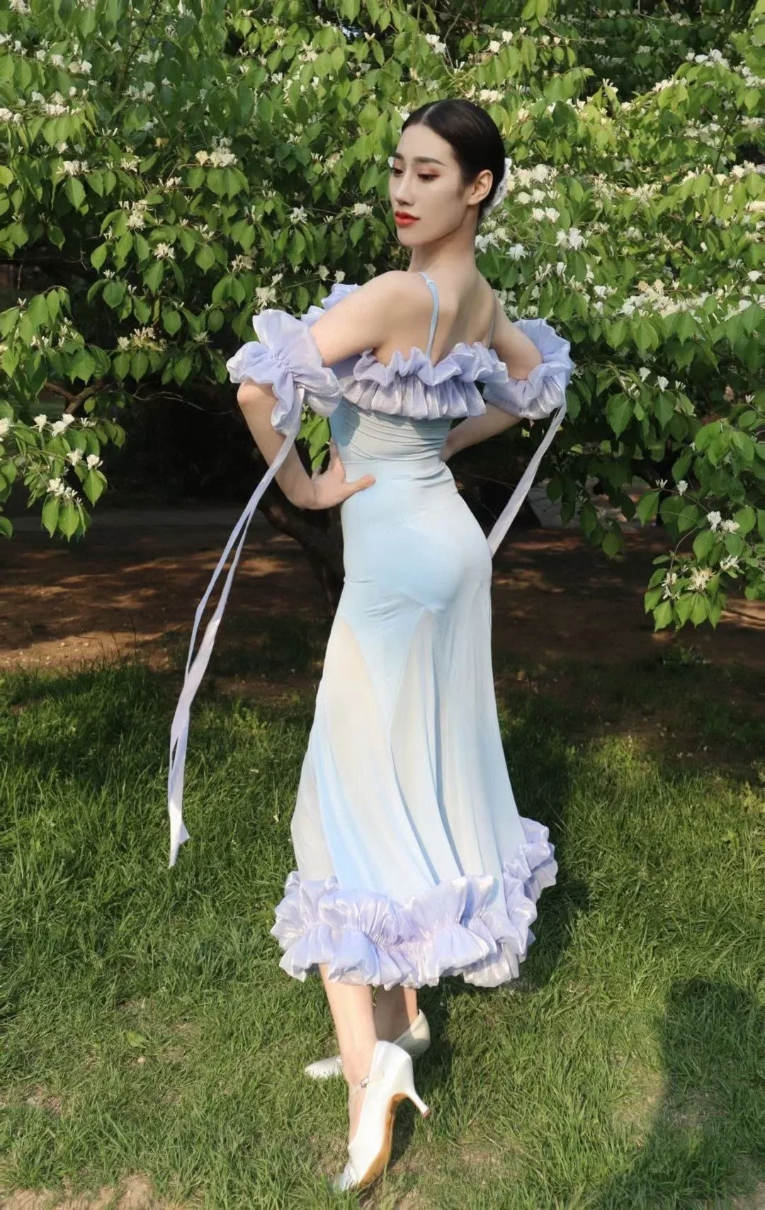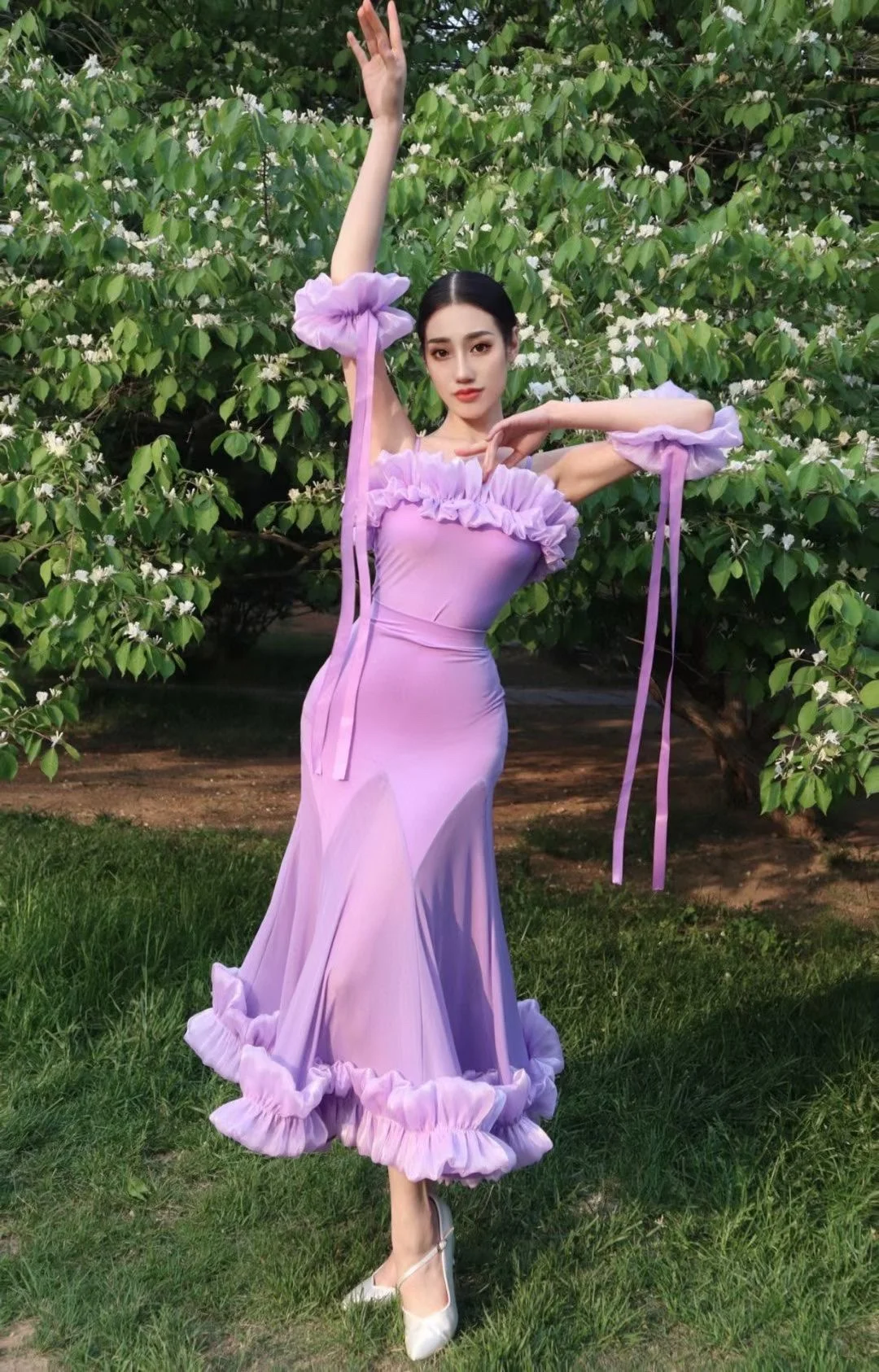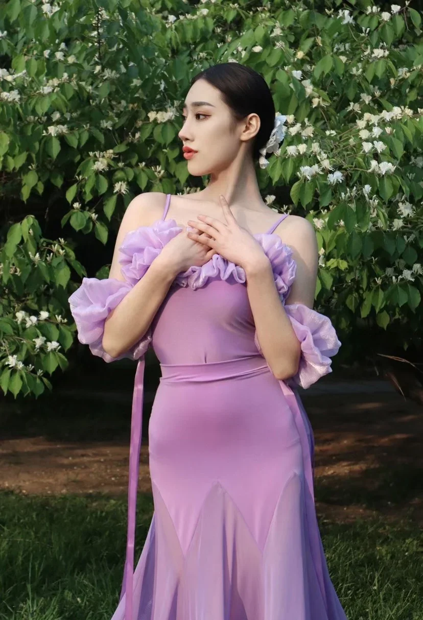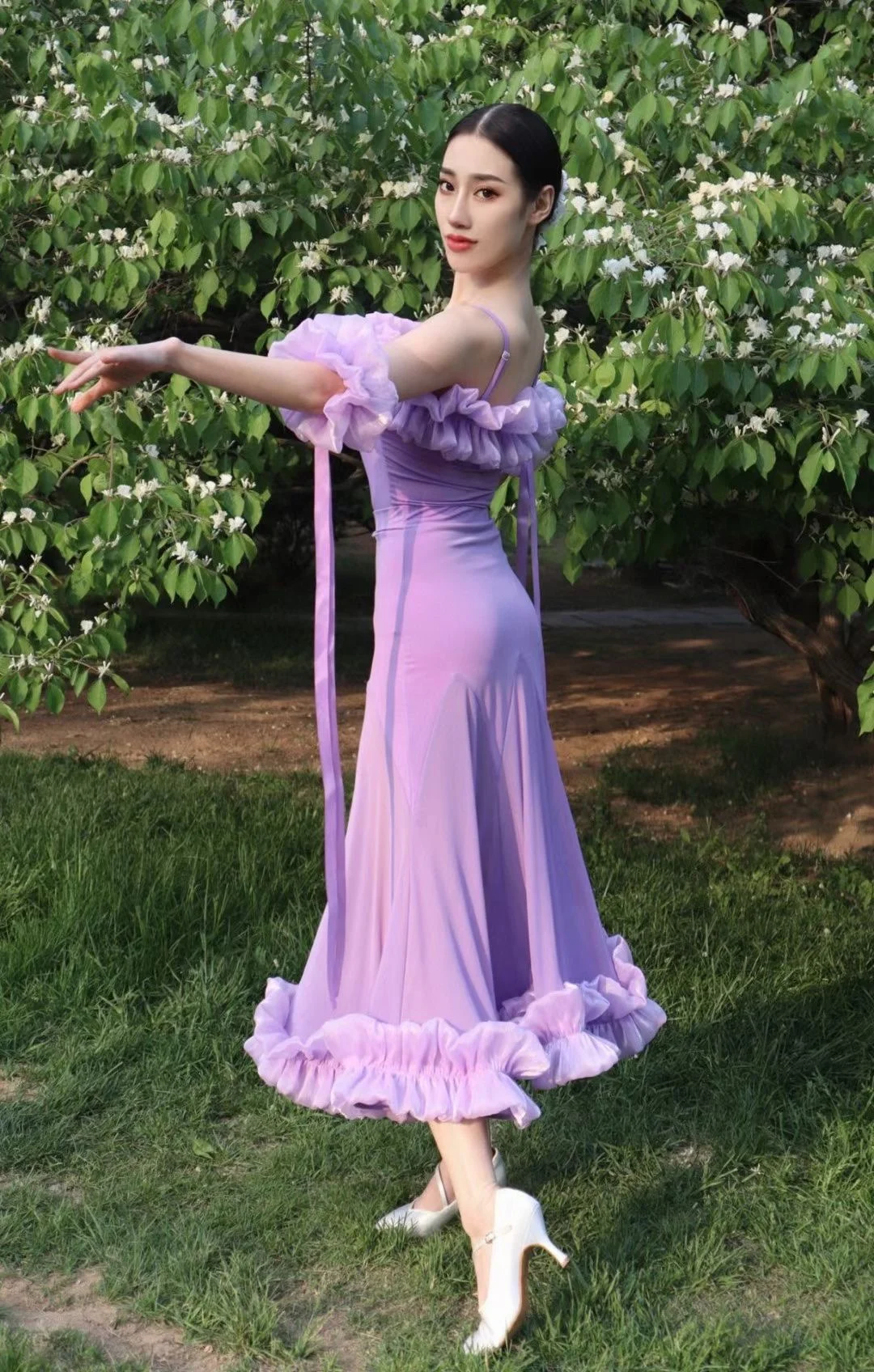 2022 볼룸 댄스 대회 드레스 여성 레이스 프릴 오프 숄더 탑 스커트 댄스 파티 드레스 왈츠 공연 의상 BL8621