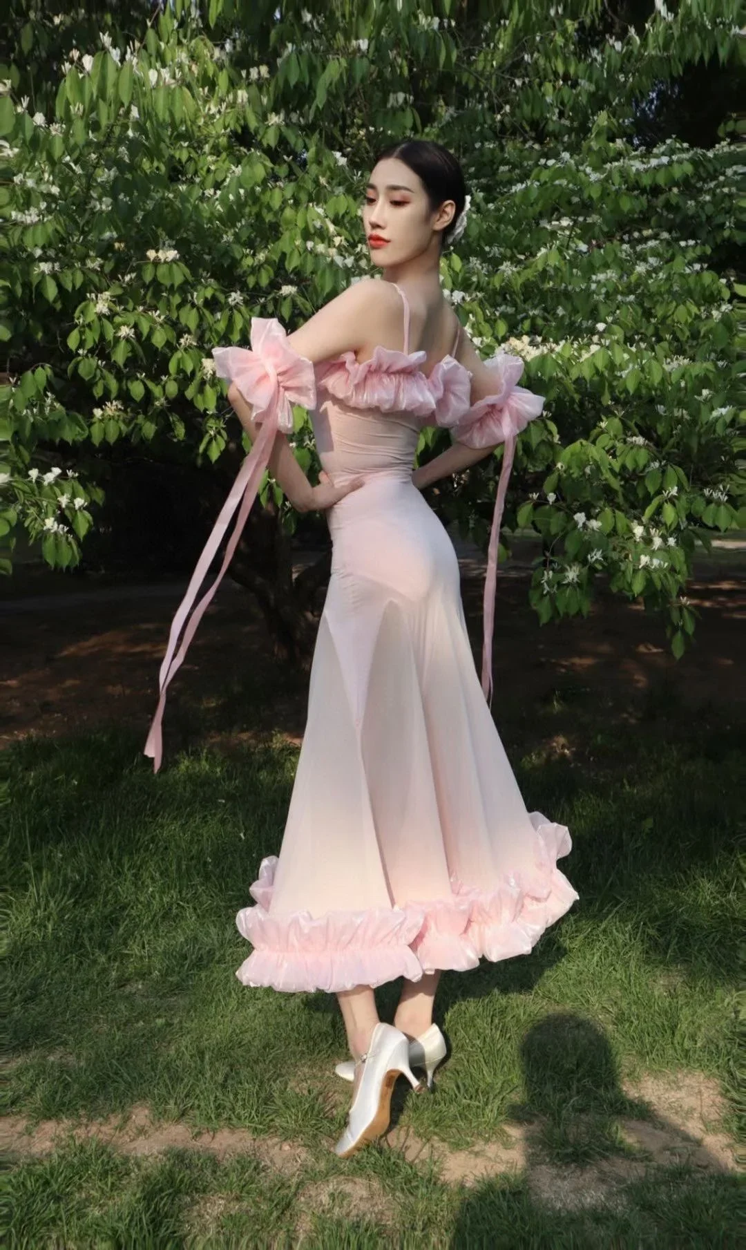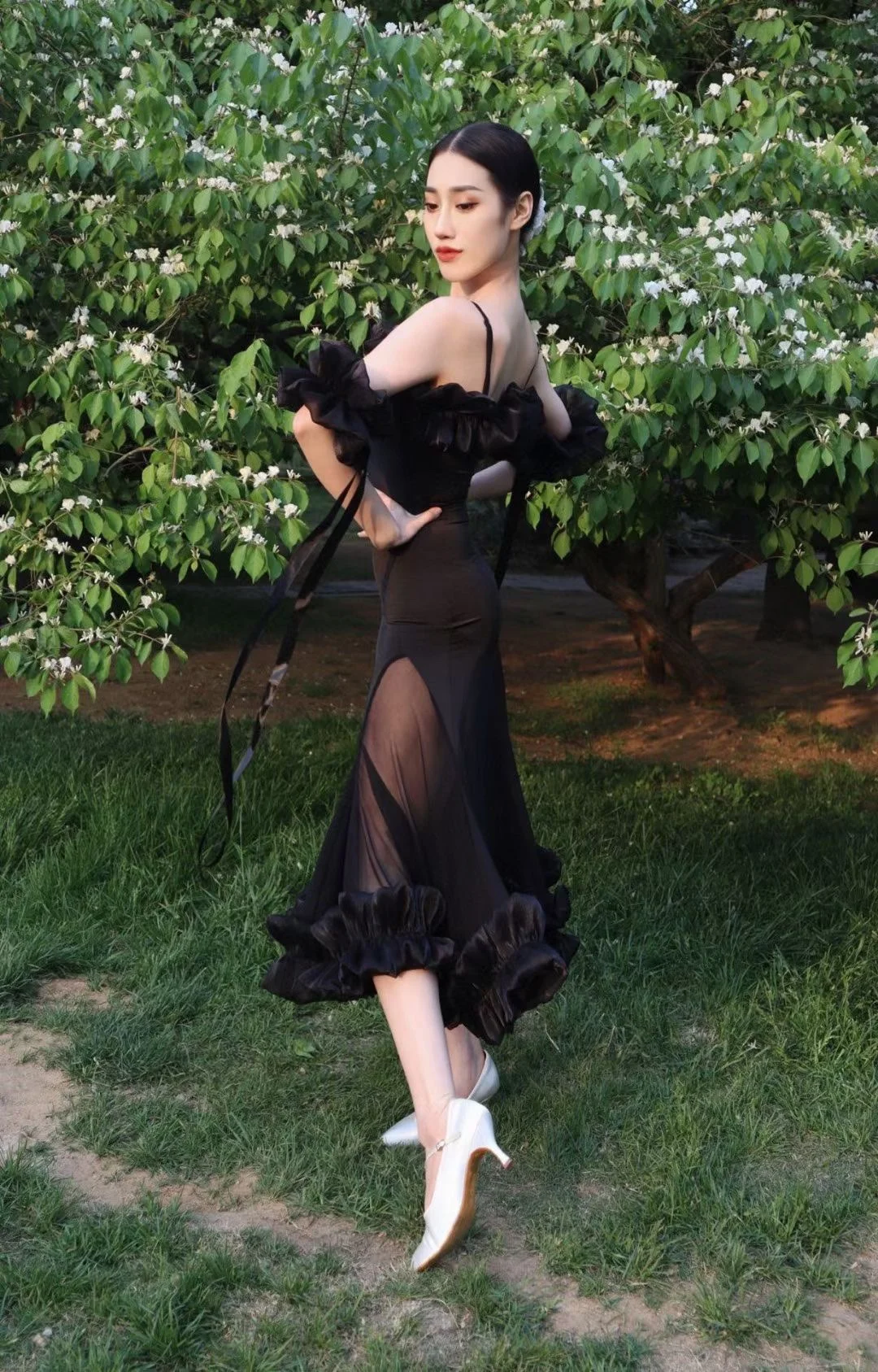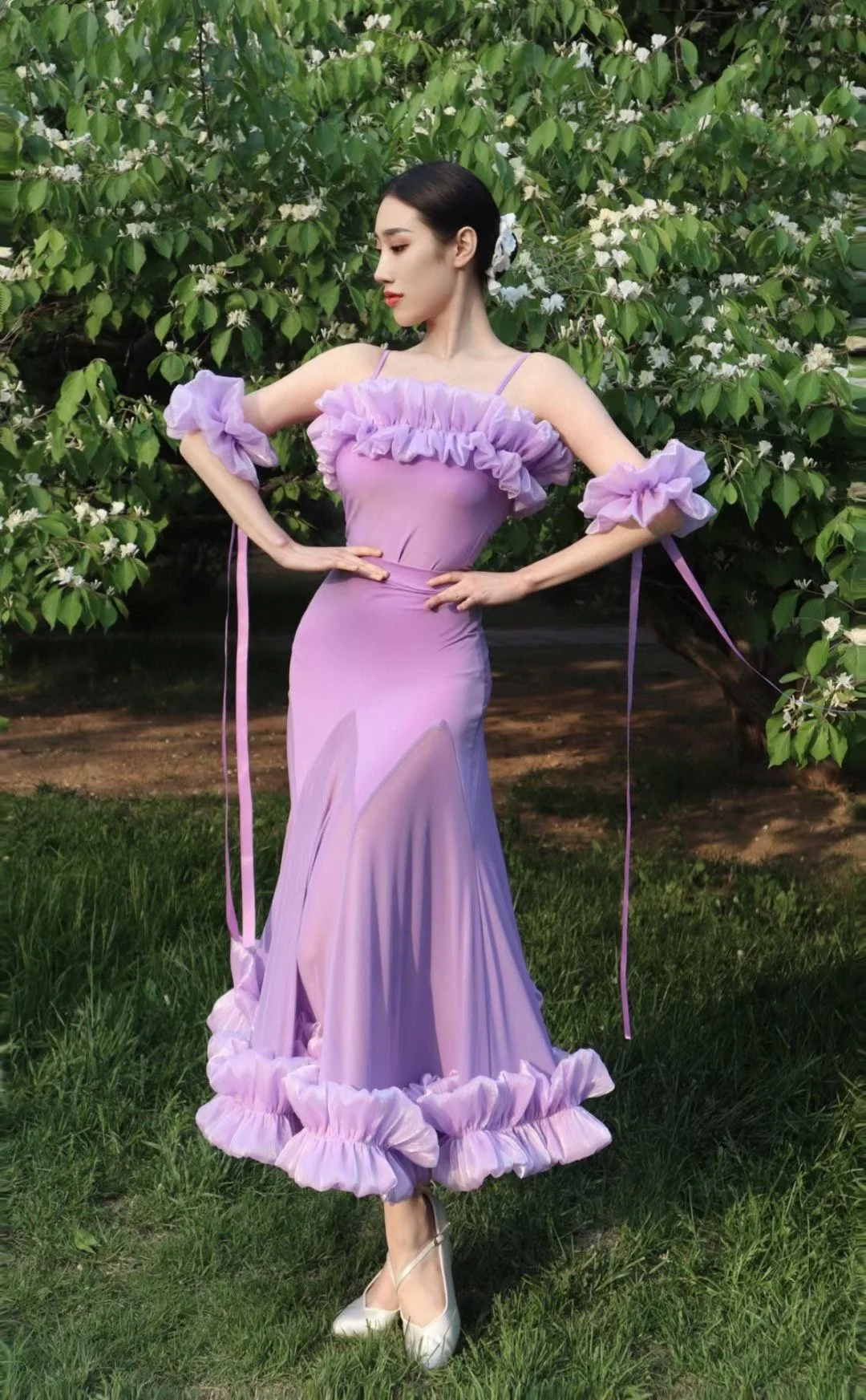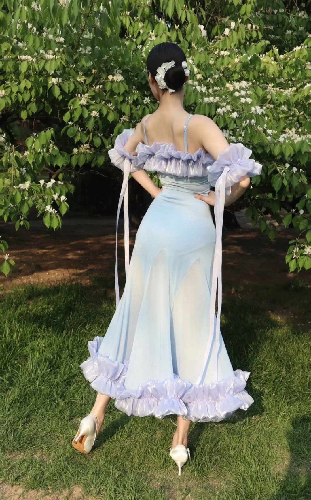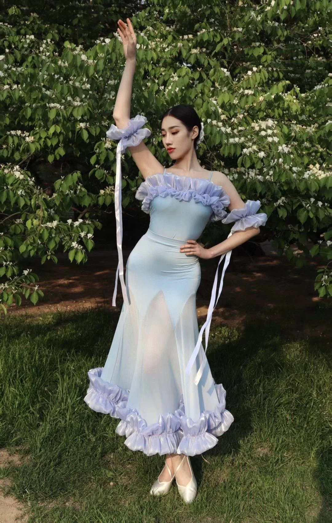 2022 볼룸 댄스 대회 드레스 여성 레이스 프릴 오프 숄더 탑 스커트 댄스 파티 드레스 왈츠 공연 의상 BL8621
