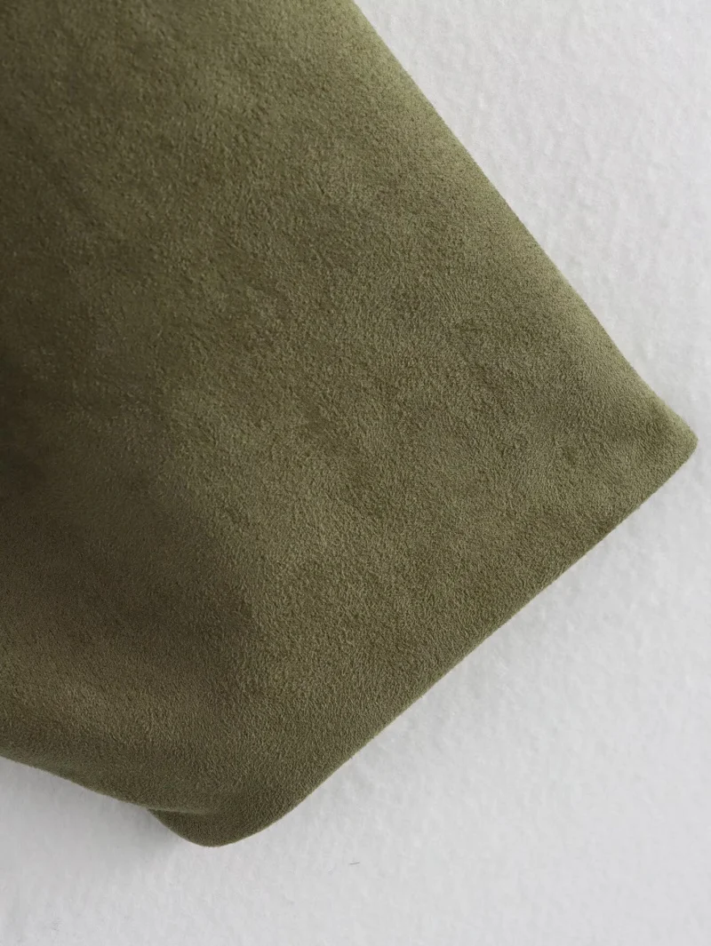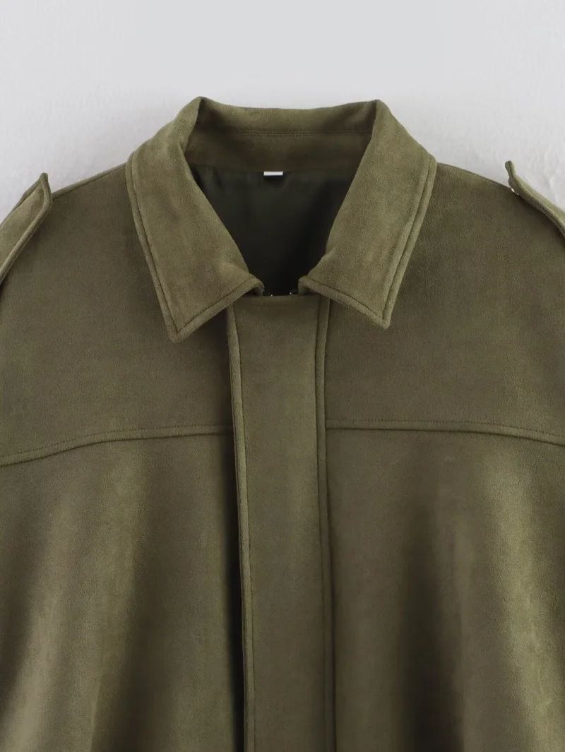 2025년 봄 신상 여성 스웨이드 질감 효과 루즈핏 패션 라펠 숄더 보머 재킷