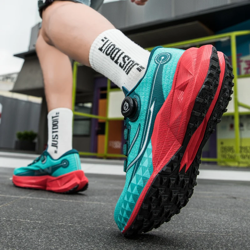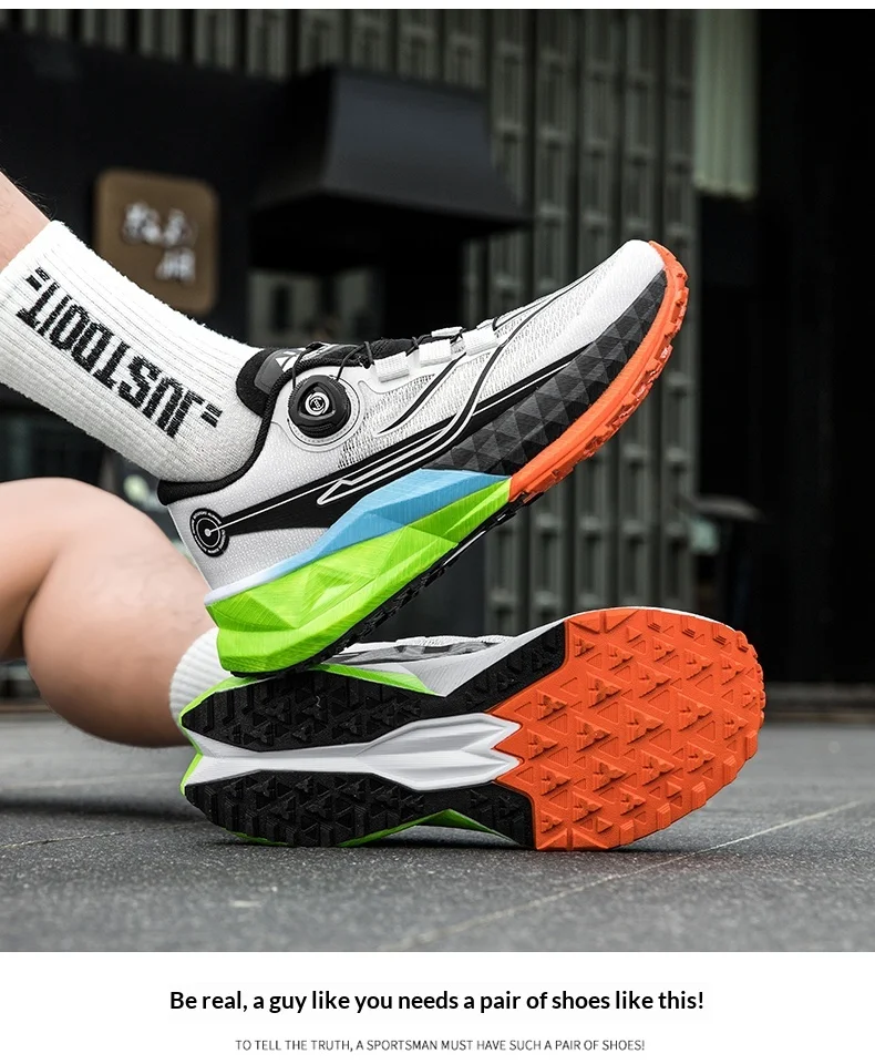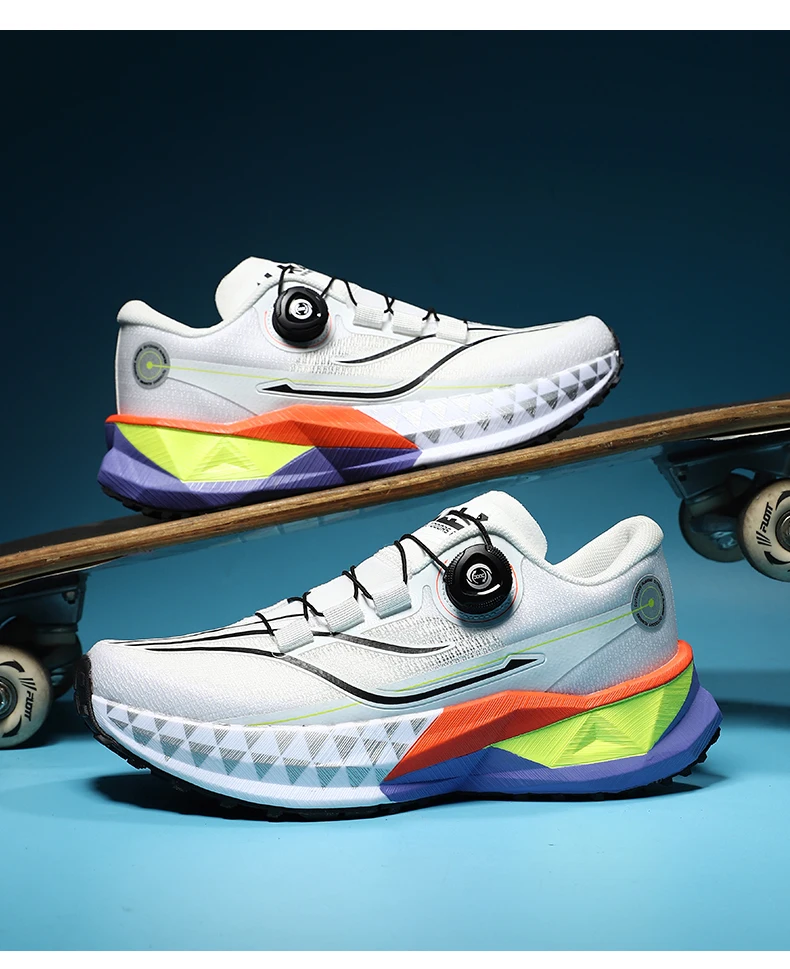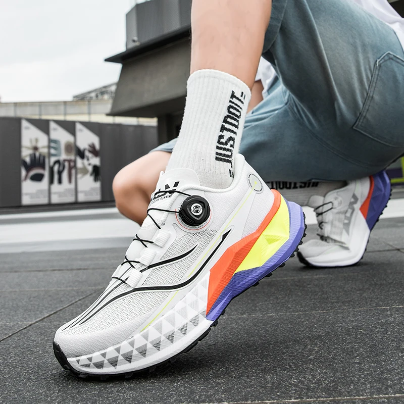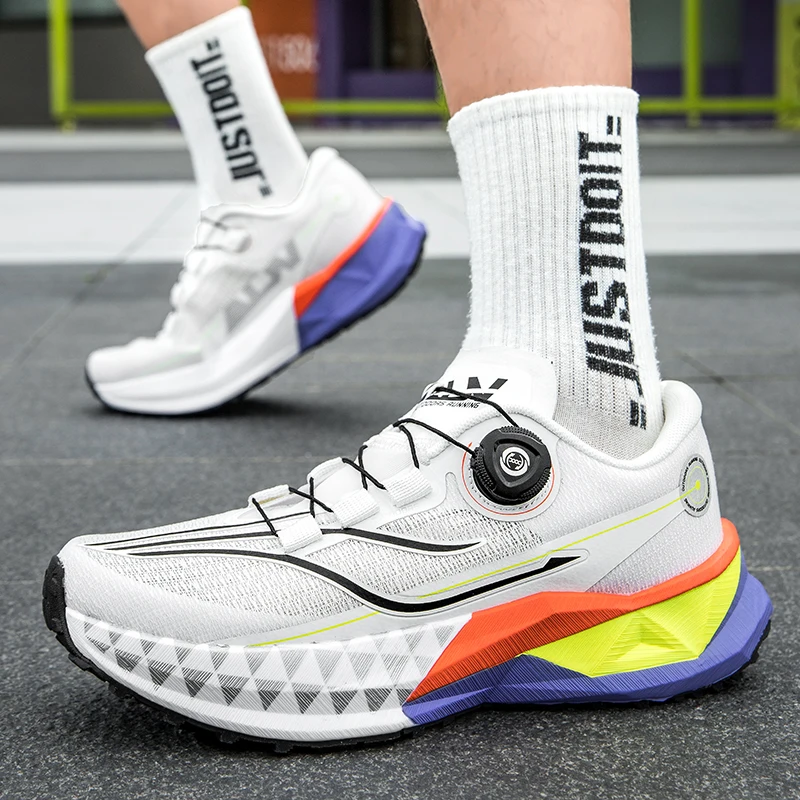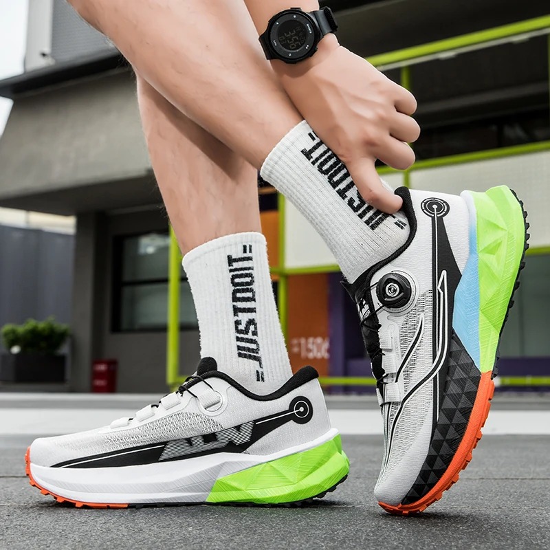 야외 스포츠 신발끈 회전 버클, 카본 플레이트 및 팝콘 아웃솔 남성용 러닝화