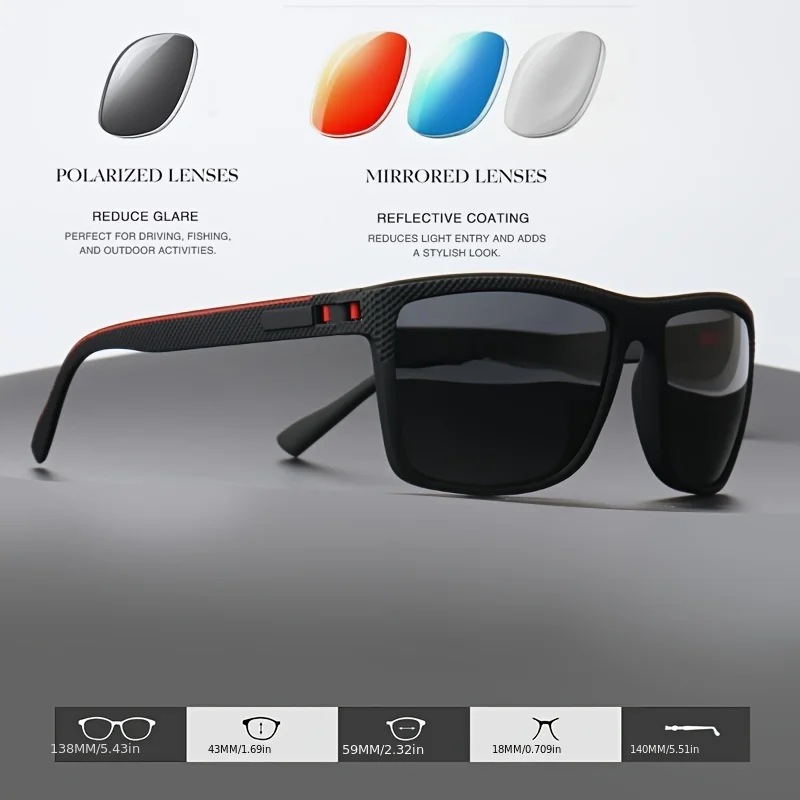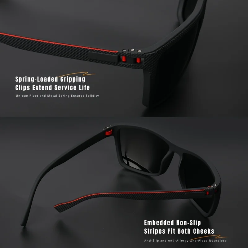 2025 새로운 사각형 프레임 편광 선글라스 고품질 스프링 경첩 휴가 운전 낚시 UV P를위한 여러 가지 빛깔의 코팅 렌즈
