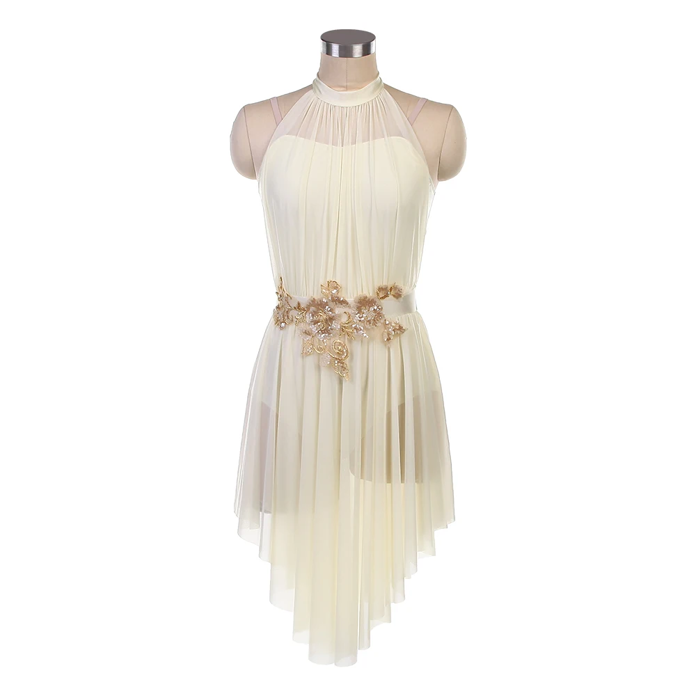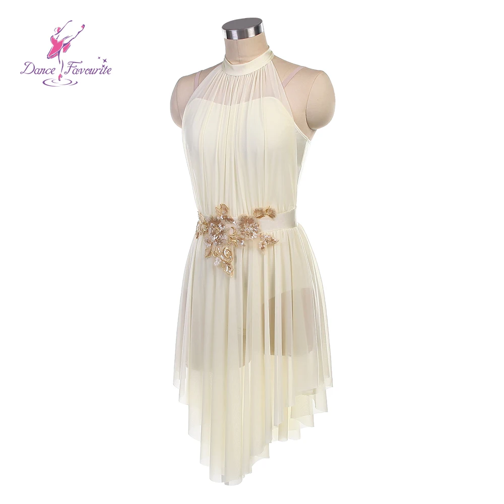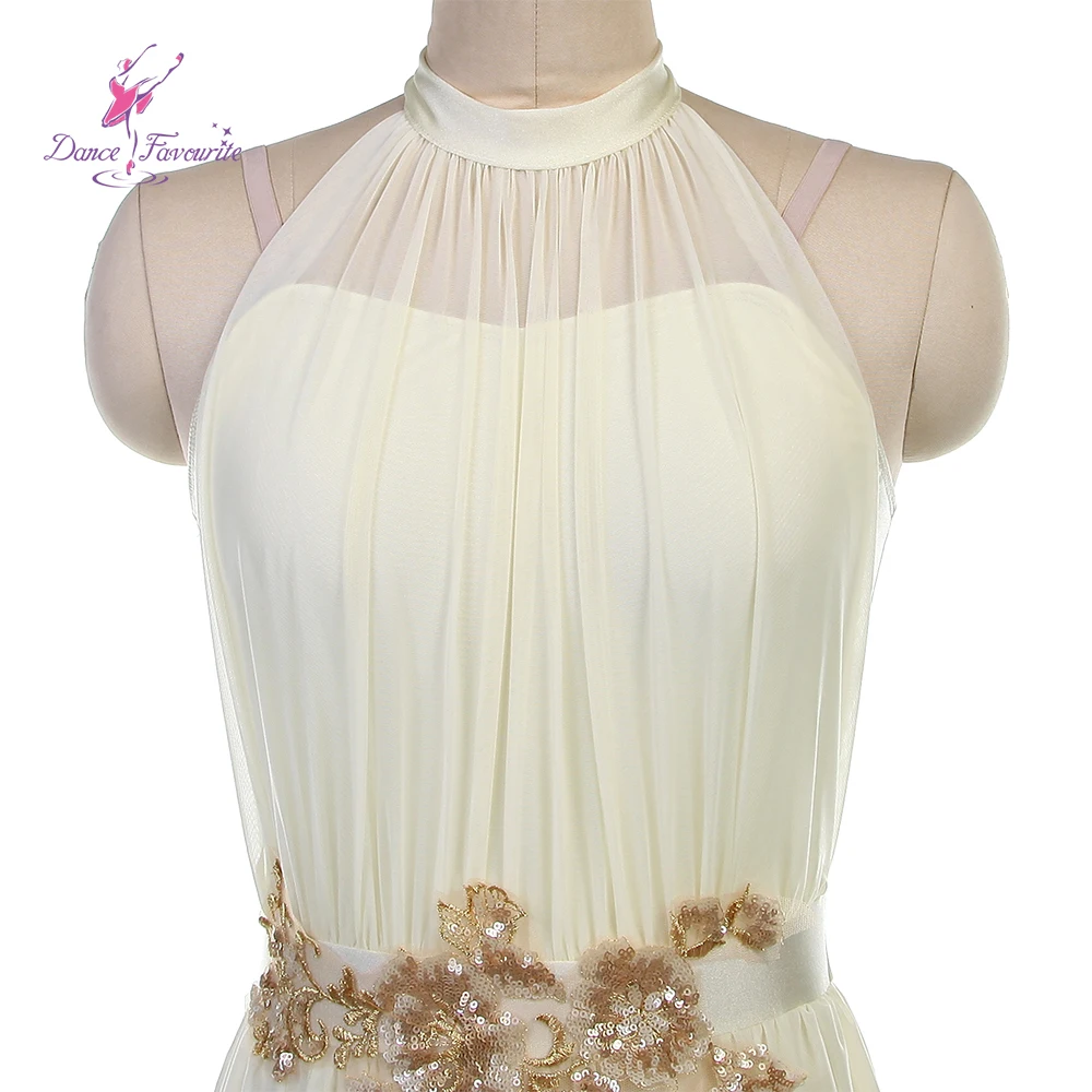 2026 새로운 아이보리 스판덱스 메쉬 롱 드레스 서정적 발레 드레스 댄스 의상 DF25136B